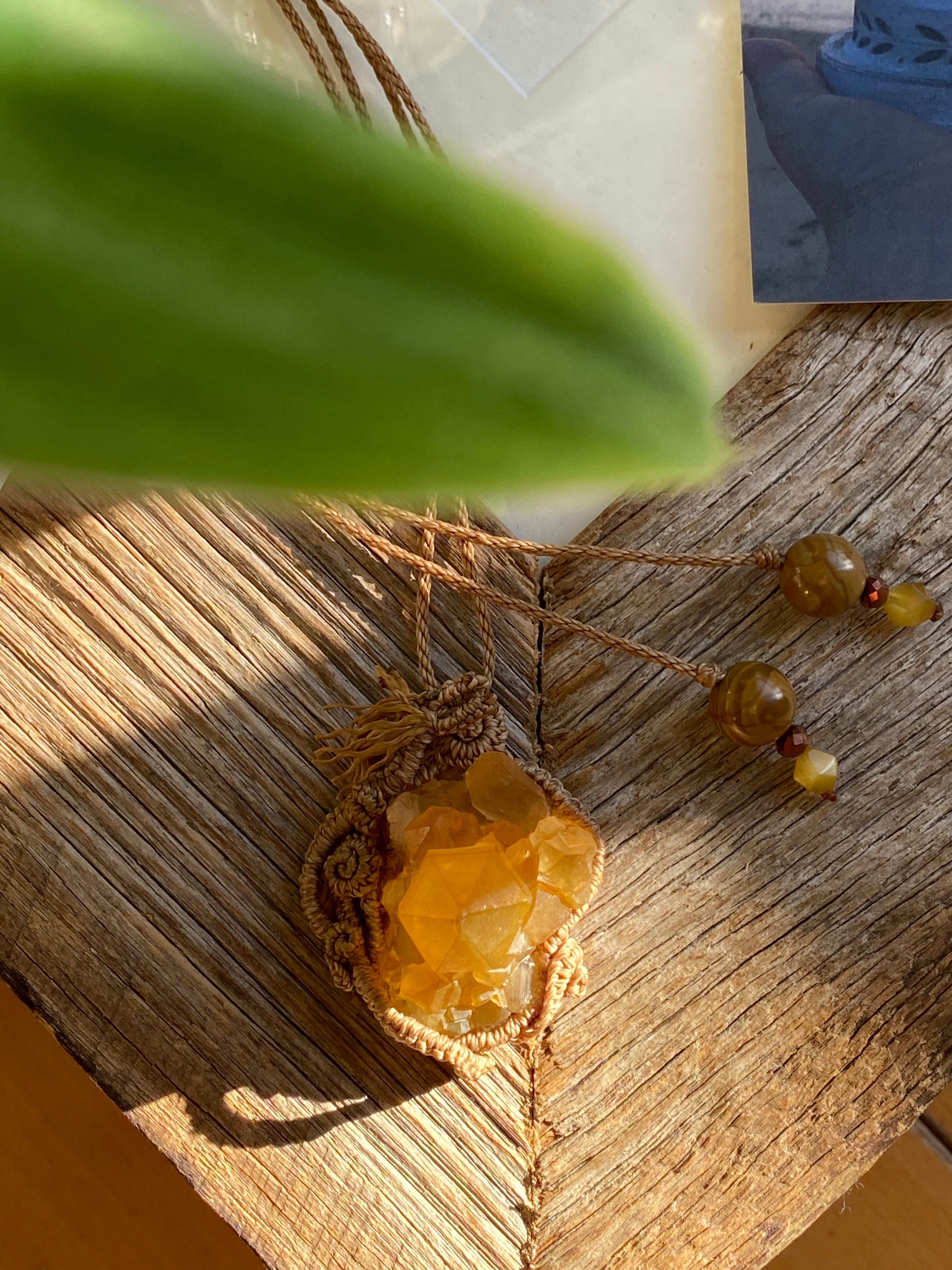 サンプル)クリスタルドラゴン*タンジェリンクオーツ/日々のお守り天然石マクラメネックレス