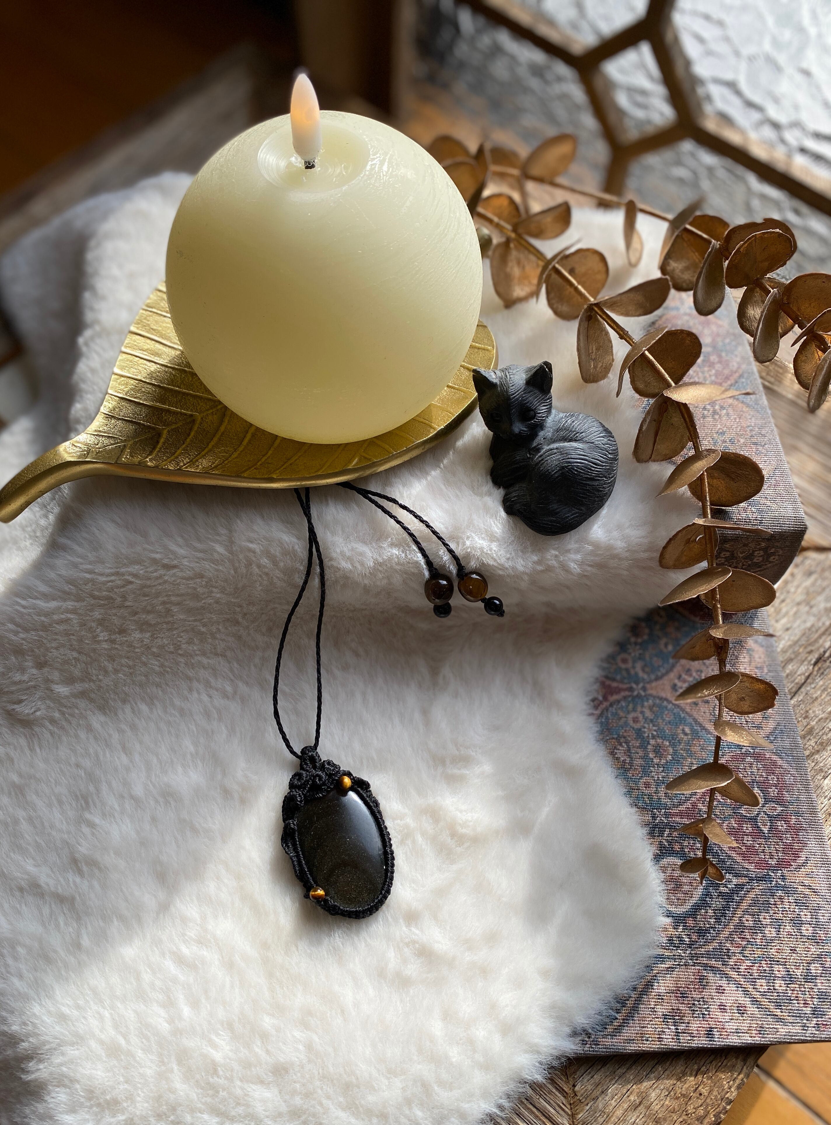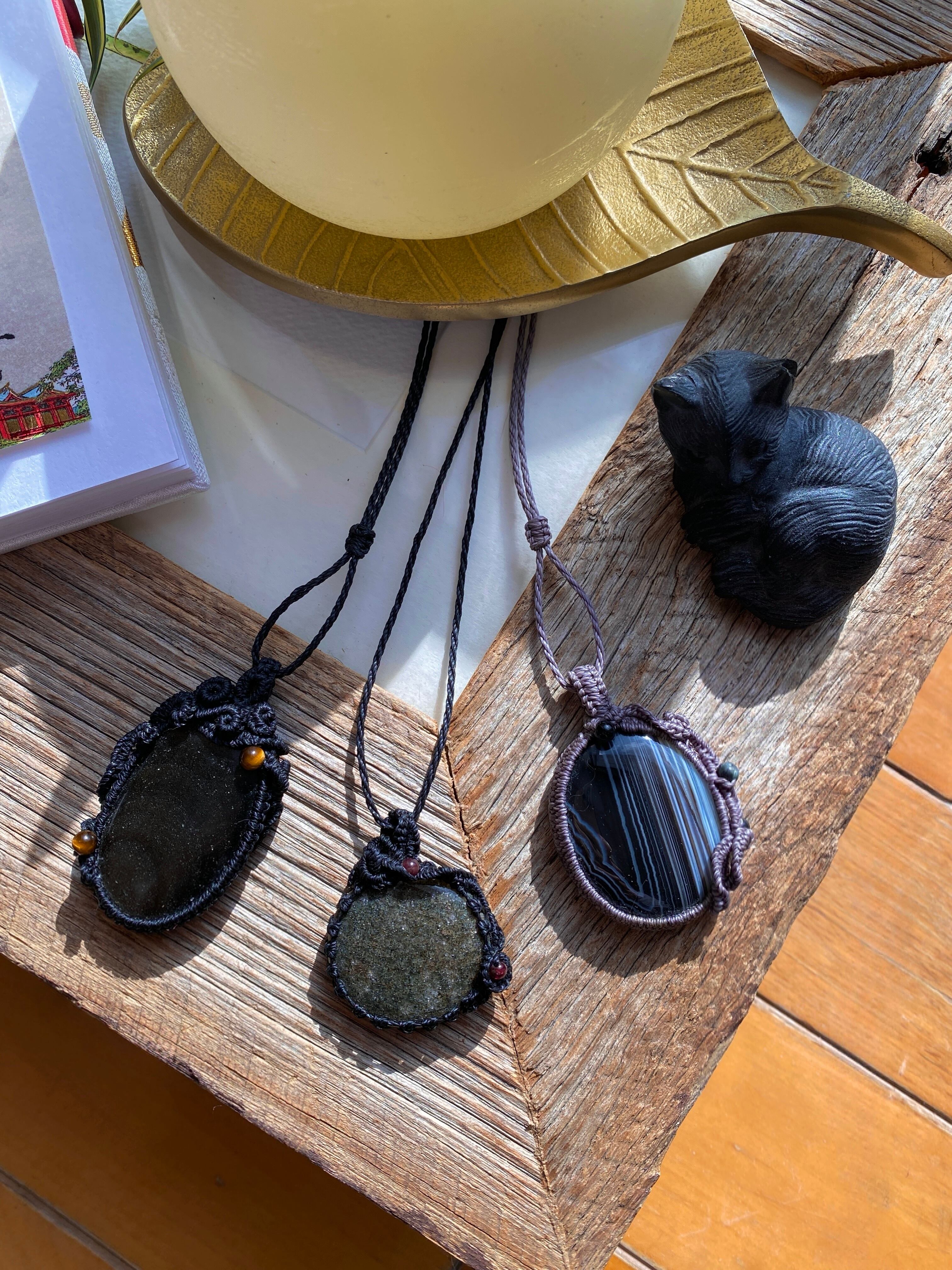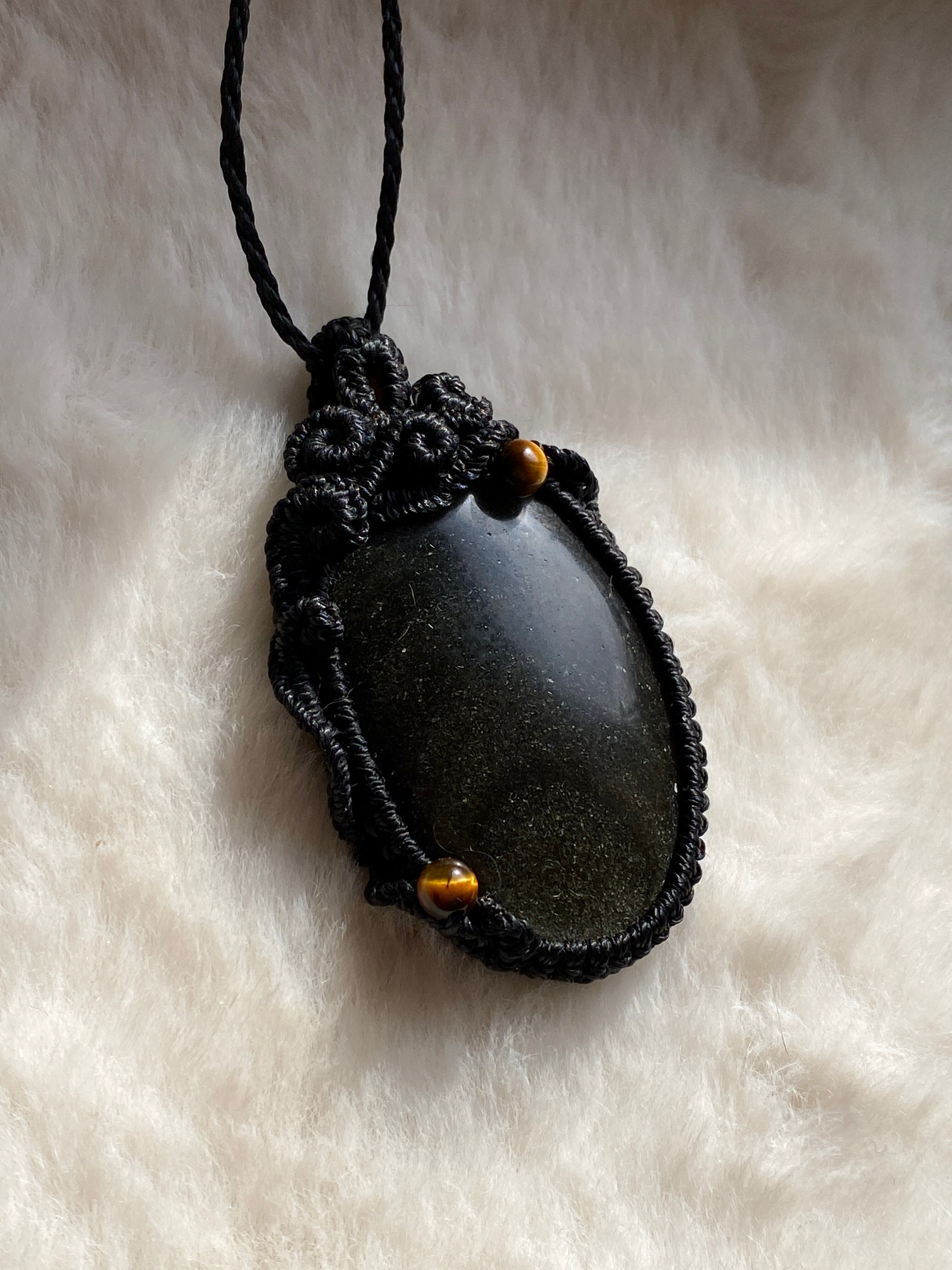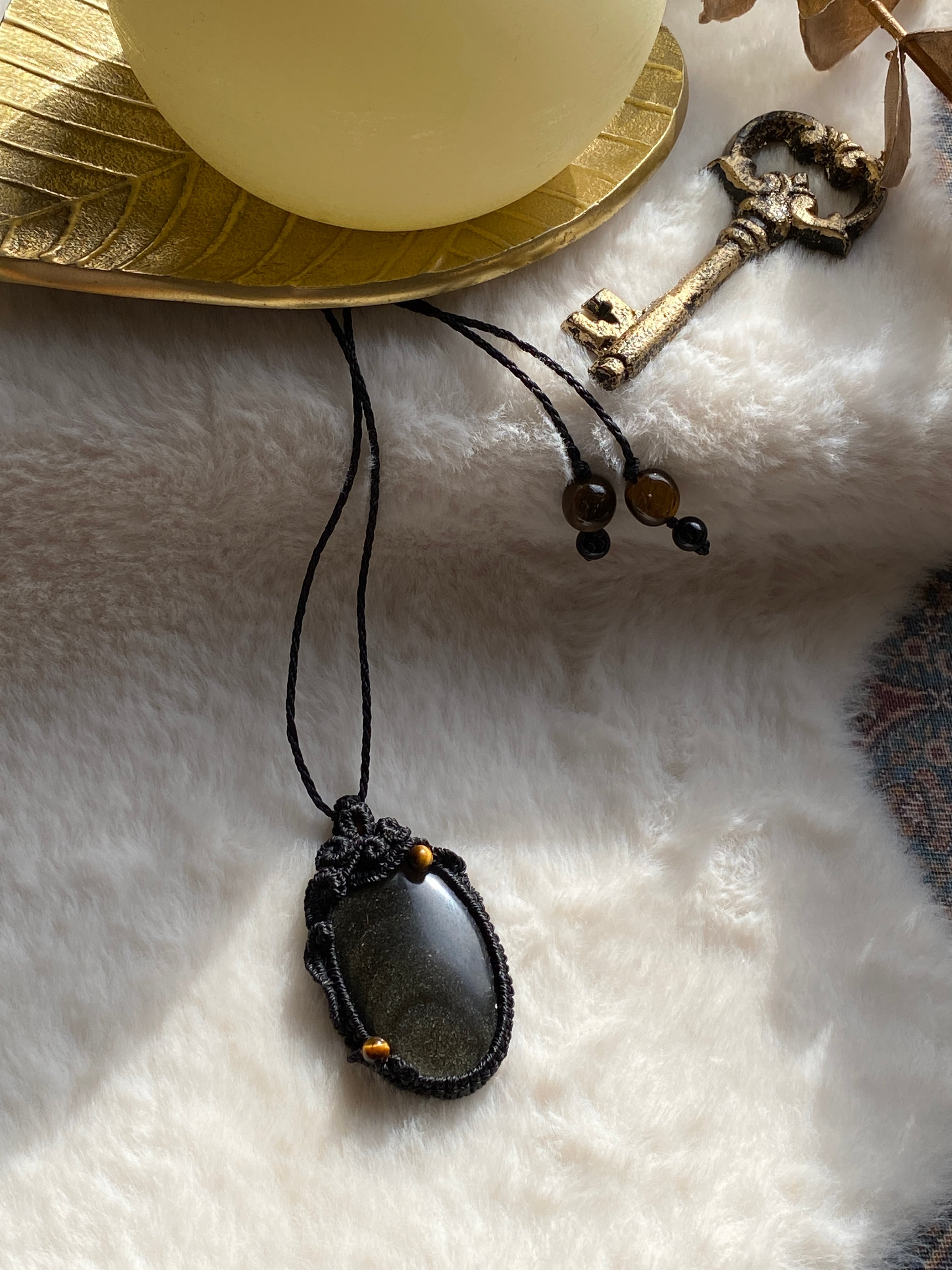 COSMO☆ゴールデンオブシディアン 天然石マクラメネックレス/日々のアクセサリー