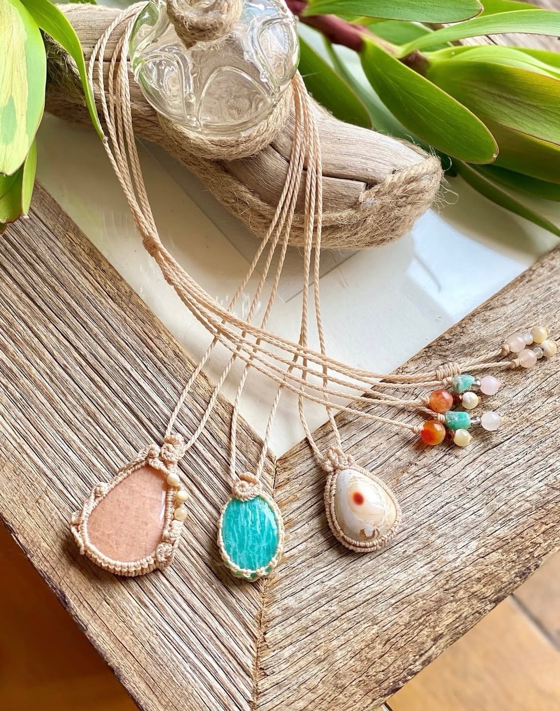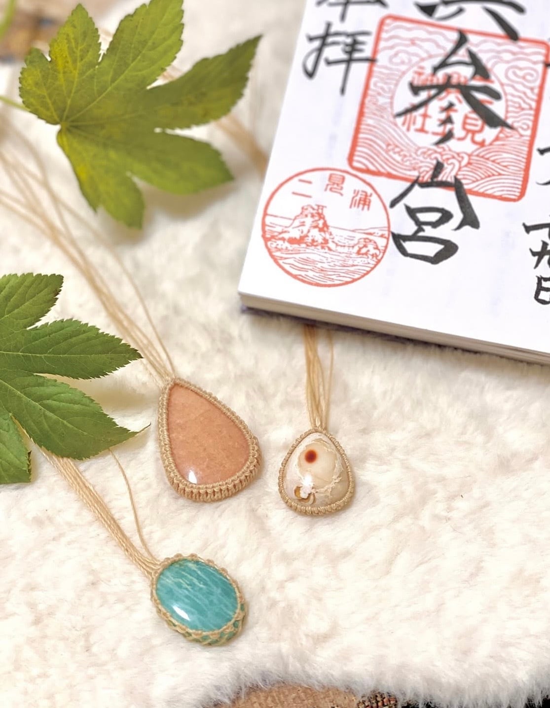 マクラメ編みはワックスコード(ポリエステル)を使用しますので金属アレルギーの方でも安心して使えます。