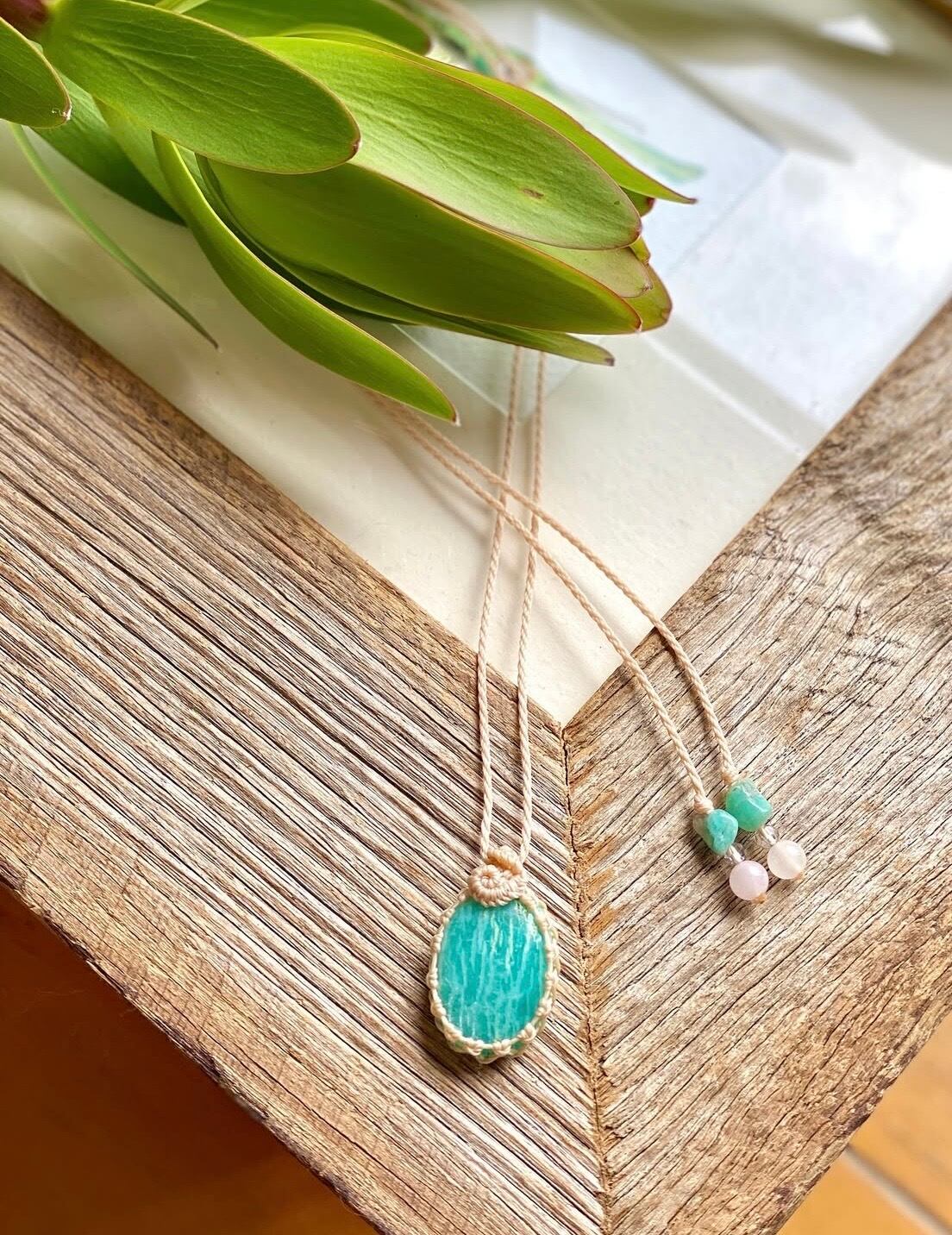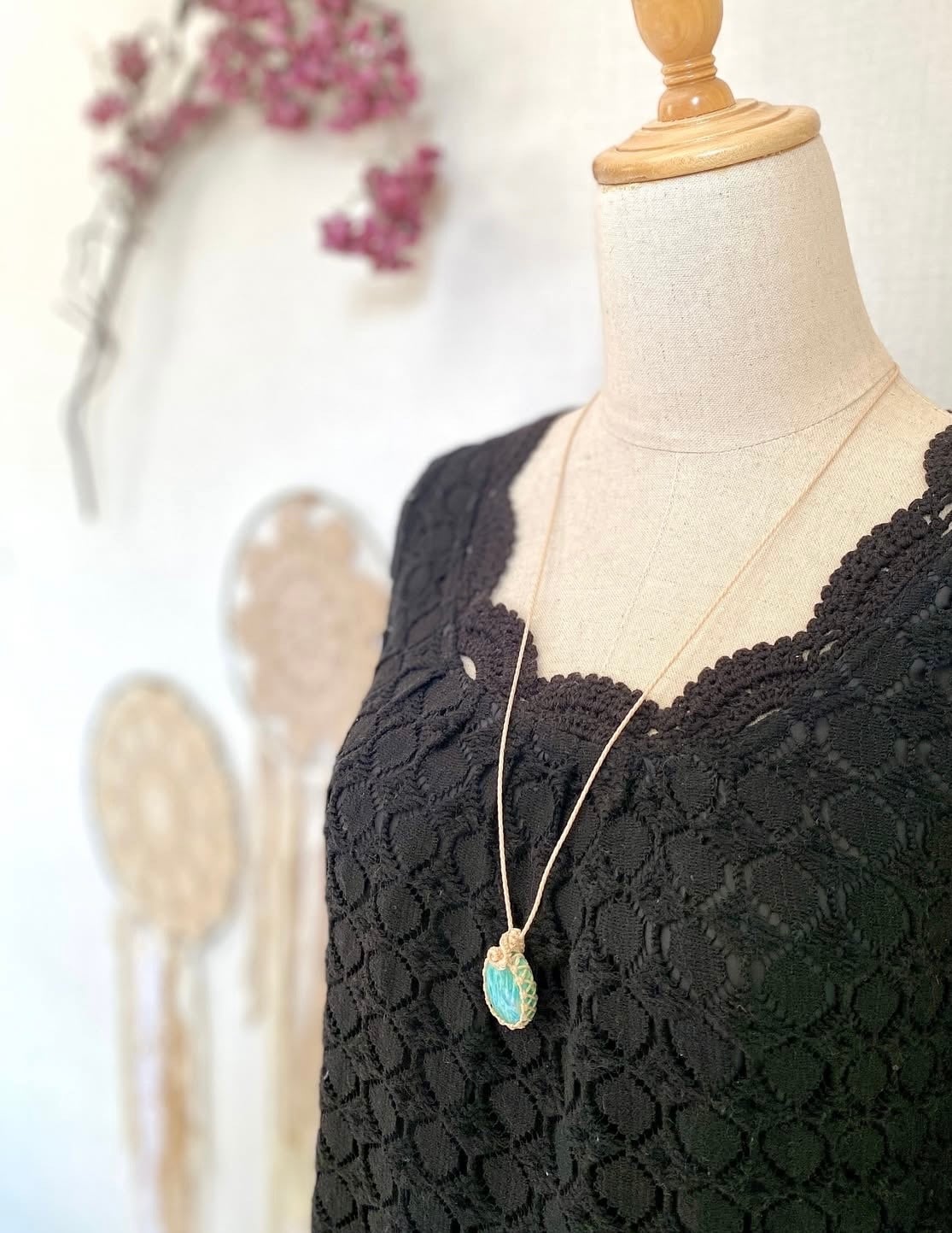 希望の光*アマゾナイト 天然石マクラメネックレス/日々のアクセサリー