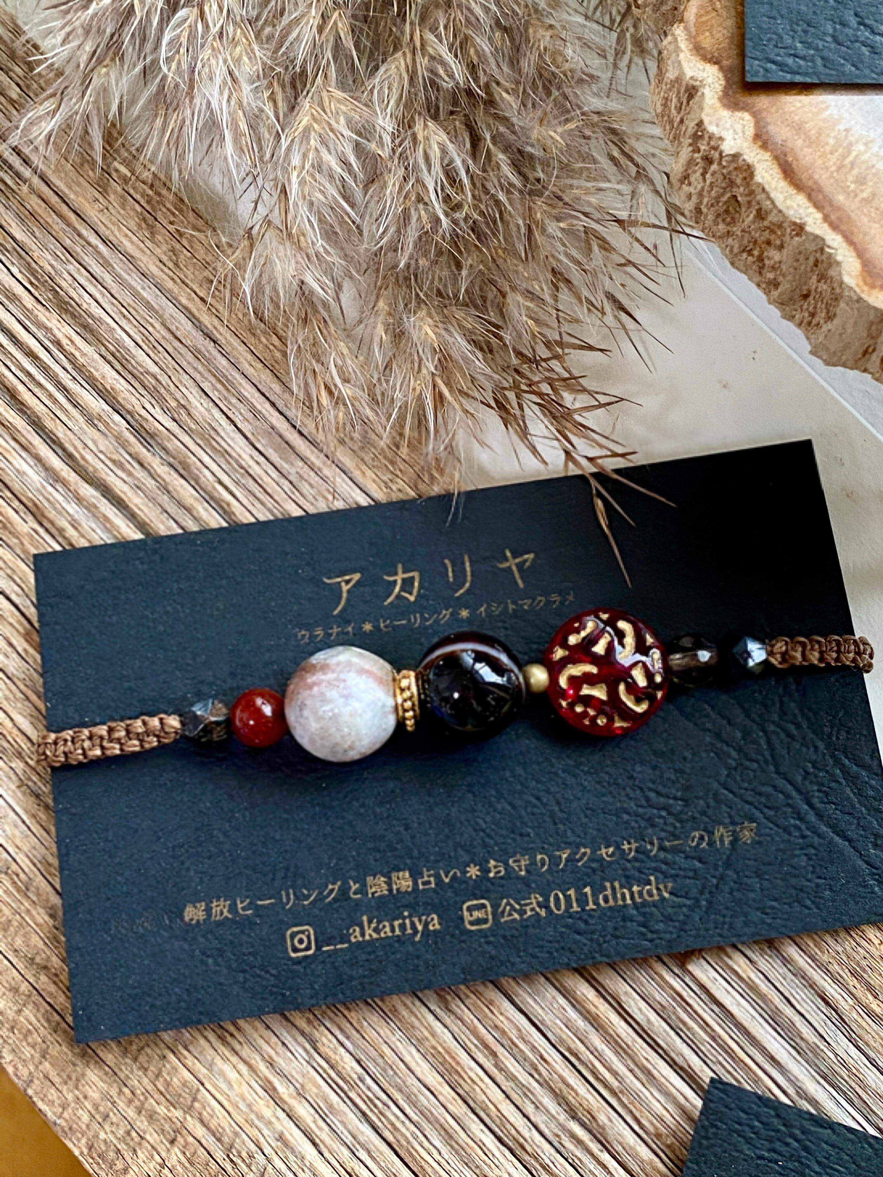 アンティークモダン*オトナ可愛い天然石マクラメブレスレット/日々のお守りアクセサリー