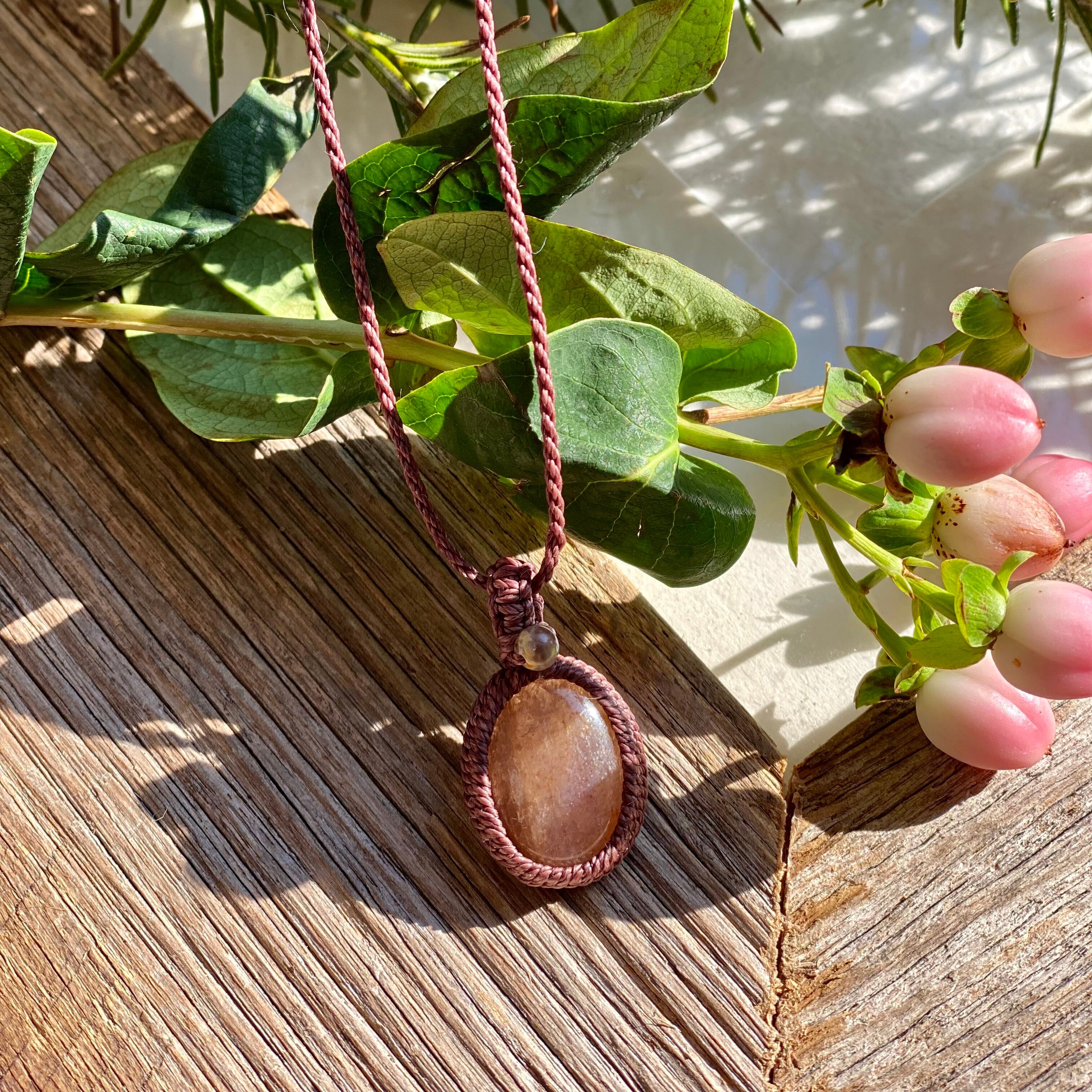 ベージュピンクの落ち着いた色合いのモスコバイトです。色の入り方がストロベリークオーツにも似た石。