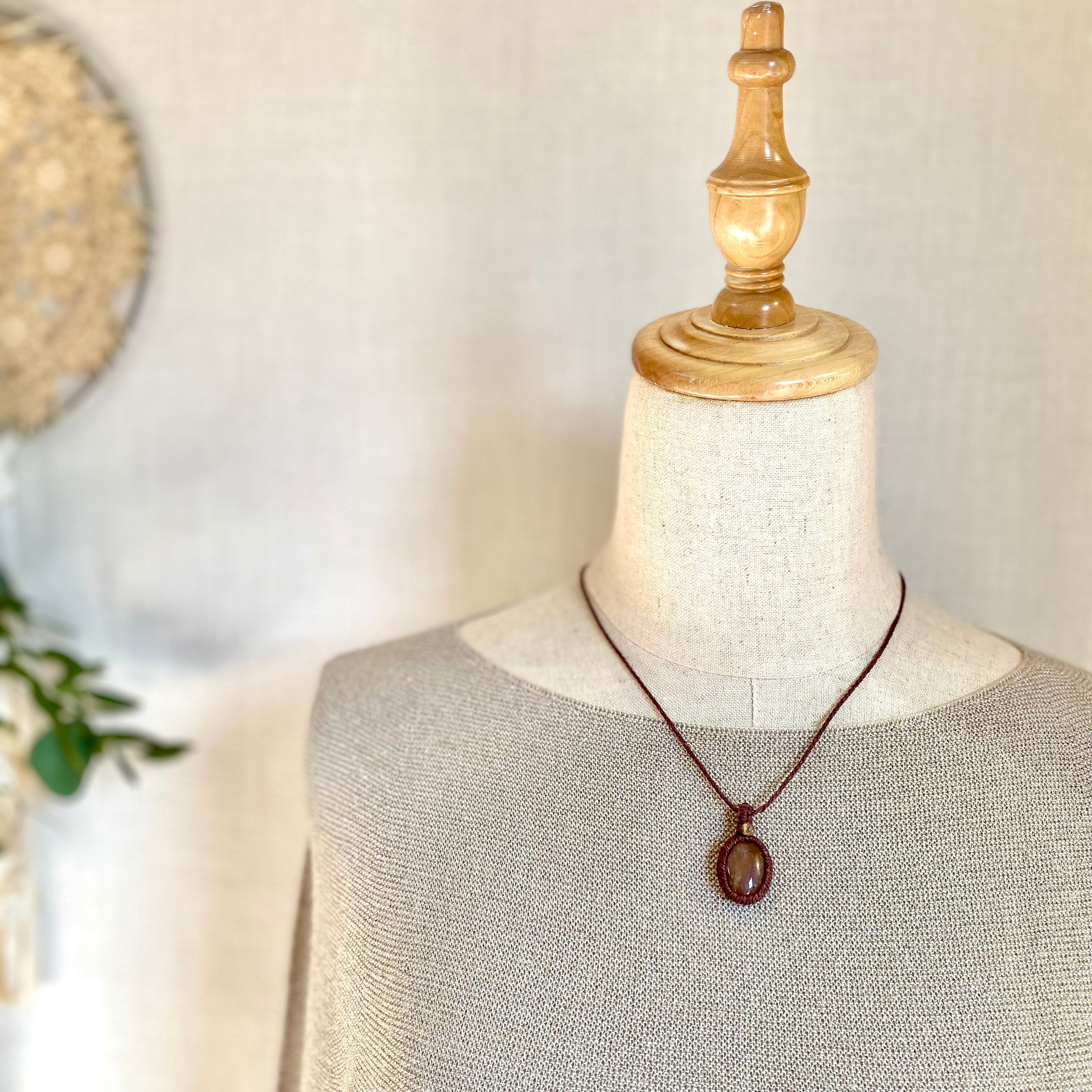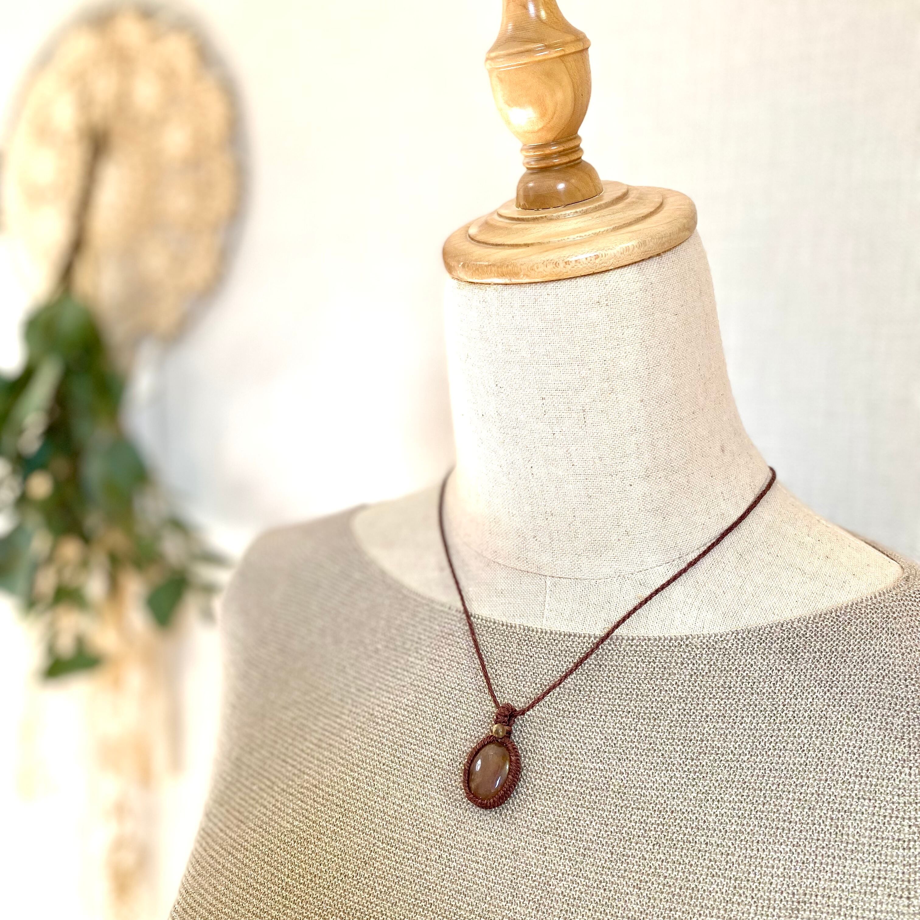 シンプルフレームでトップにベージュ系のアゲートをポイントで。これからの季節はTシャツにもぴったり。シックにもカジュアルにも、幅広い年代に対応で服装も選びません。