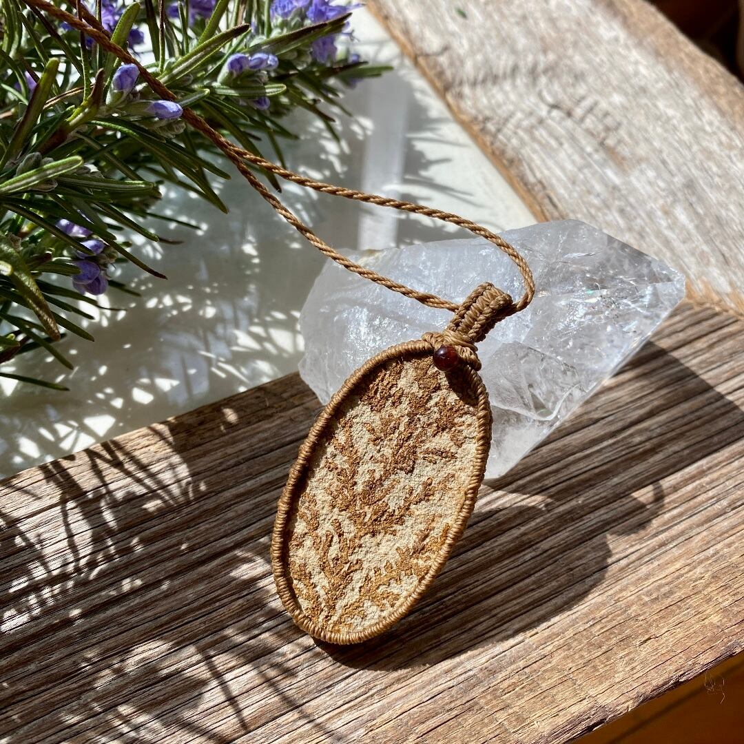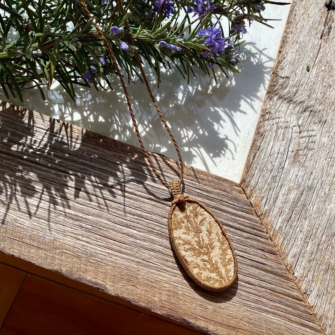 化石のような☆デンドライトストーン☆天然石マクラメペンダント