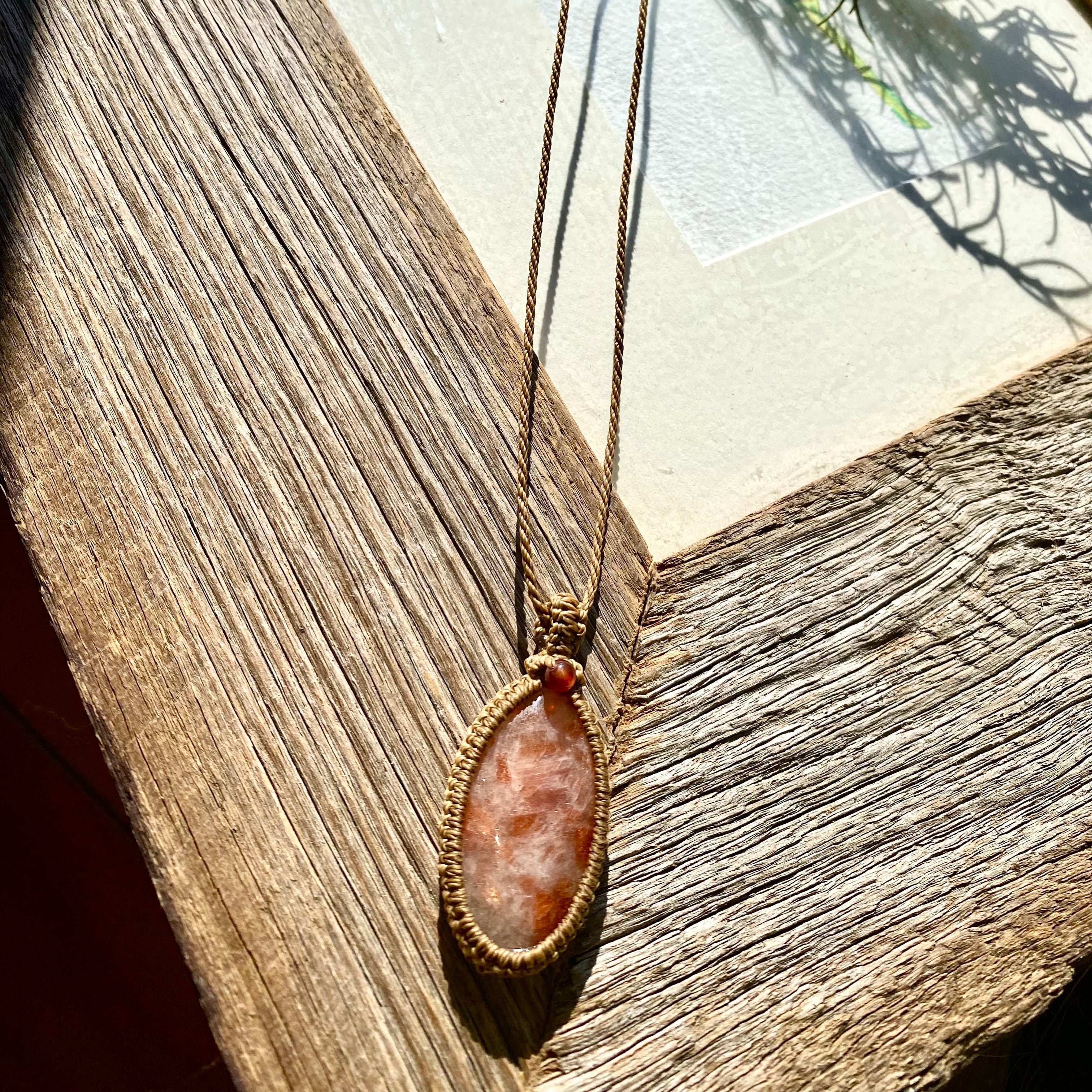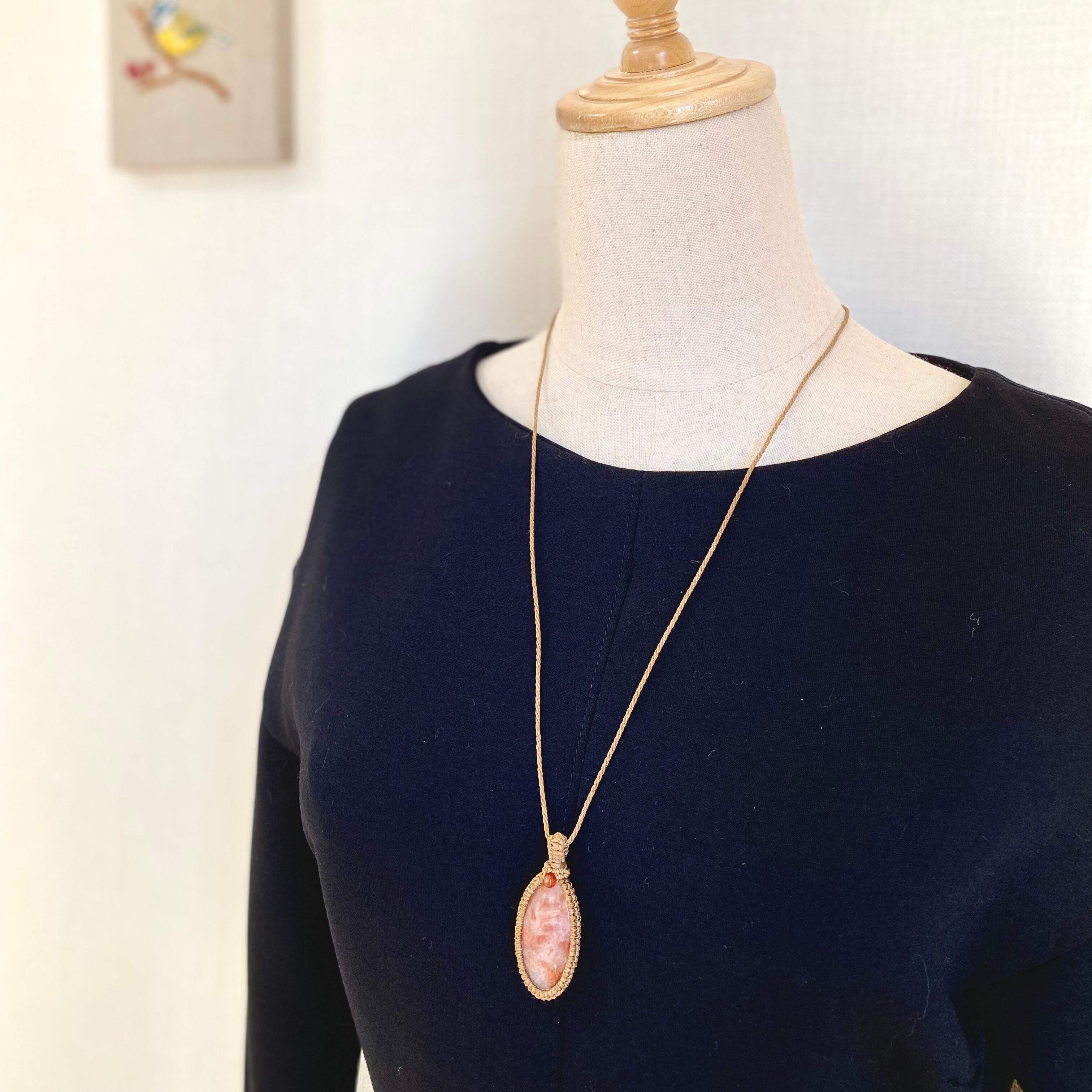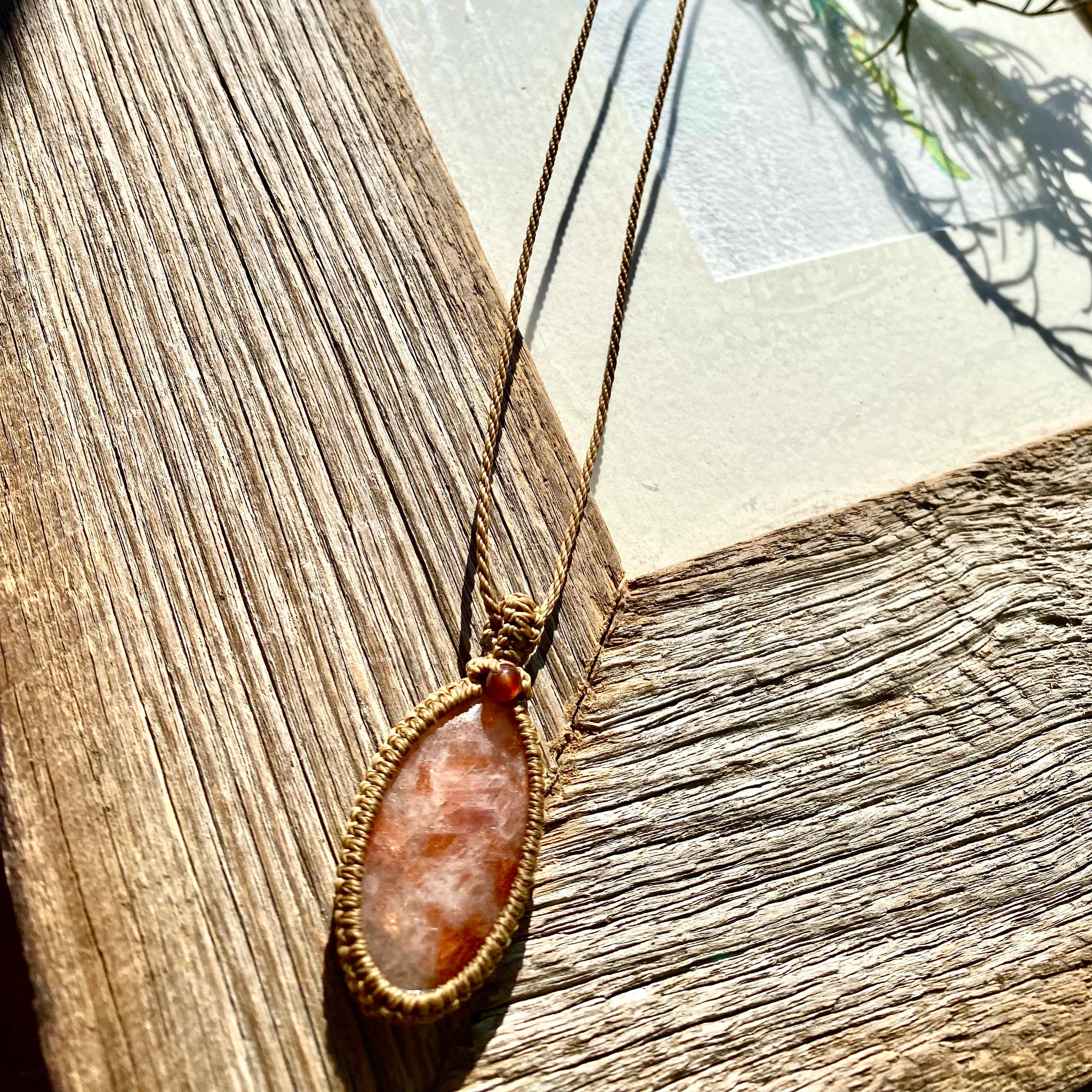 太陽の石☆サンストーン 天然石マクラメペンダント