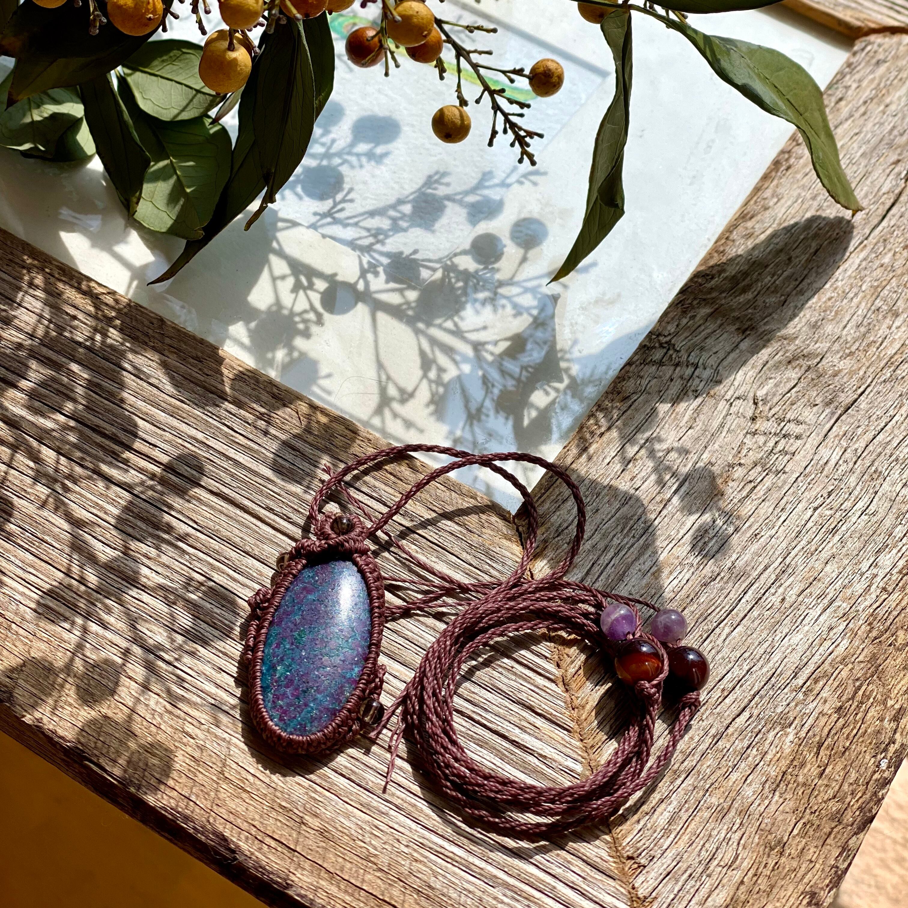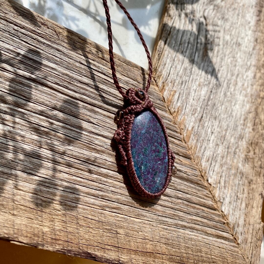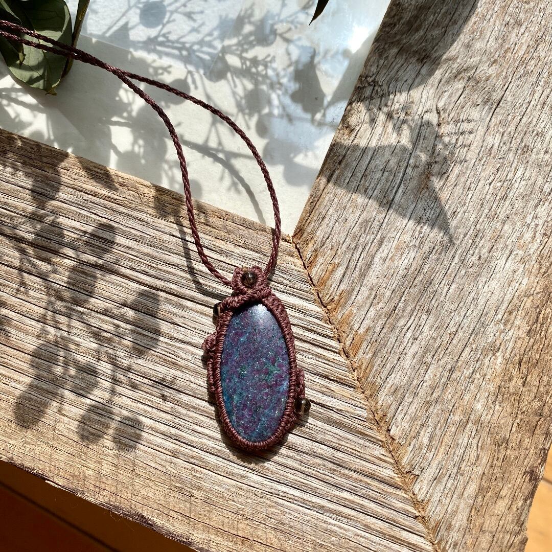 群青☆ルビー イン カイヤナイトマクラメペンダント