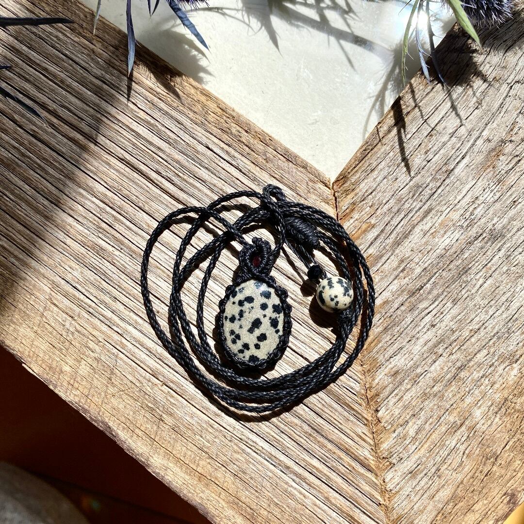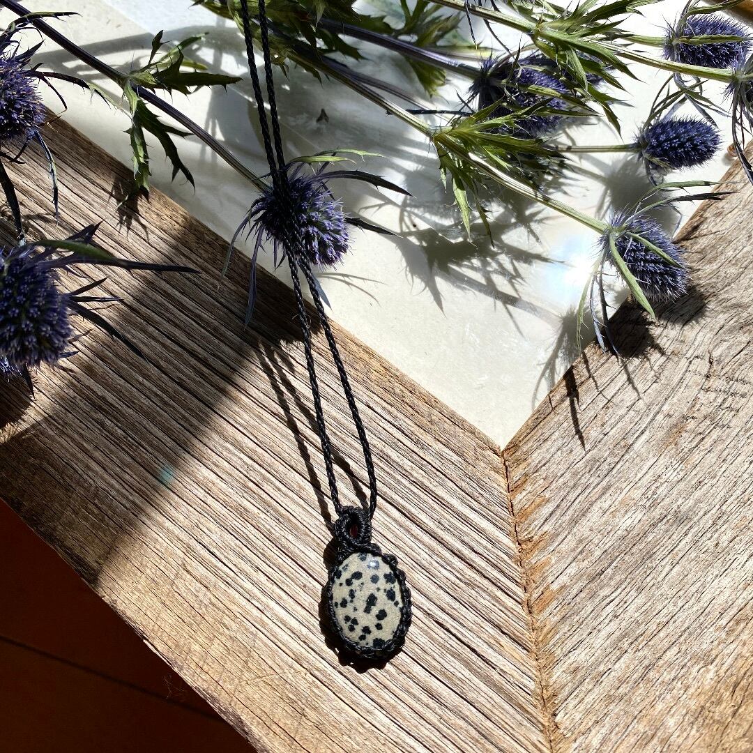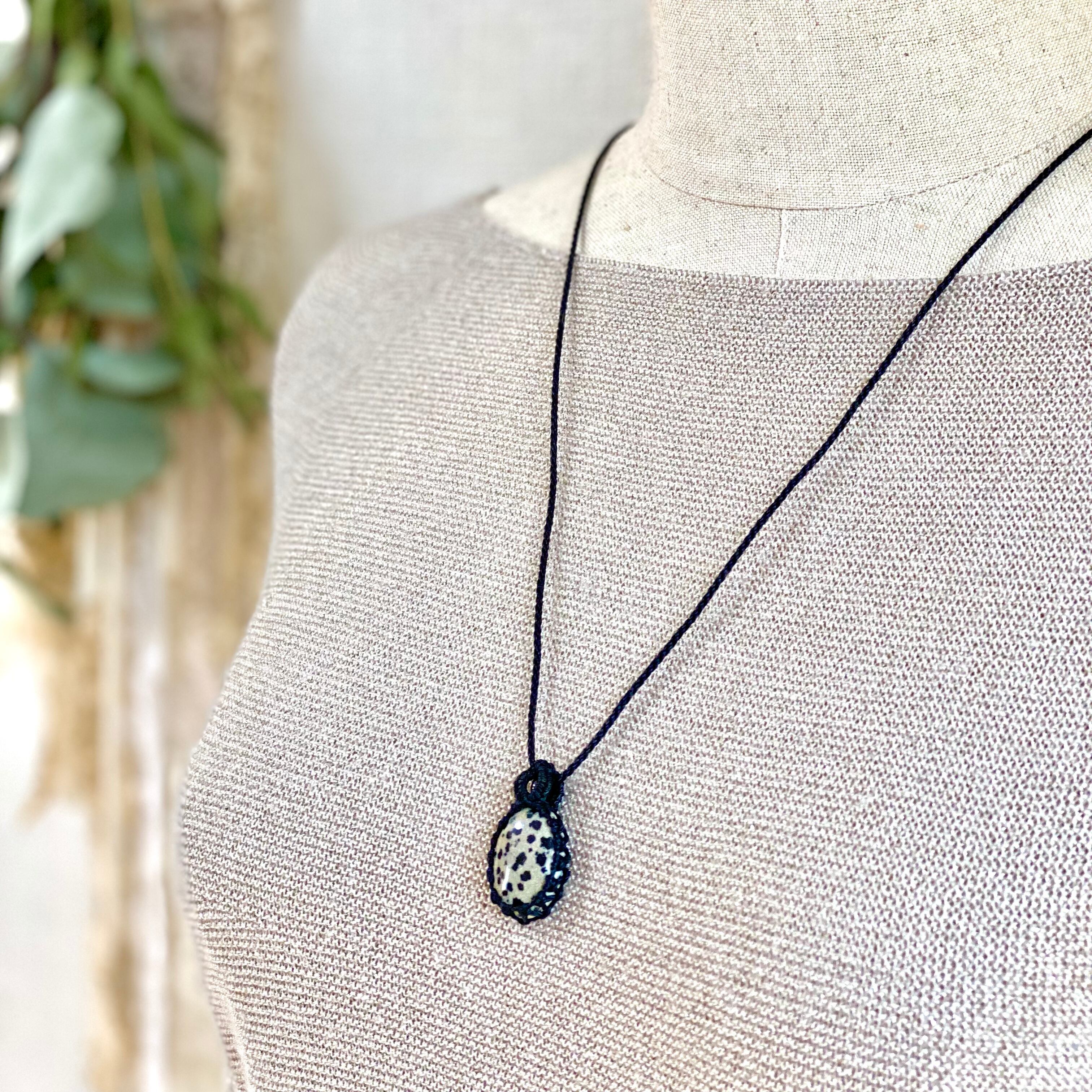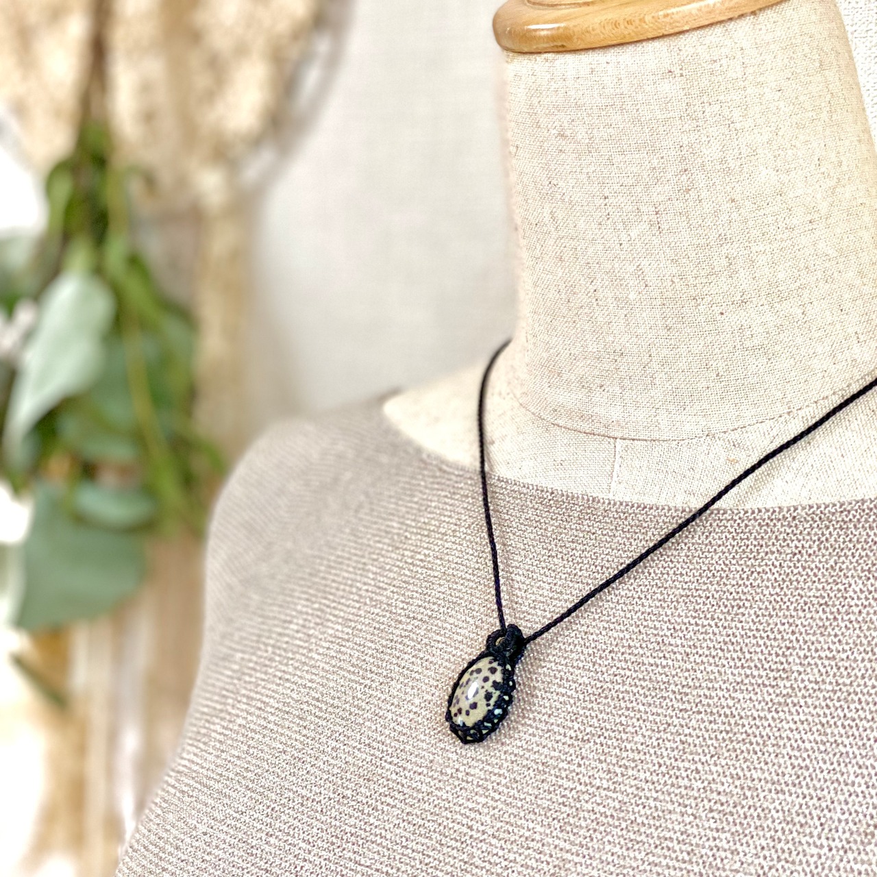 精神力☆ダルメシアンジャスパー 天然石マクラメネックレス