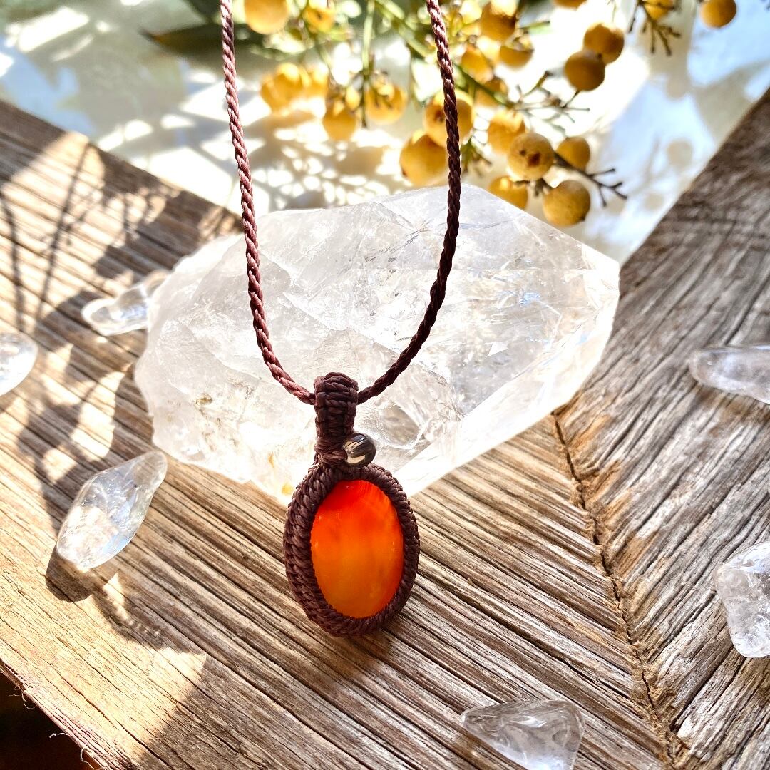 蜂蜜カラー☆アゲート 天然石マクラメネックレス
