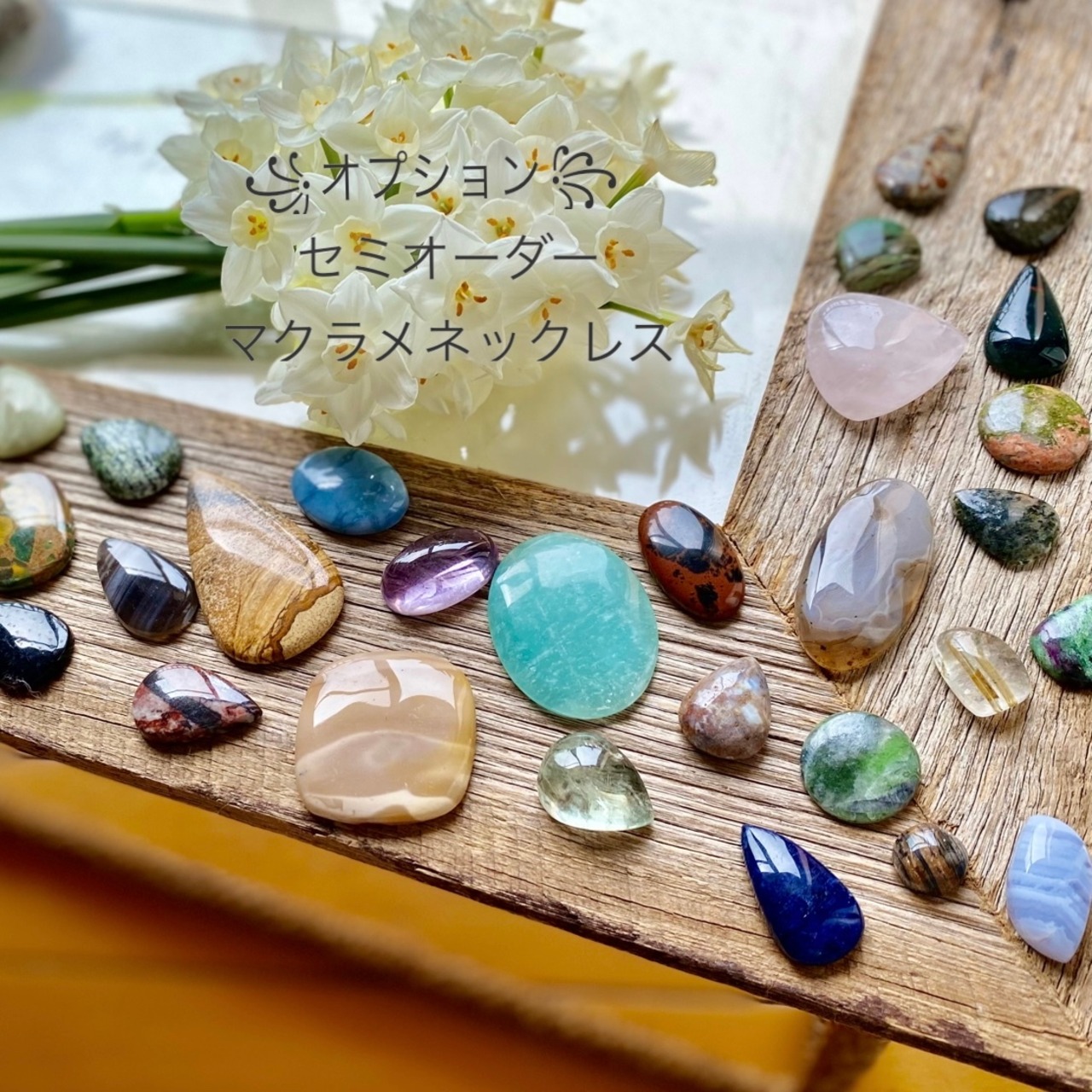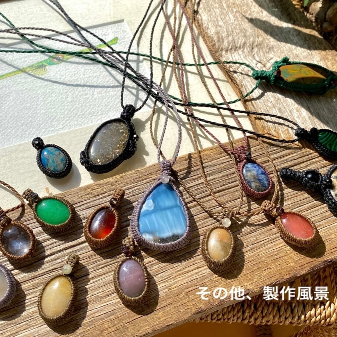 セミオーダーでマクラメネックレスに仕上げます。別ページのオプション(S)に詳細がございます。
