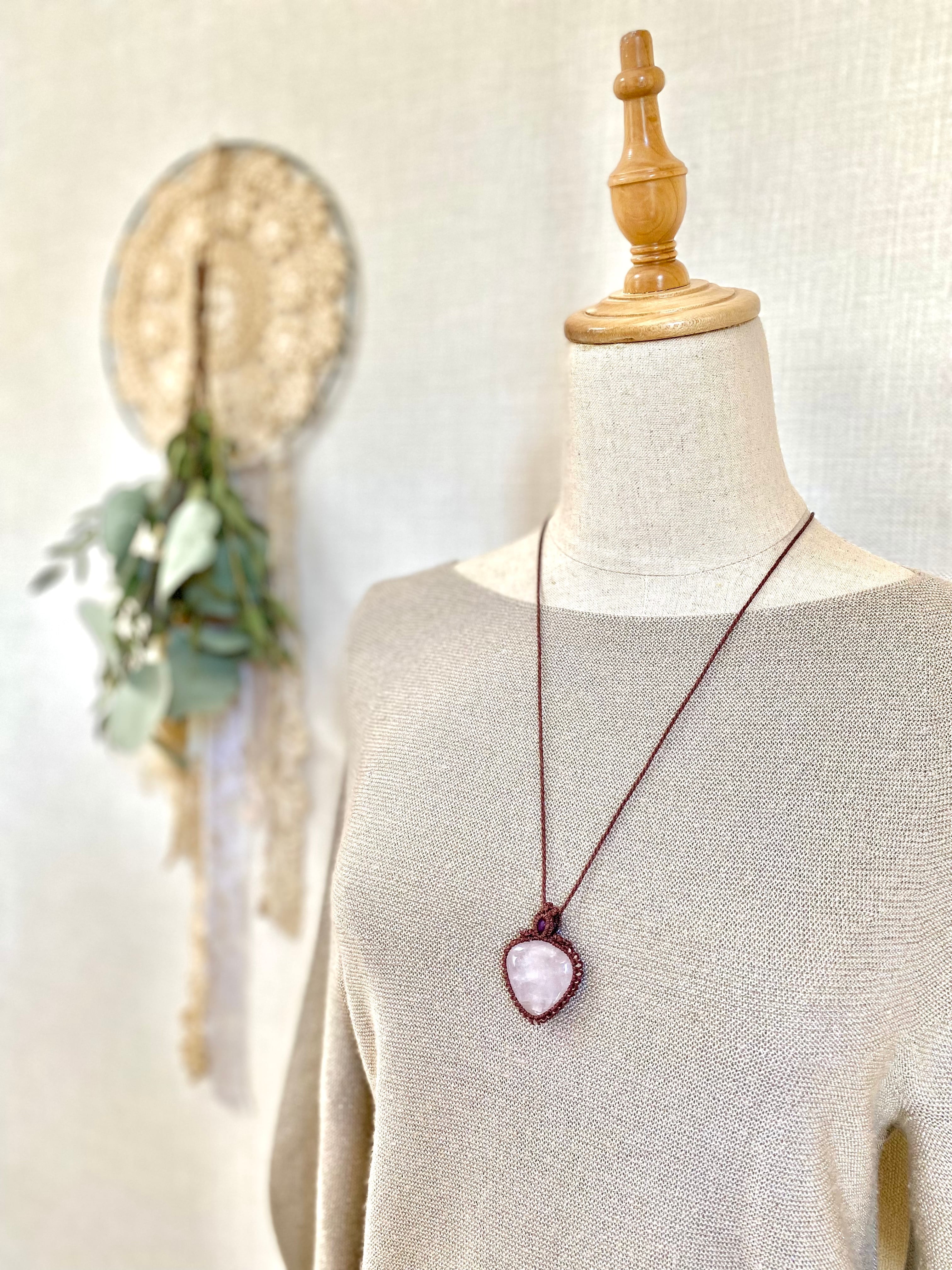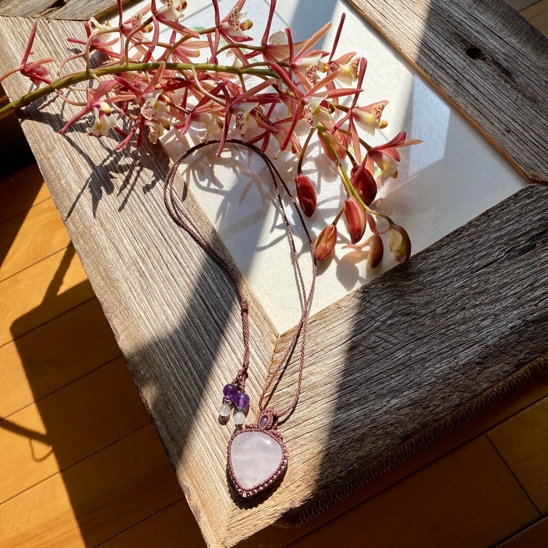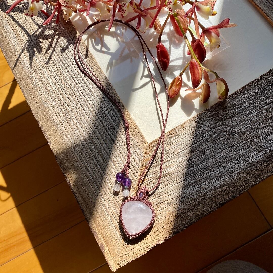 Love☆ローズクオーツ 天然石マクラメネックレス