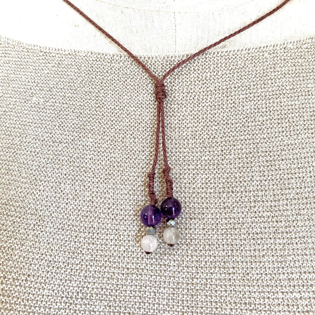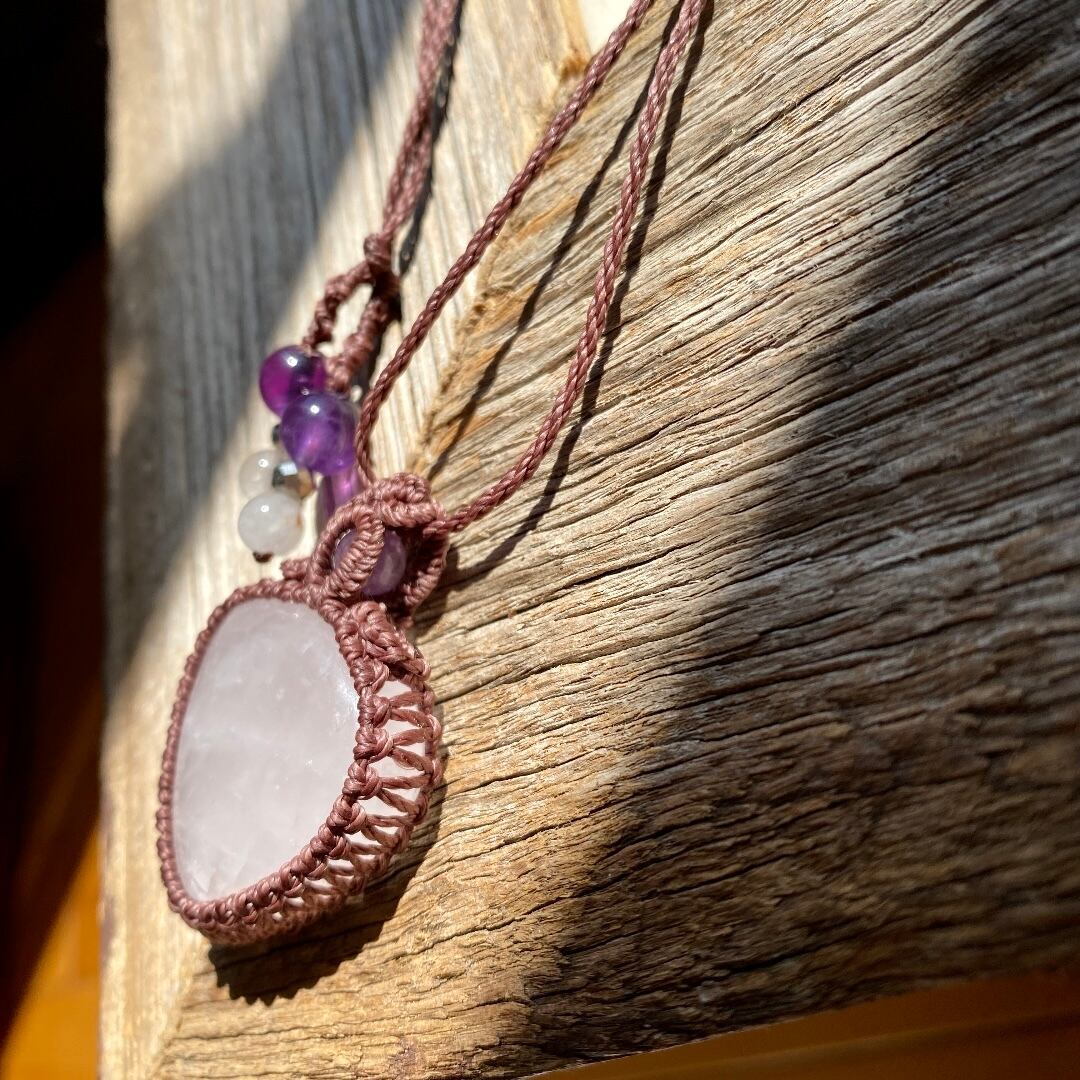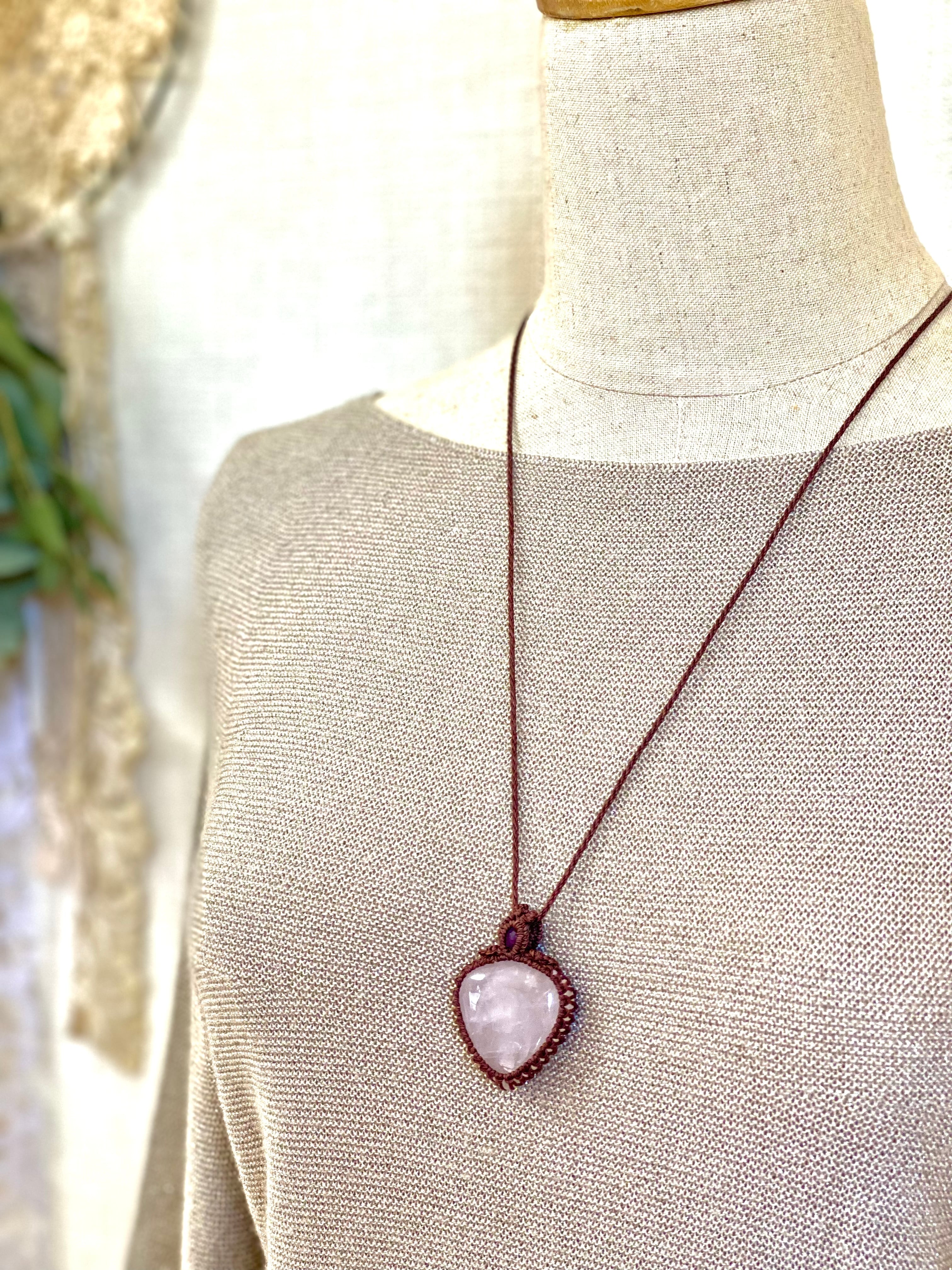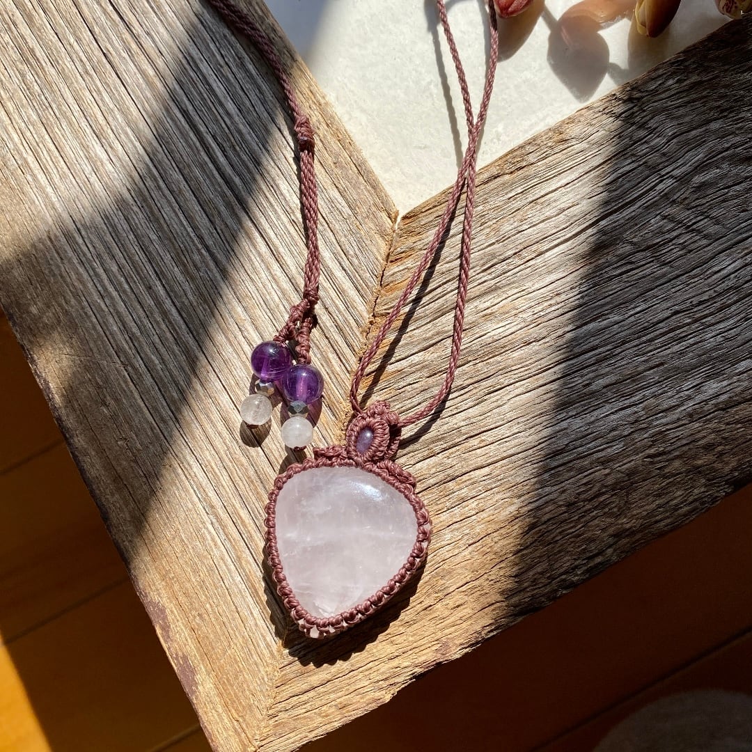 Love☆ローズクオーツ 天然石マクラメネックレス