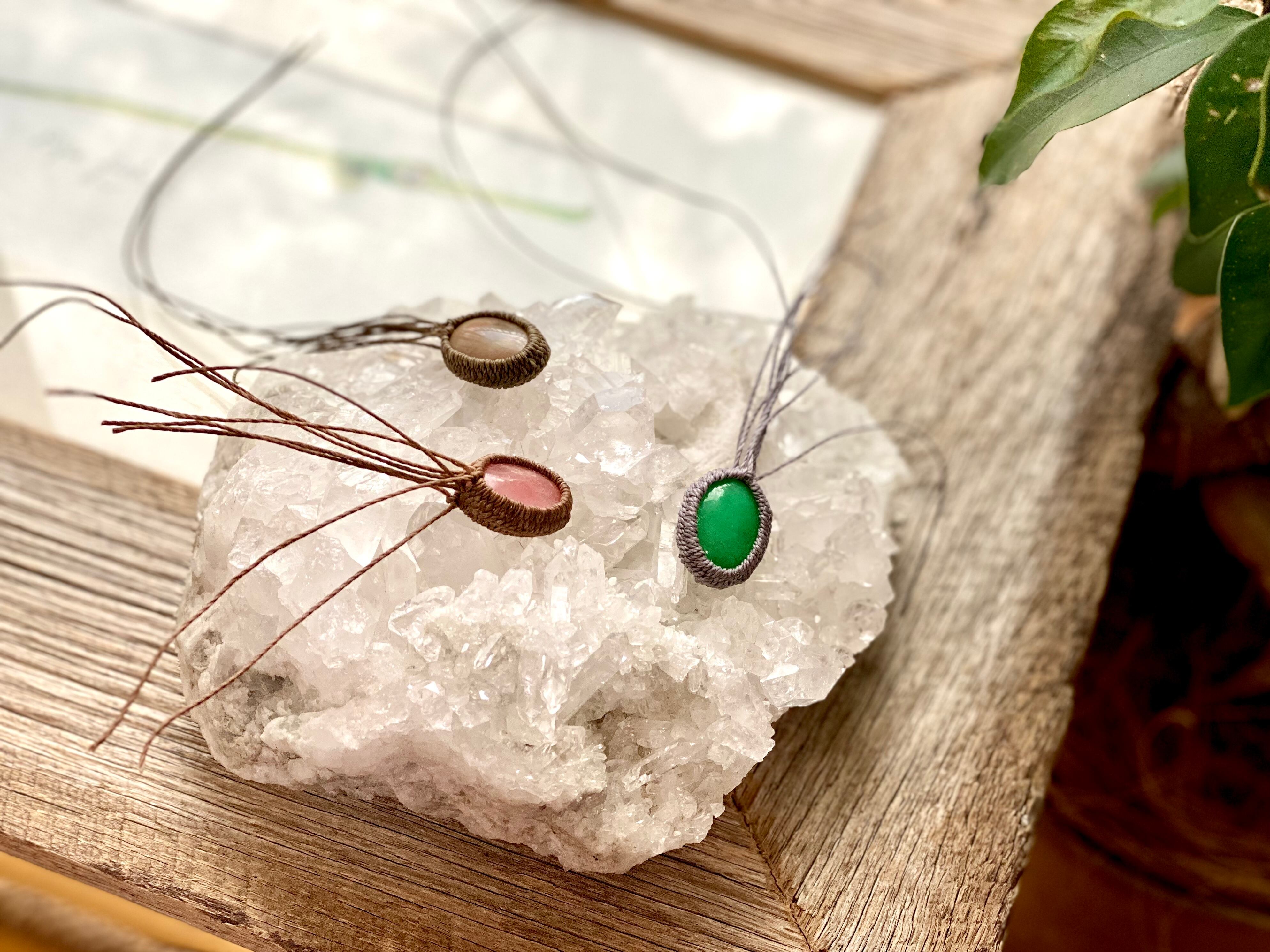 セミオーダーでマクラメネックレスに仕上げます。別ページのオプション(S)に詳細がございます。