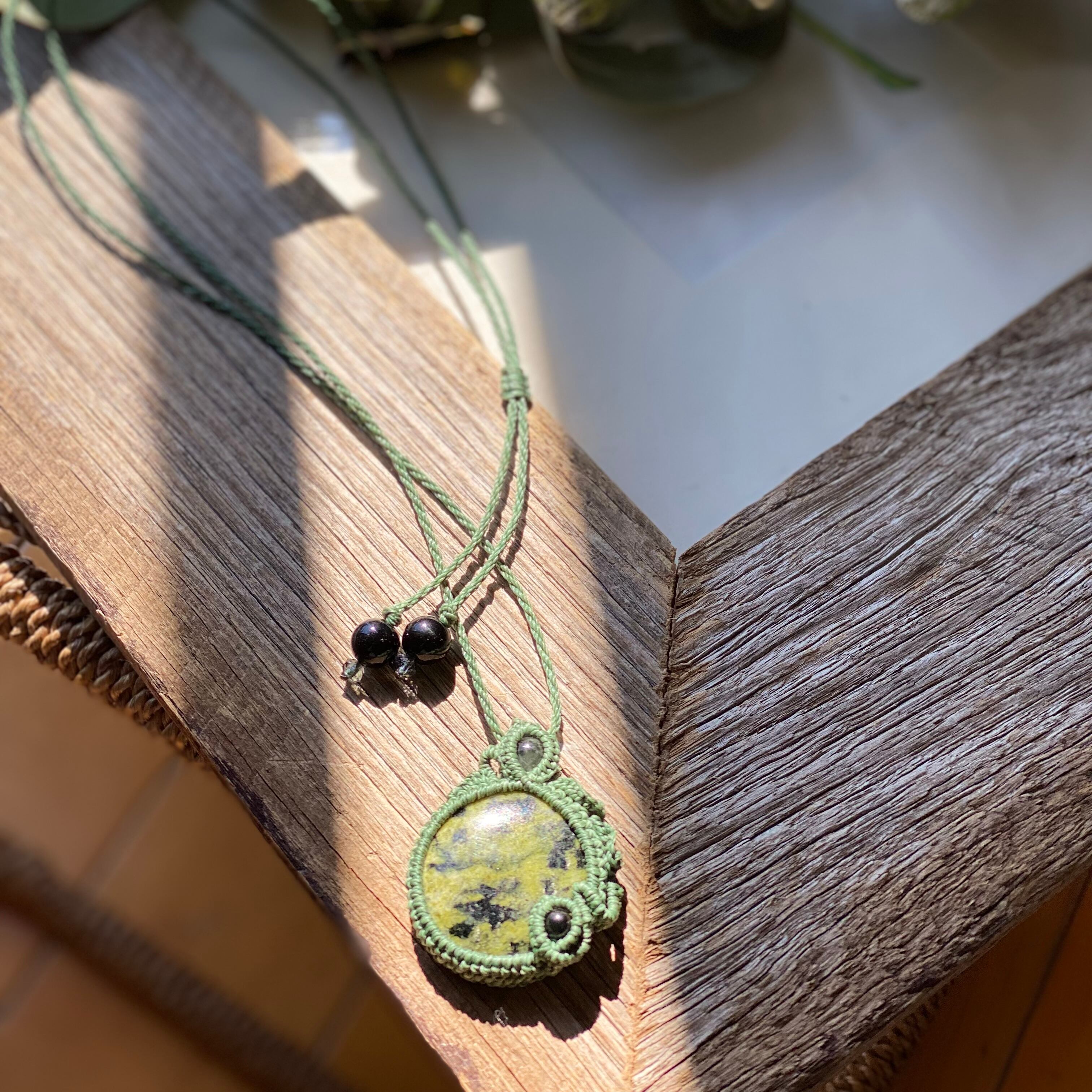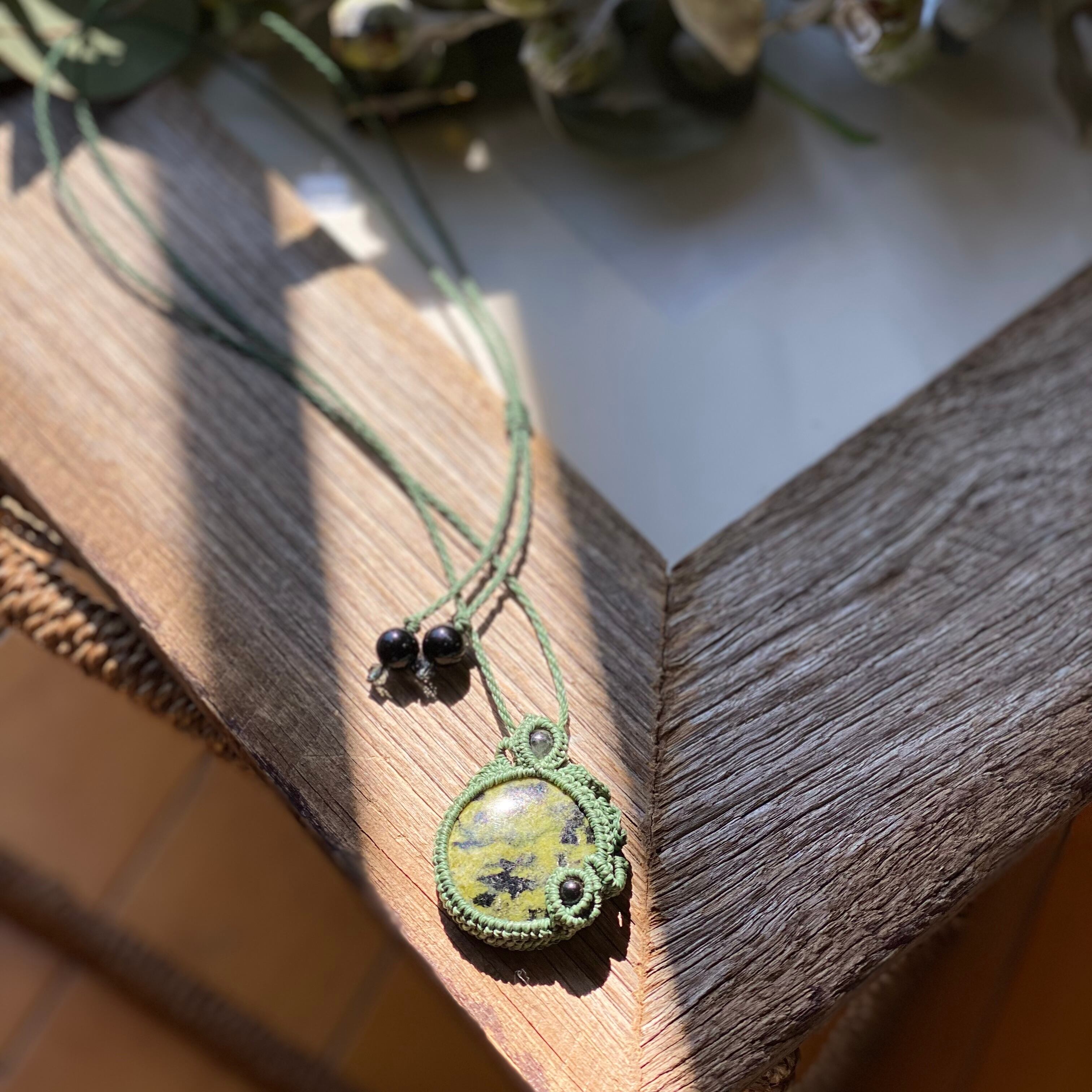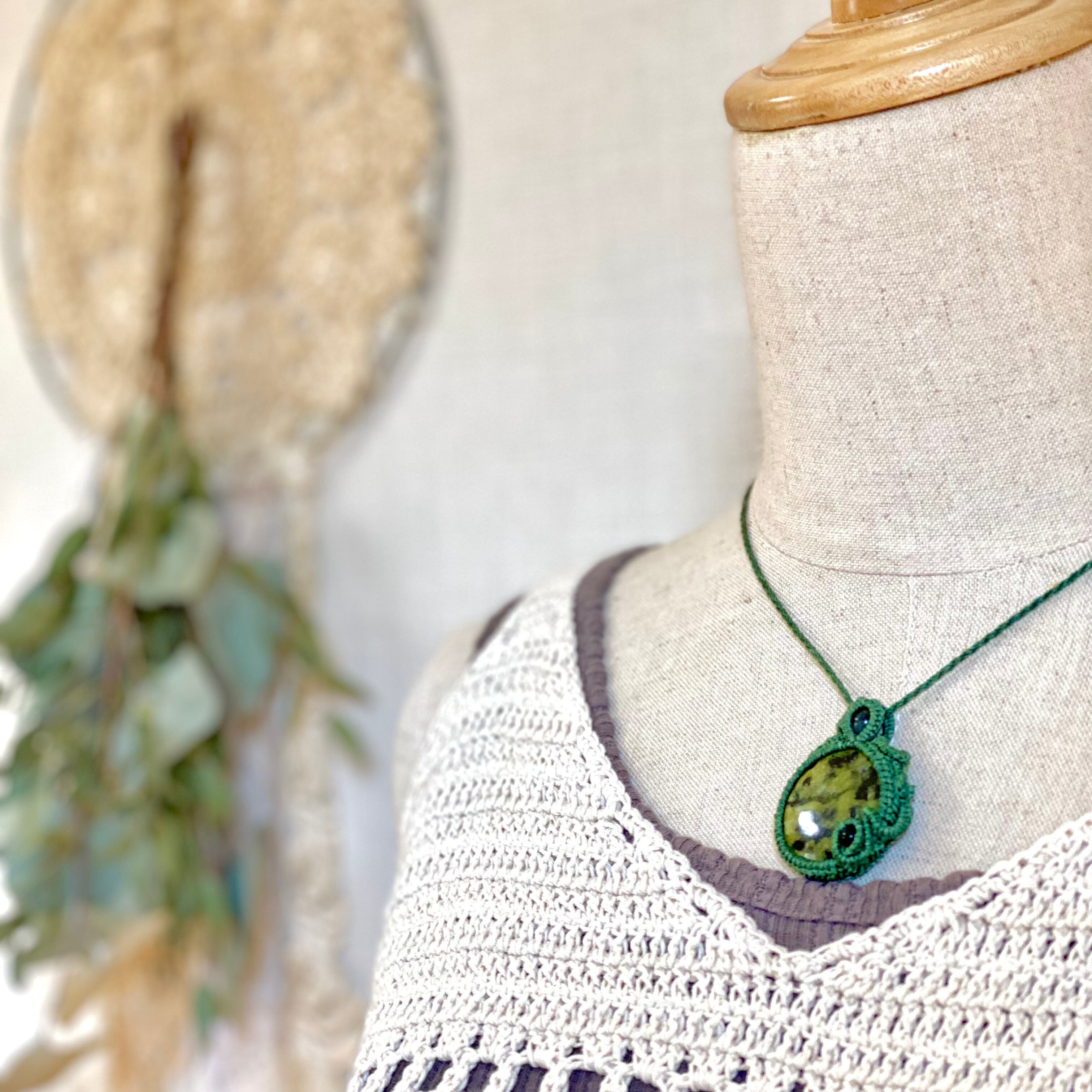 守り☆サーペンティン 天然石マクラメネックレス