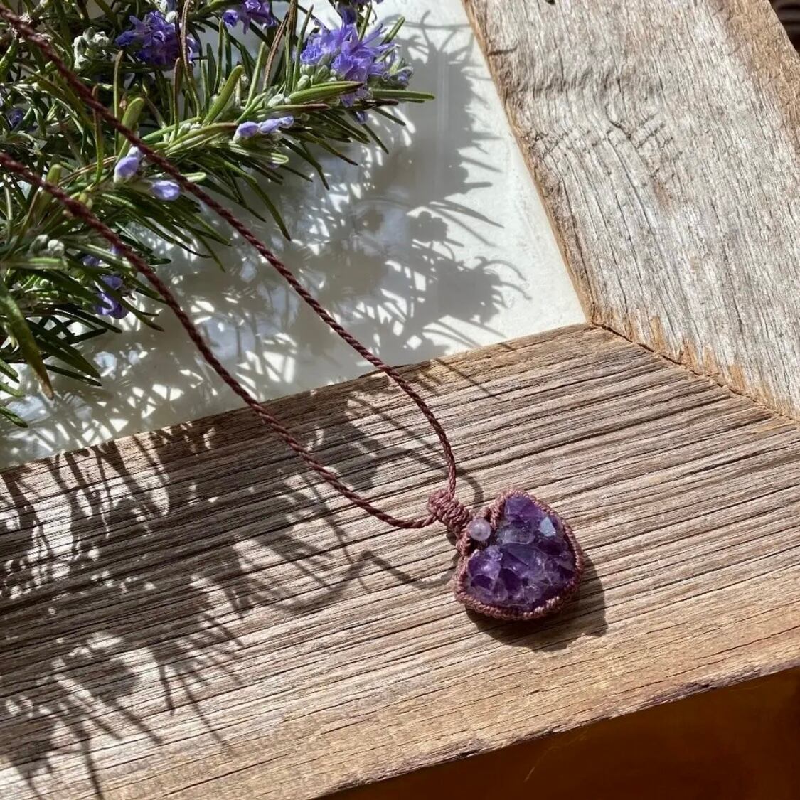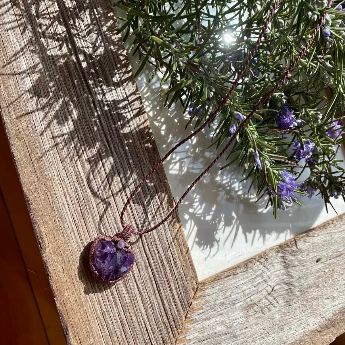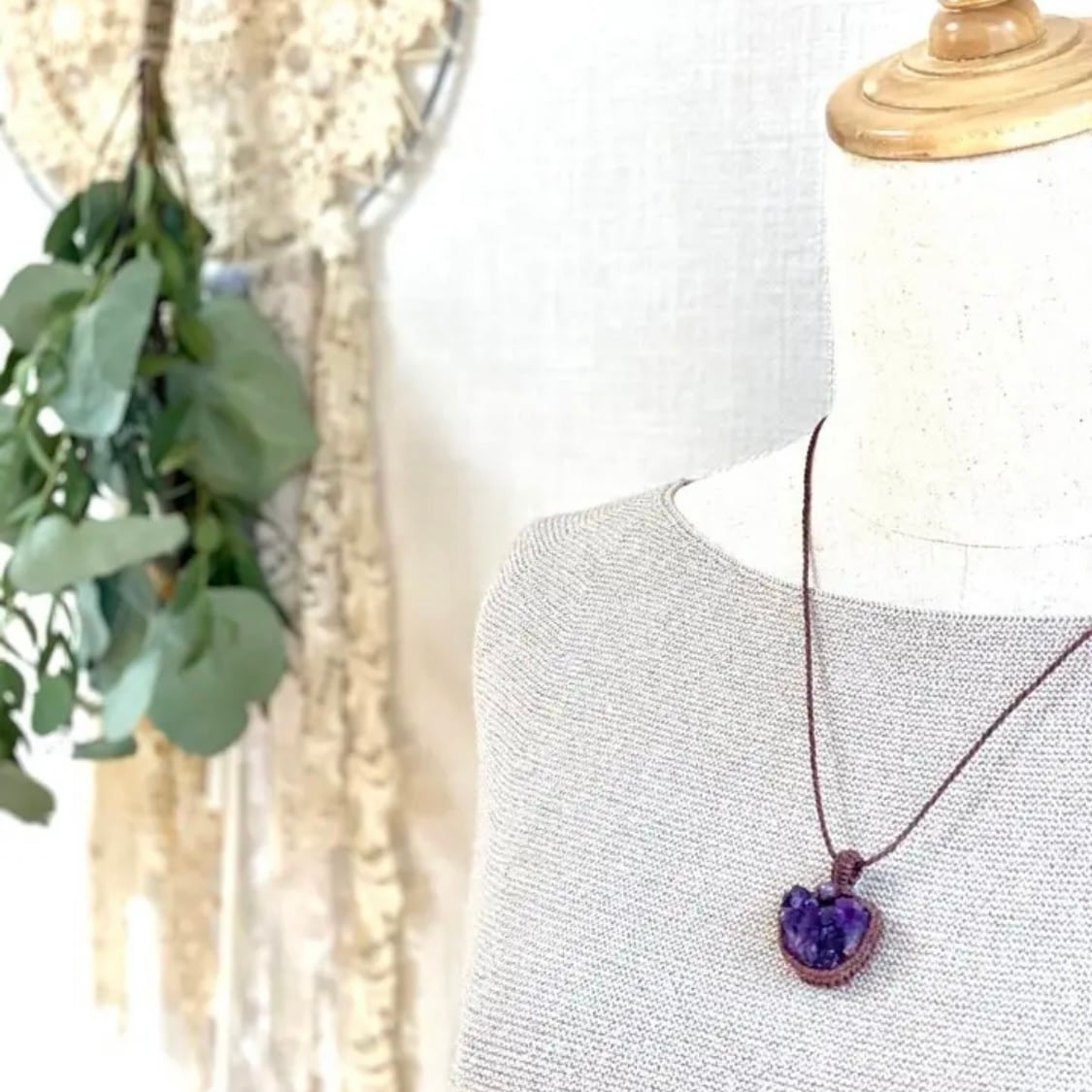 ナチュラルハート☆天然石 アメジストクラスター マクラメペンダント