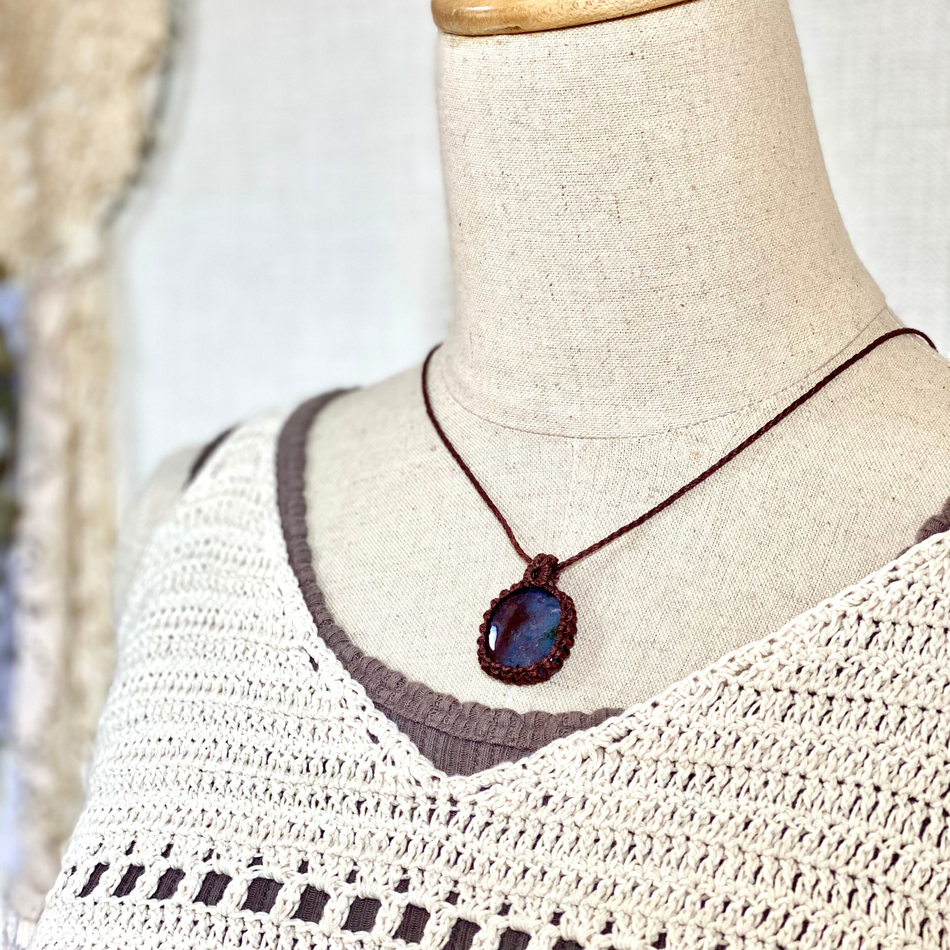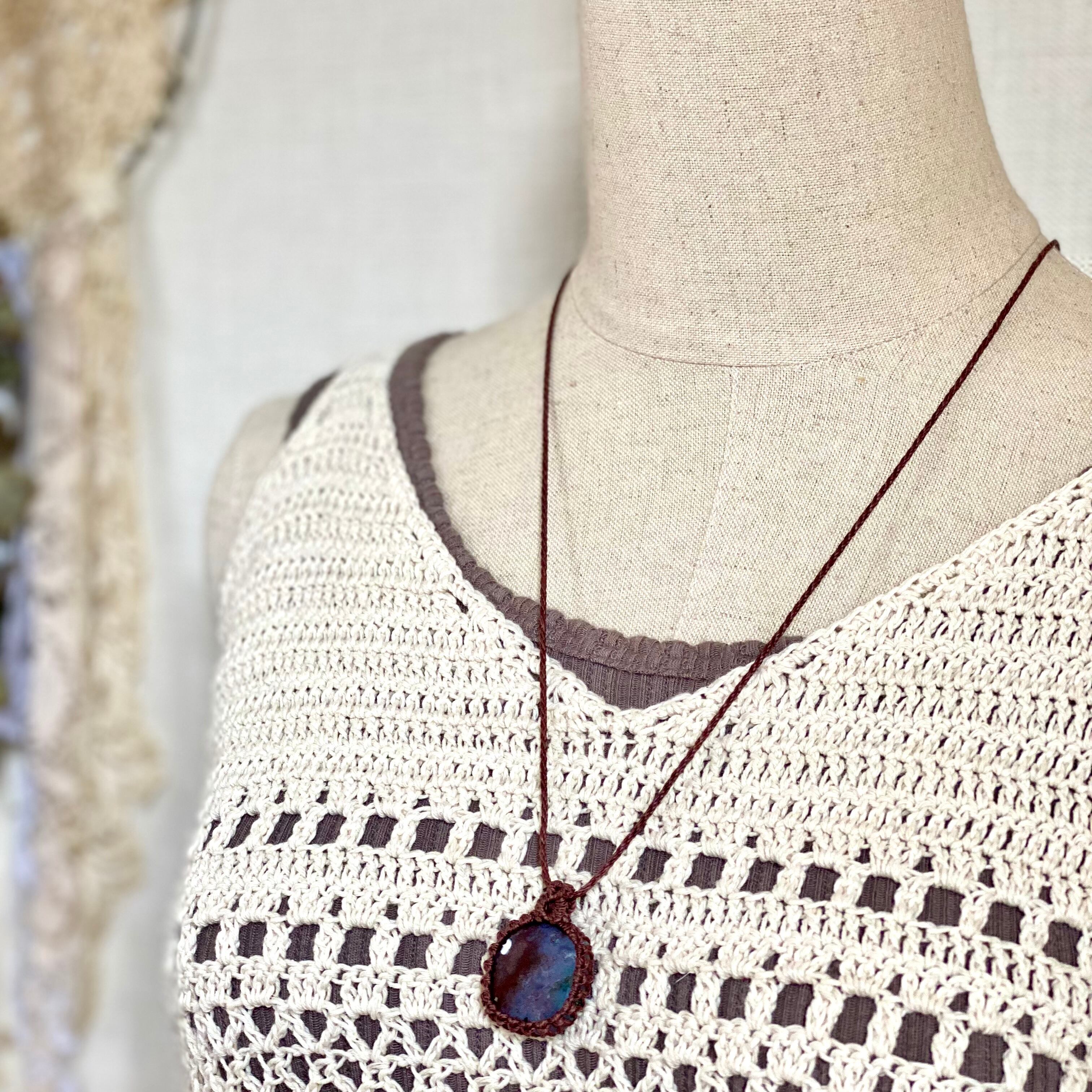 繁栄☆ガーデン モス アゲート 天然石マクラメネックレス