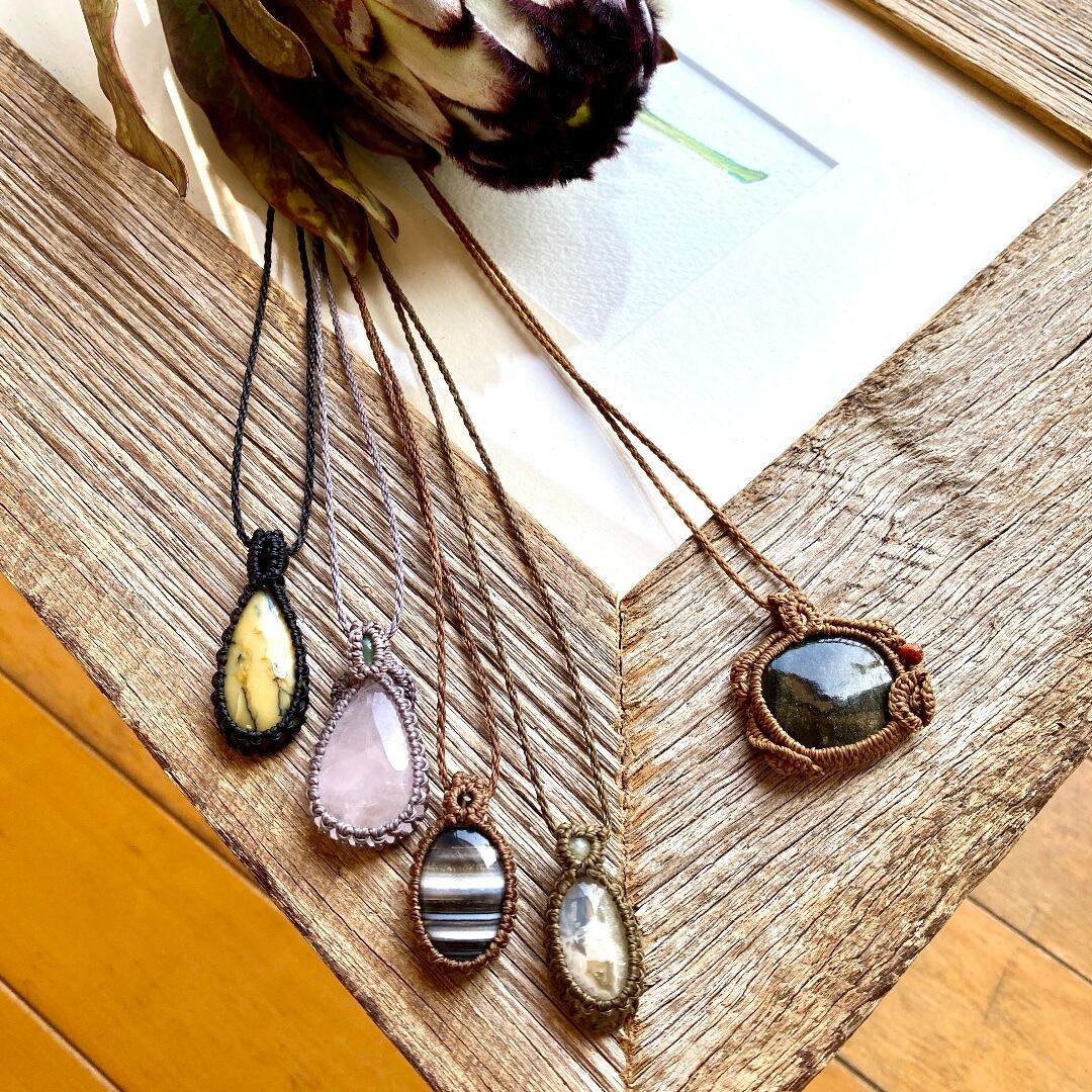 ☆cafeアカリヤでは天然石ルースのお取り扱いもございます。石と製作オプションの同時購入でシンプルに使い勝手の良いマクラメネックレスのセミオーダーをご用意しております。