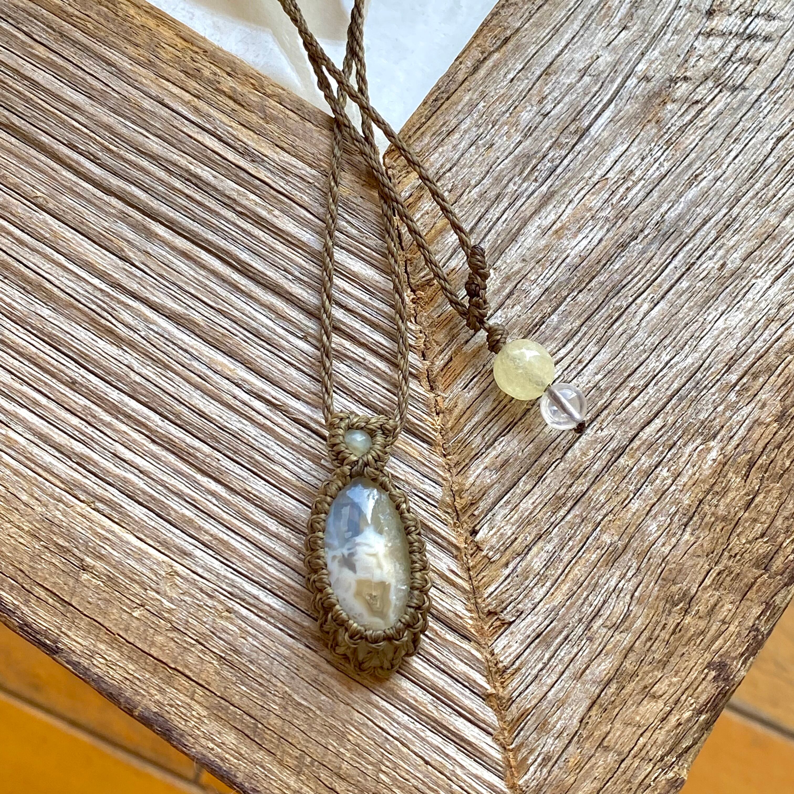 絆☆イエロー クレイジーレース アゲート 天然石マクラメネックレス