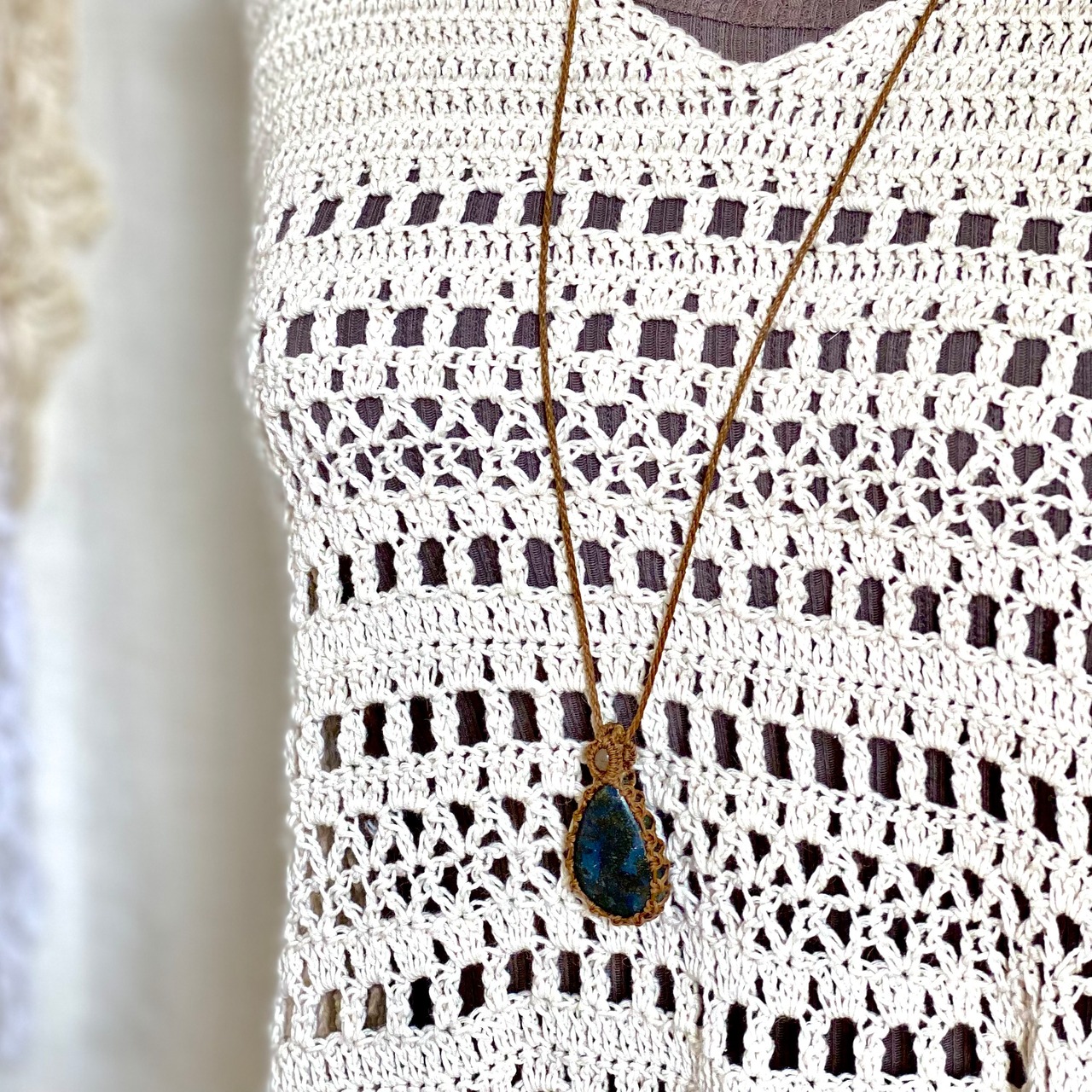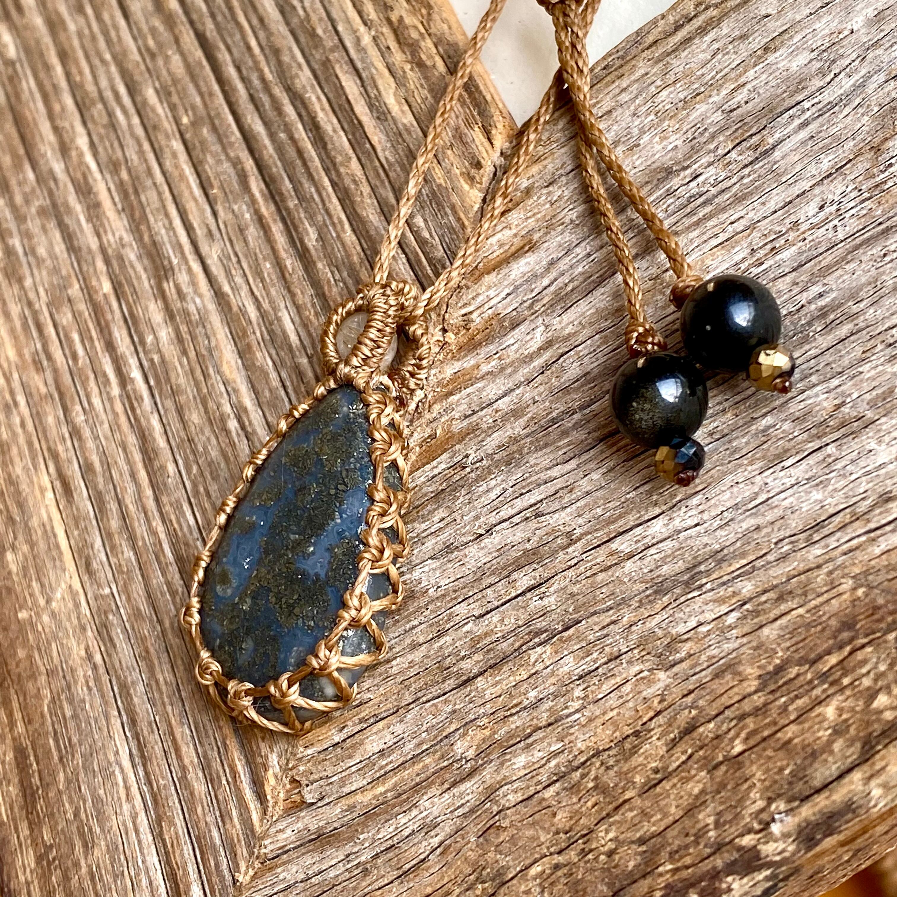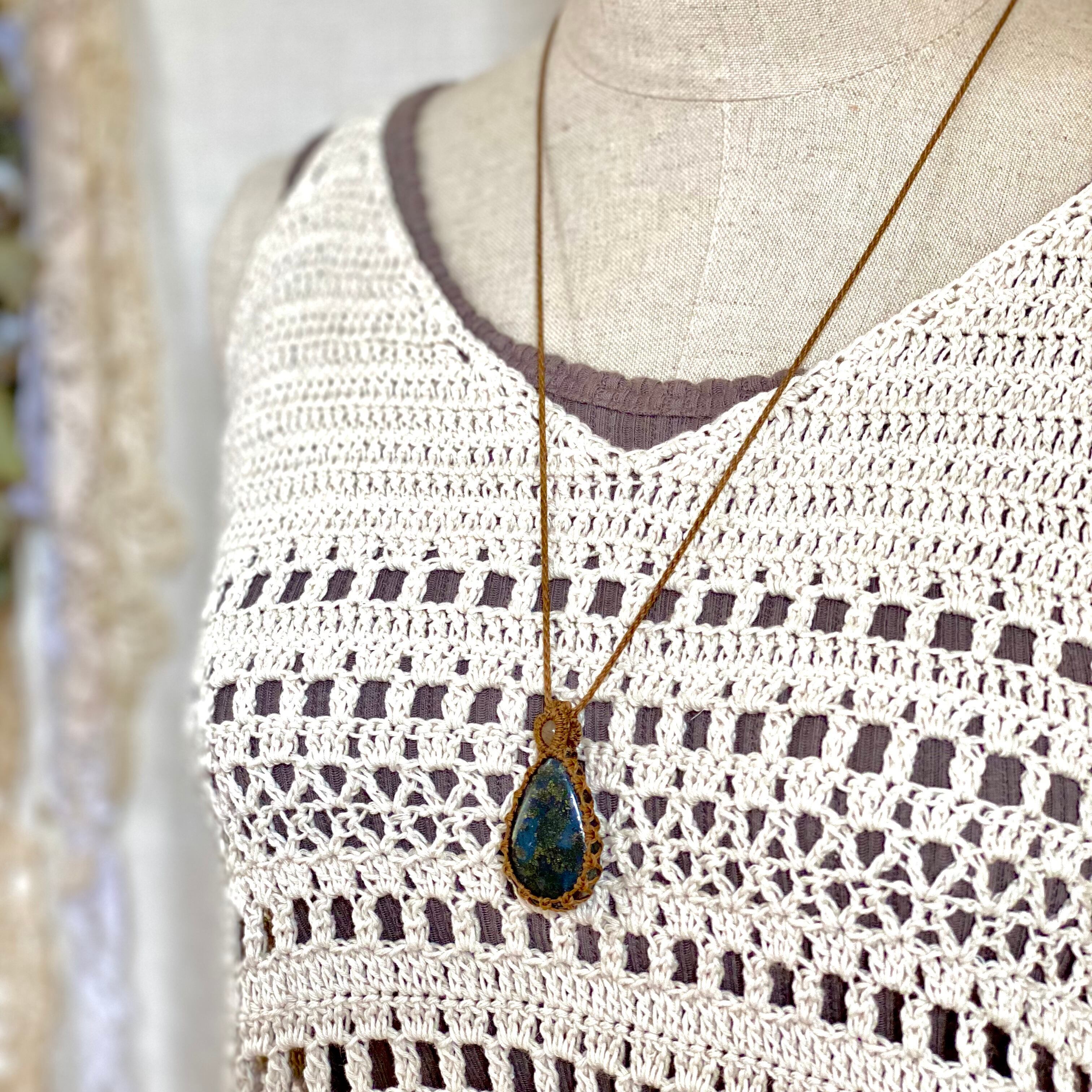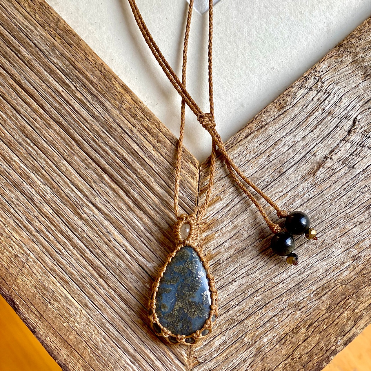 希少☆マルカサイト アゲート 天然石マクラメネックレス