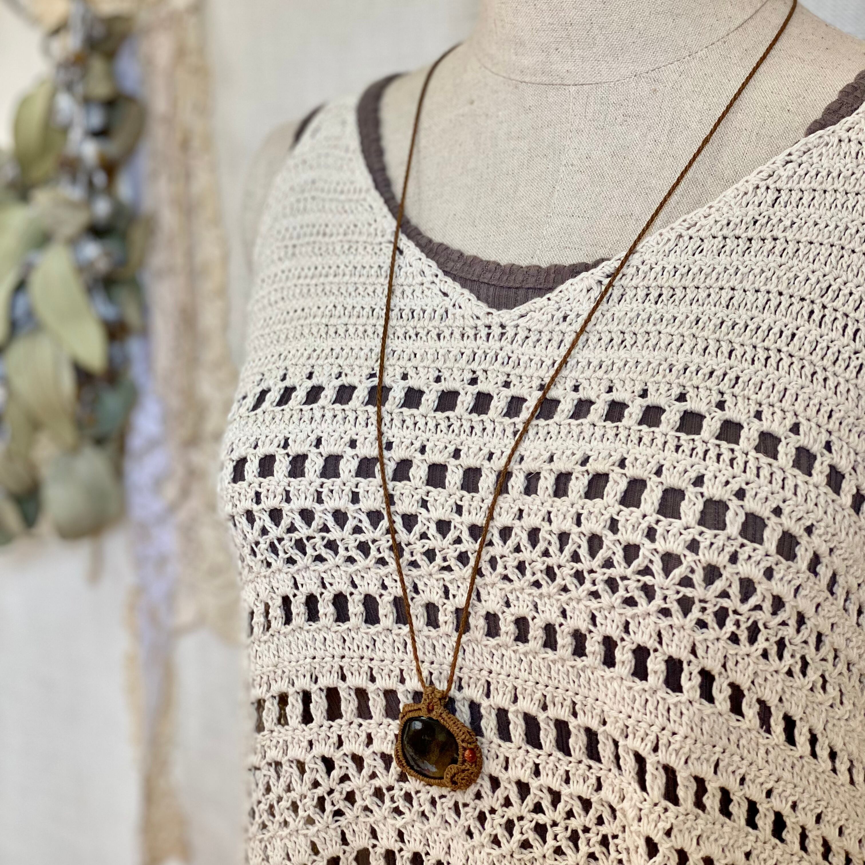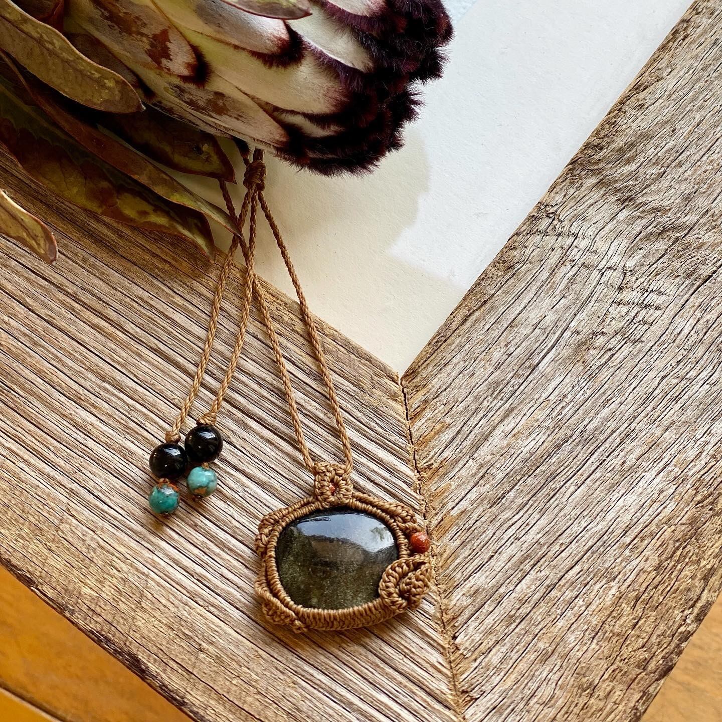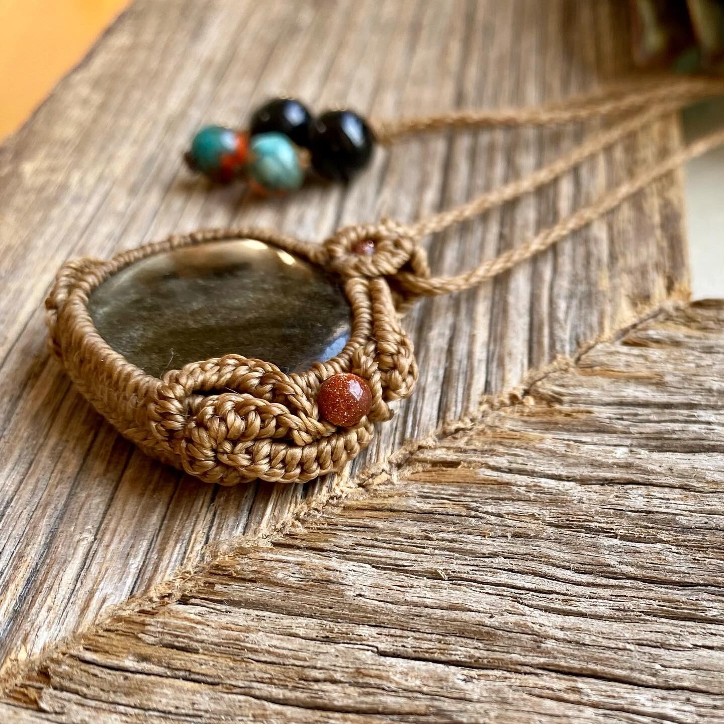 volcano☆ゴールデンオブシディアン 天然石マクラメネックレス