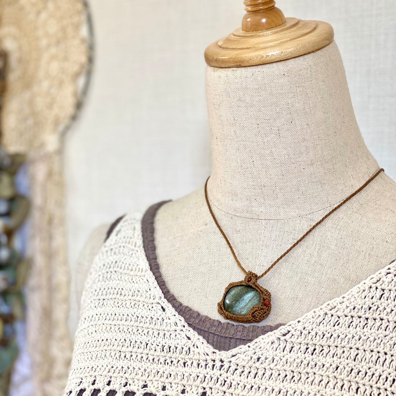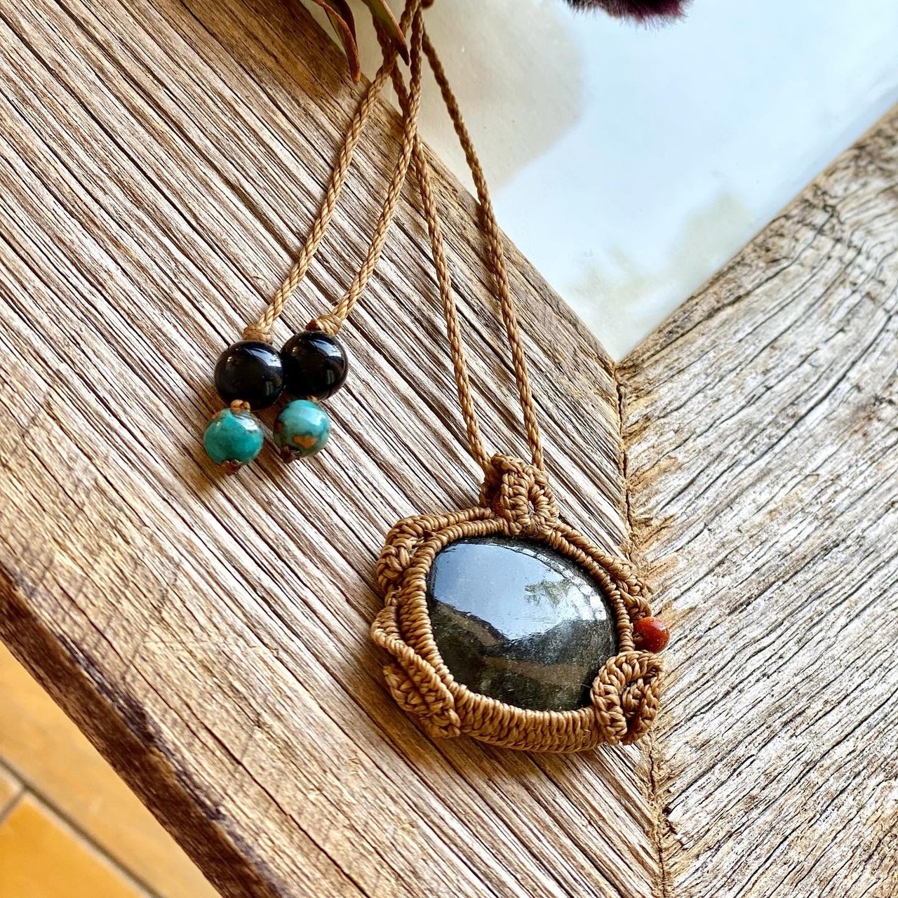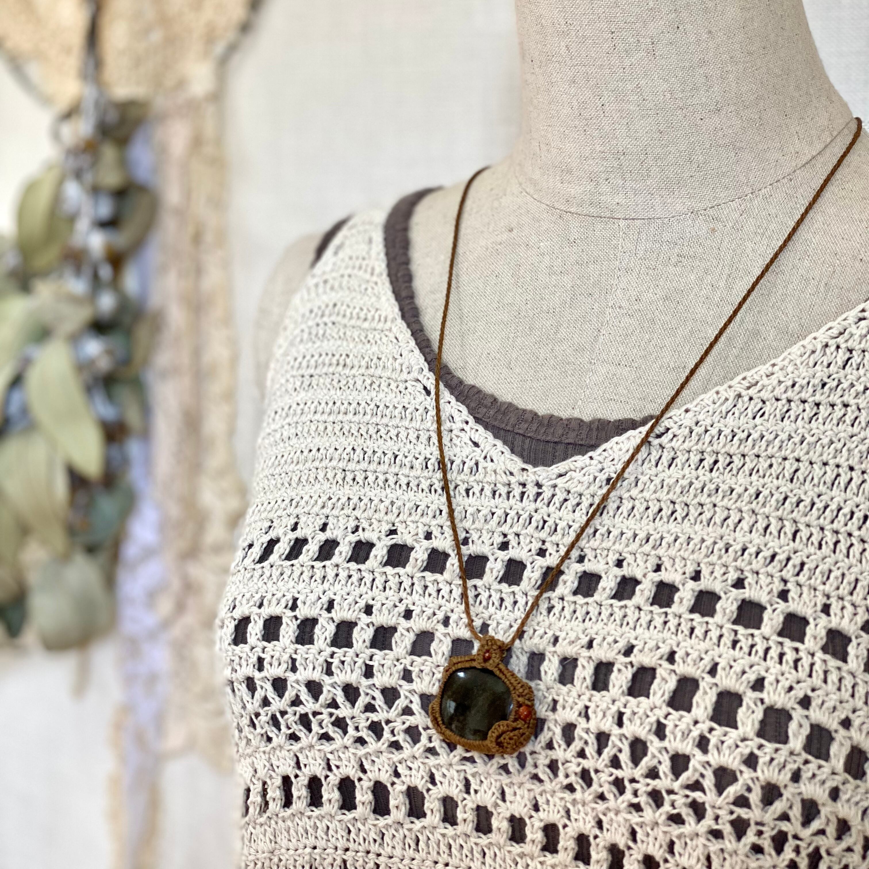 volcano☆ゴールデンオブシディアン 天然石マクラメネックレス