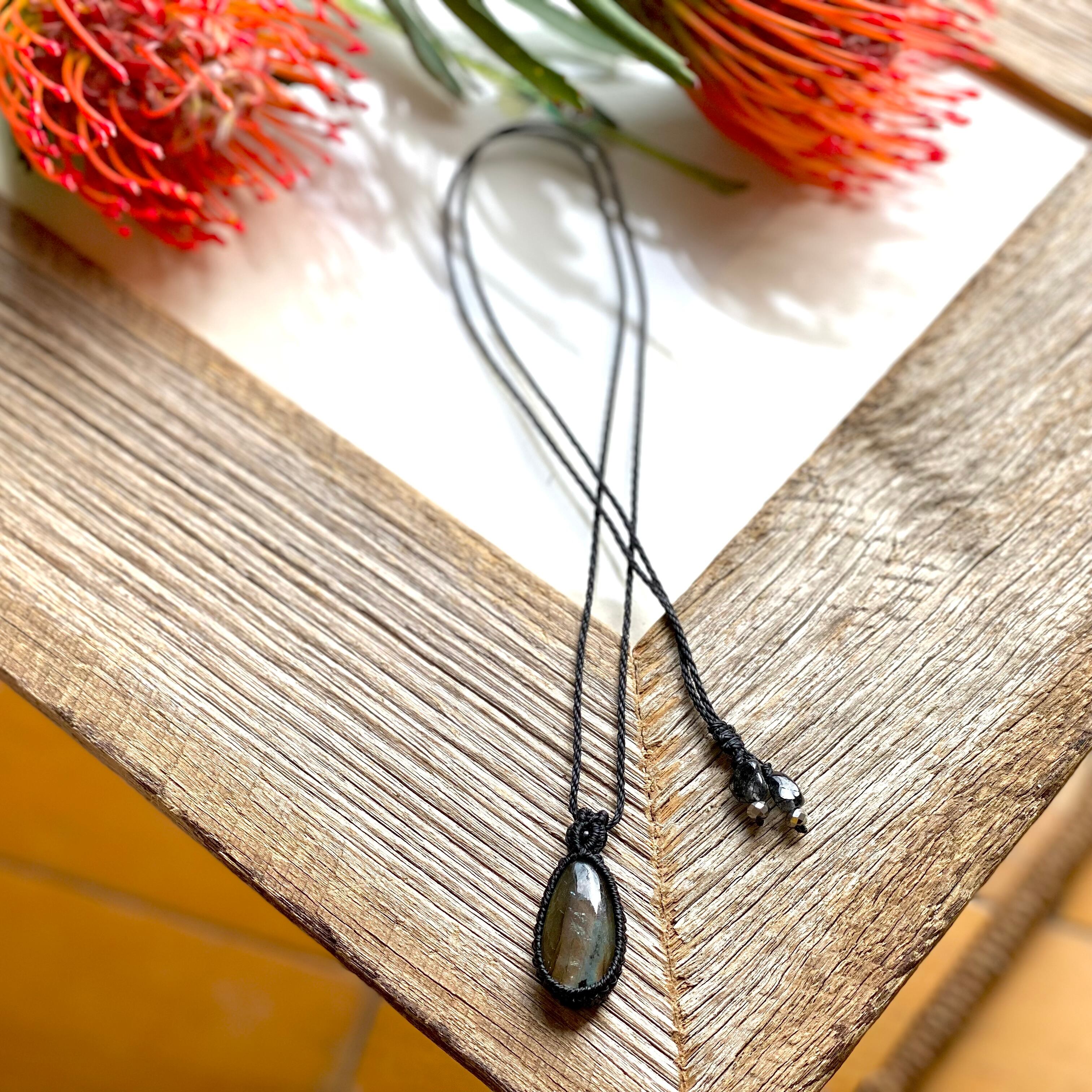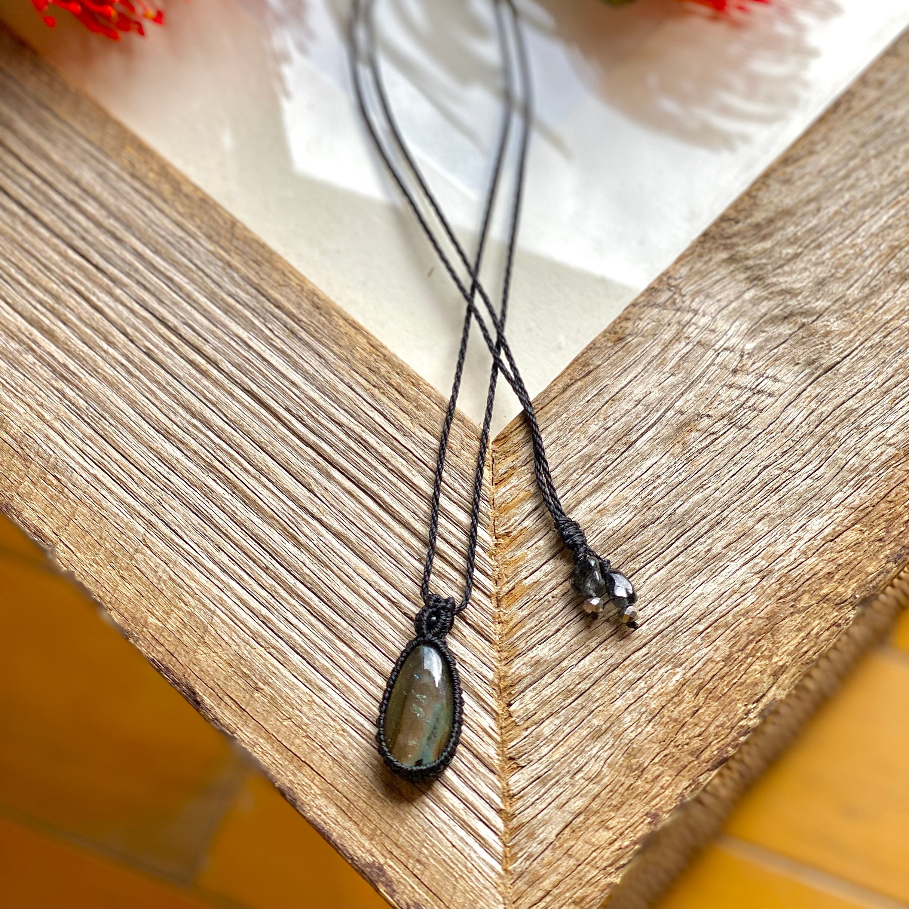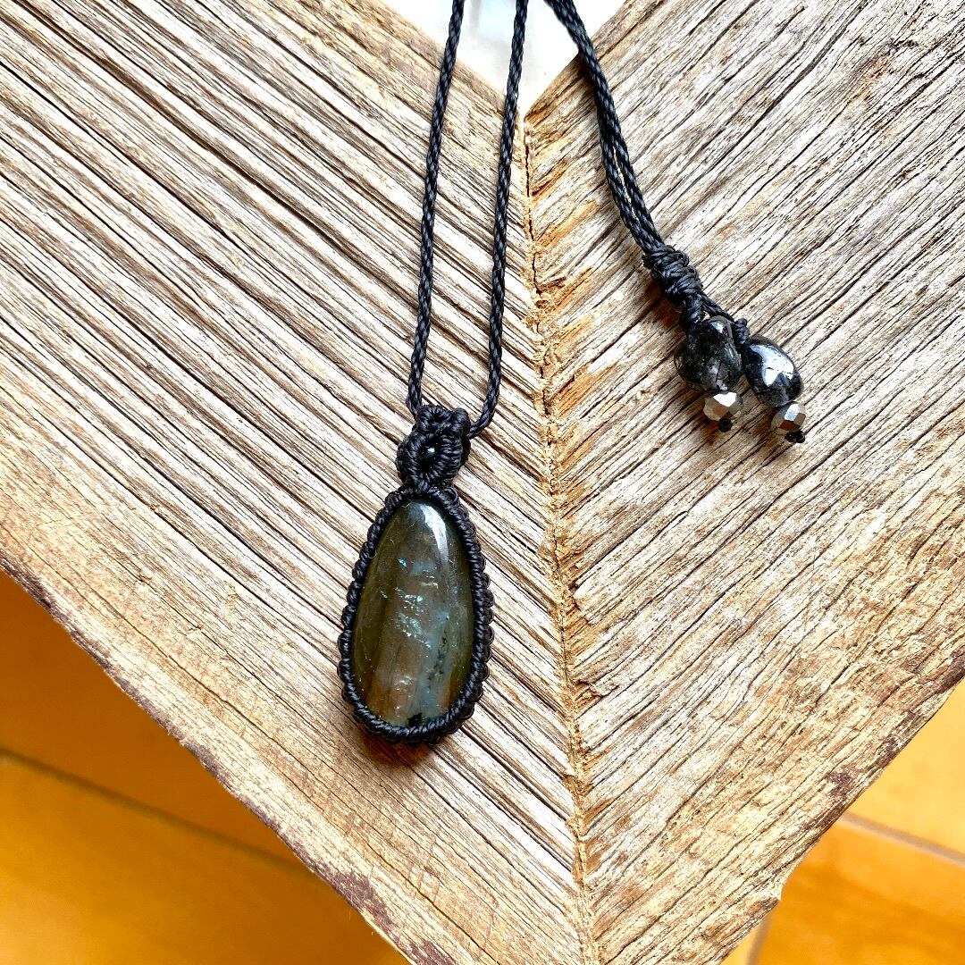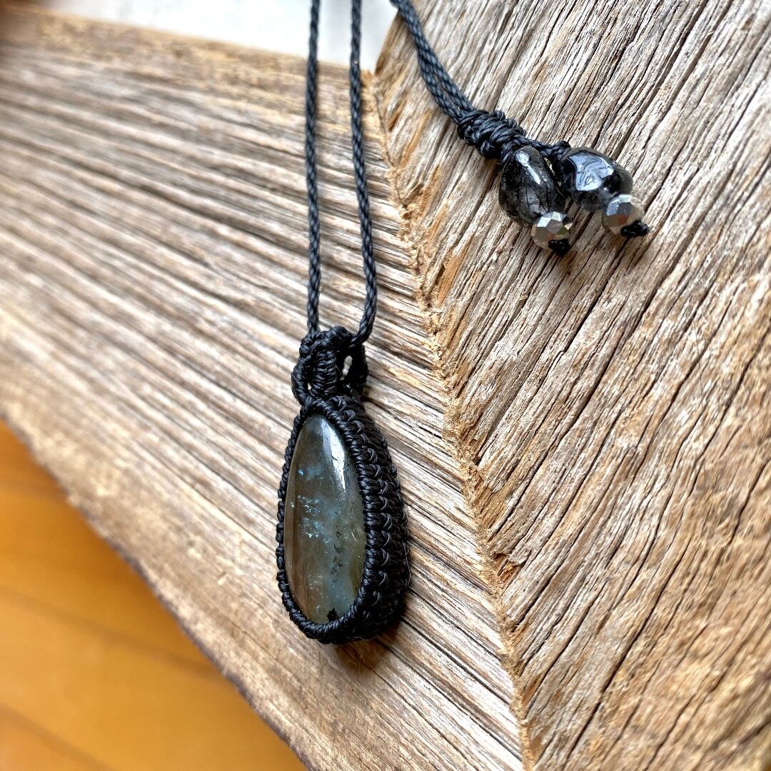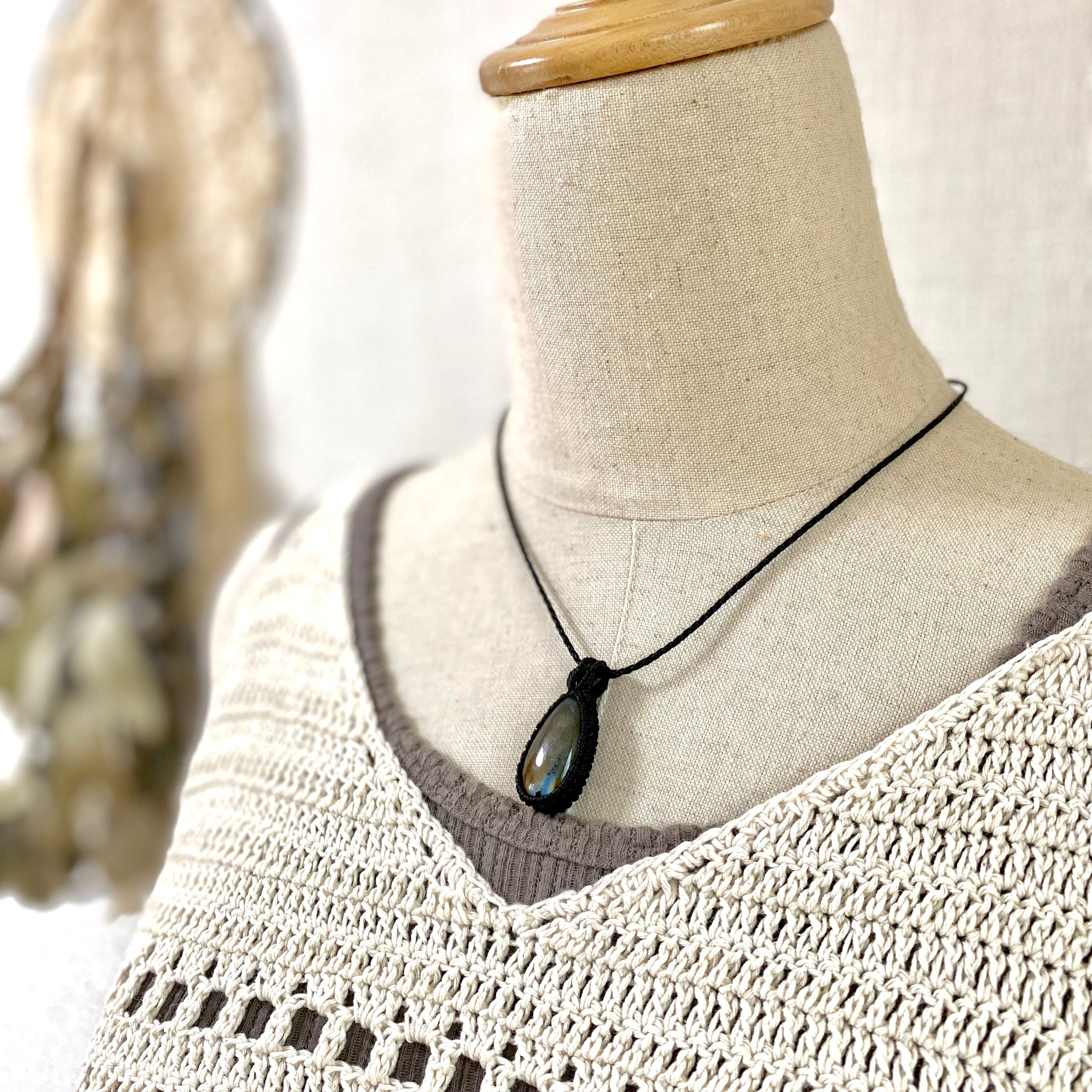 spiritual☆ラブラドライト 天然石マクラメネックレス/お守りジュエリー