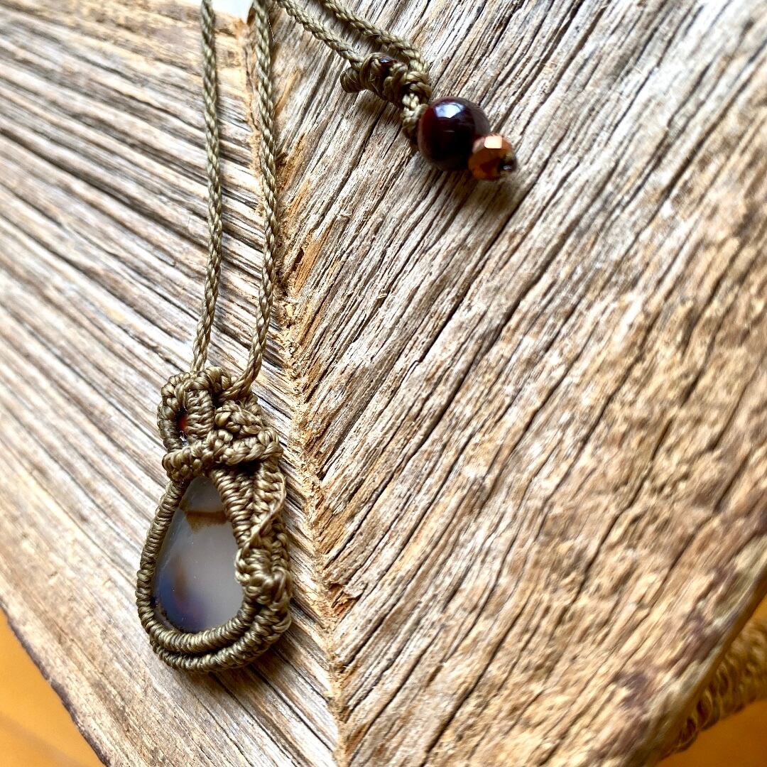art☆モンタナアゲート 天然石マクラメネックレス 日々のお守りジュエリー