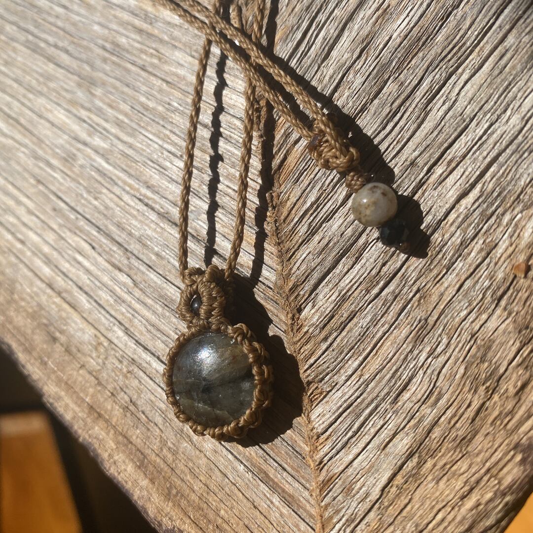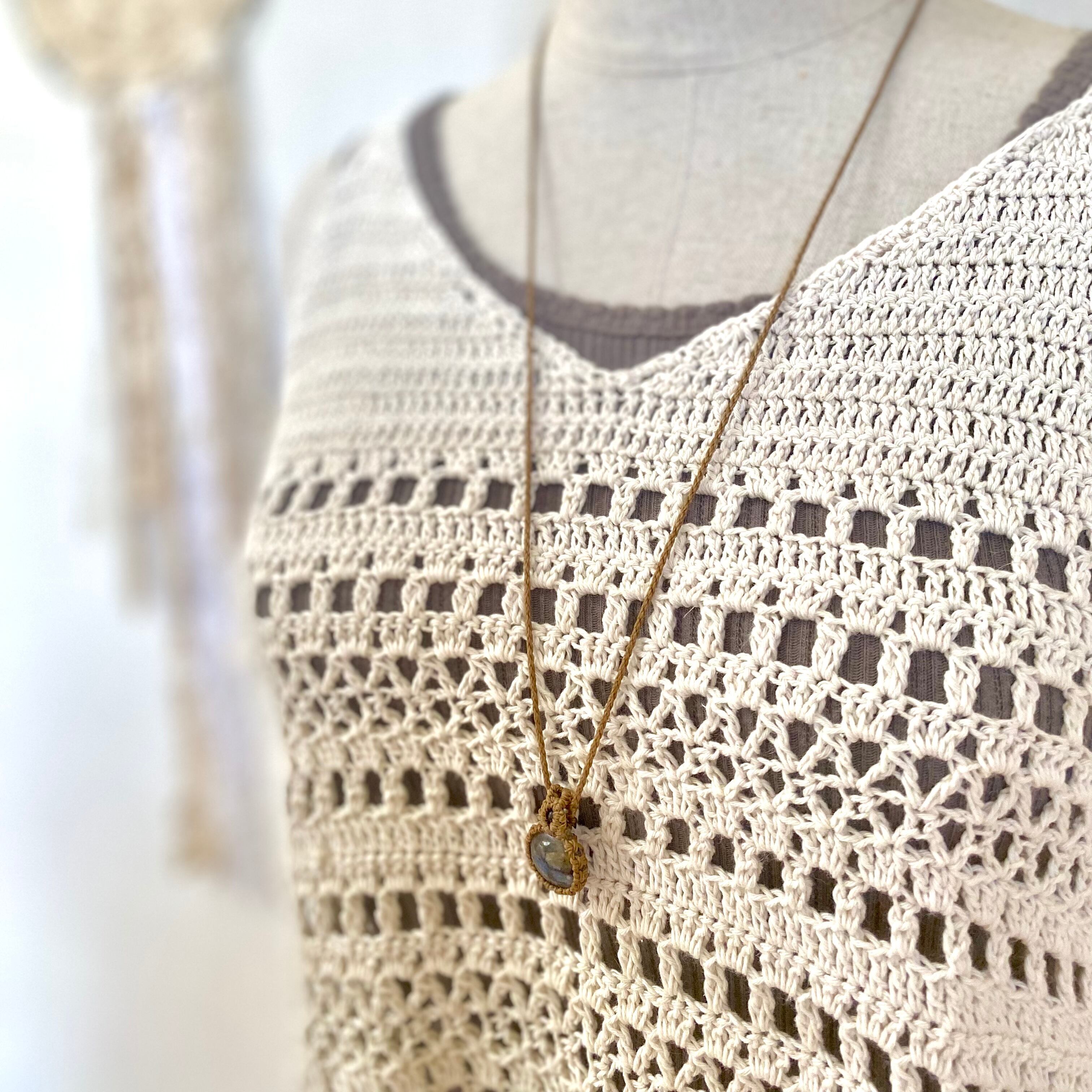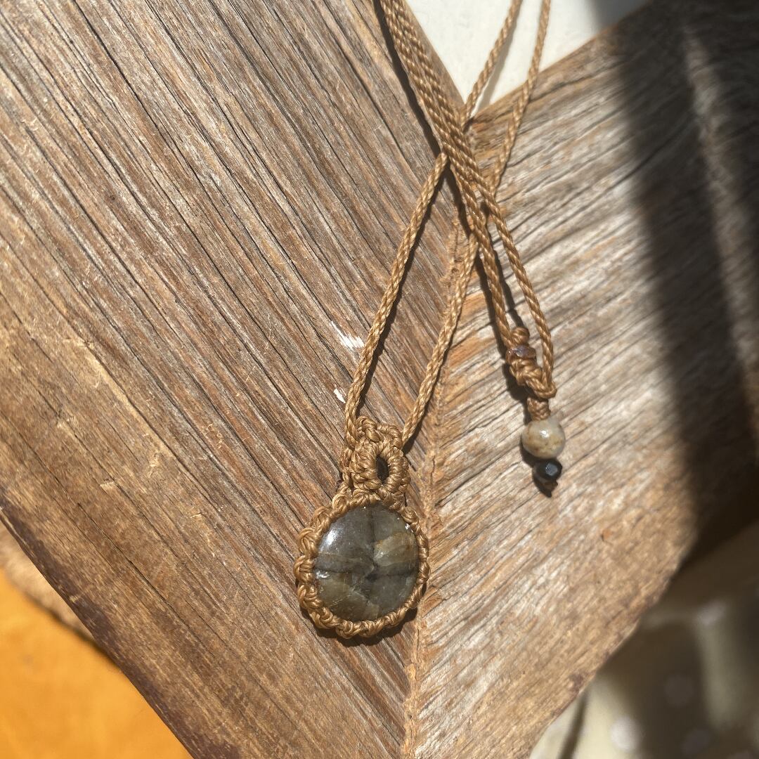 Relux☆ペトリファイドウッド 天然石マクラメネックレス/日々のお守りアクセサリー