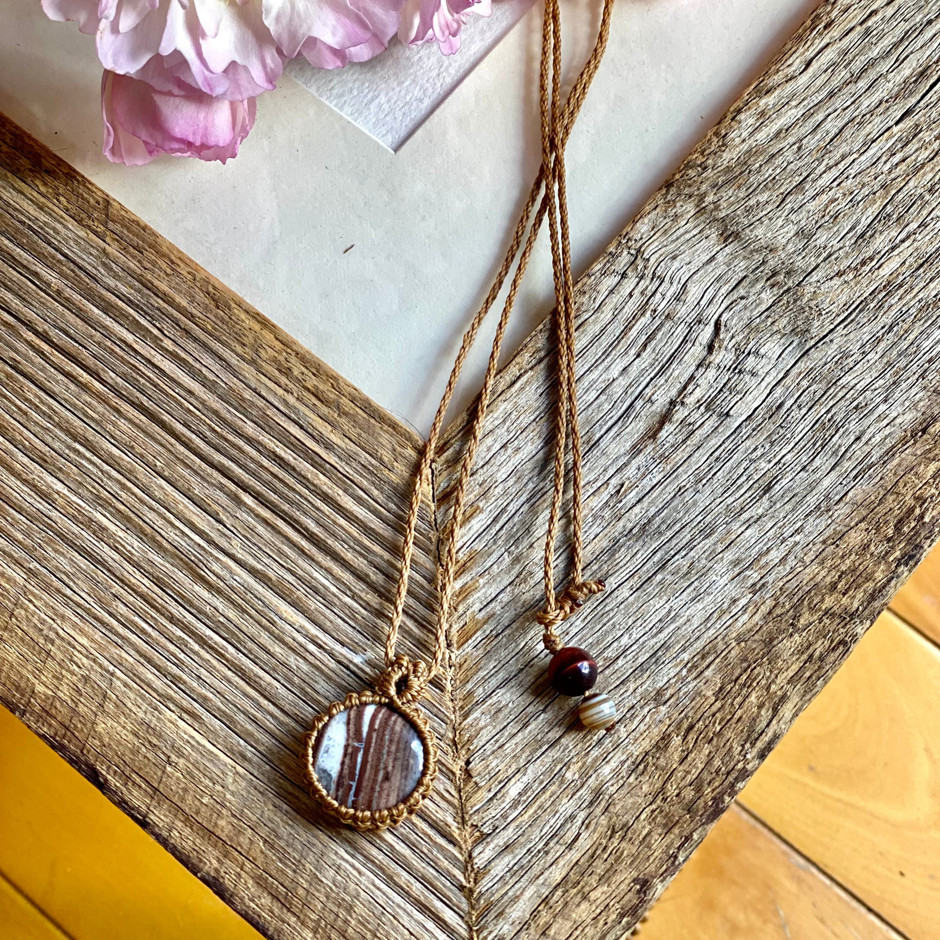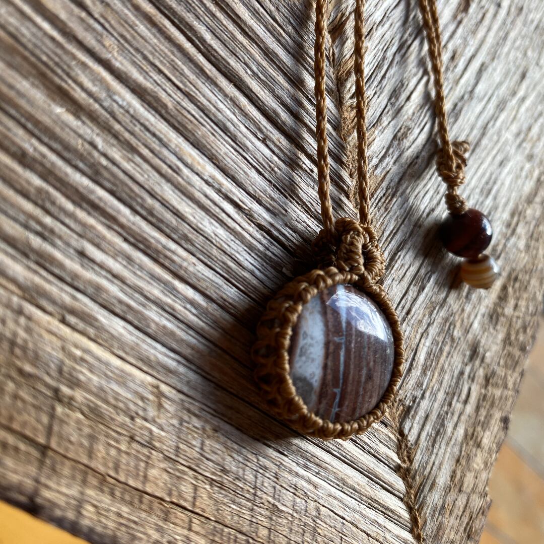 大地☆ゼブラジャスパー 天然石マクラメネックレス/日々のお守りアクセサリー