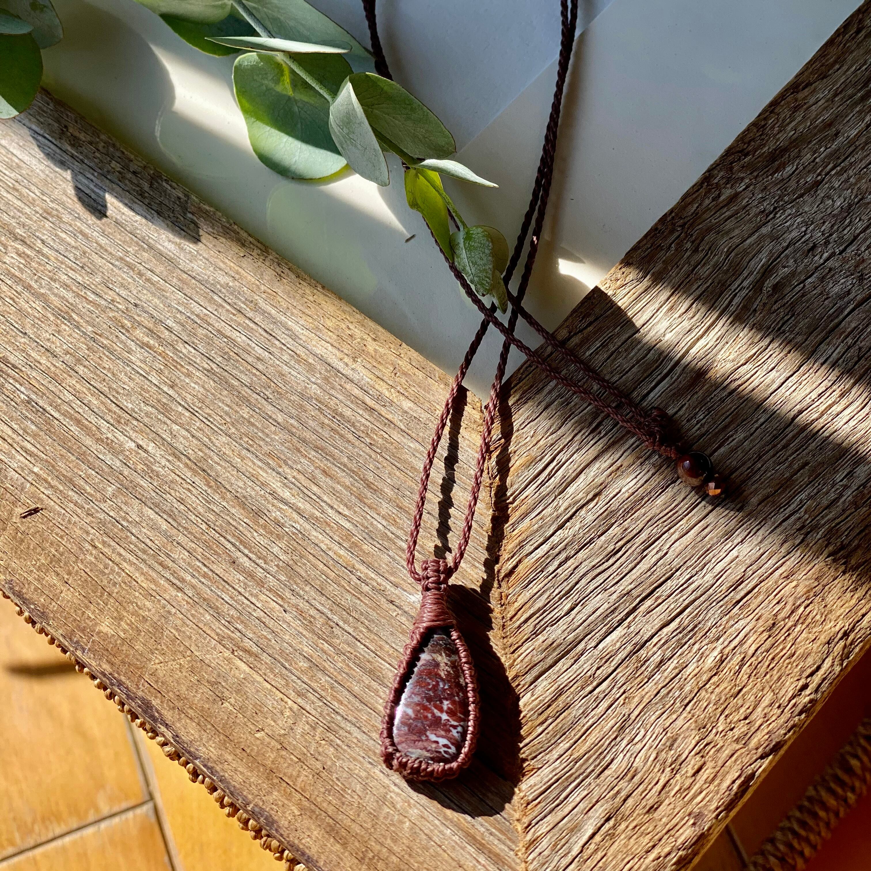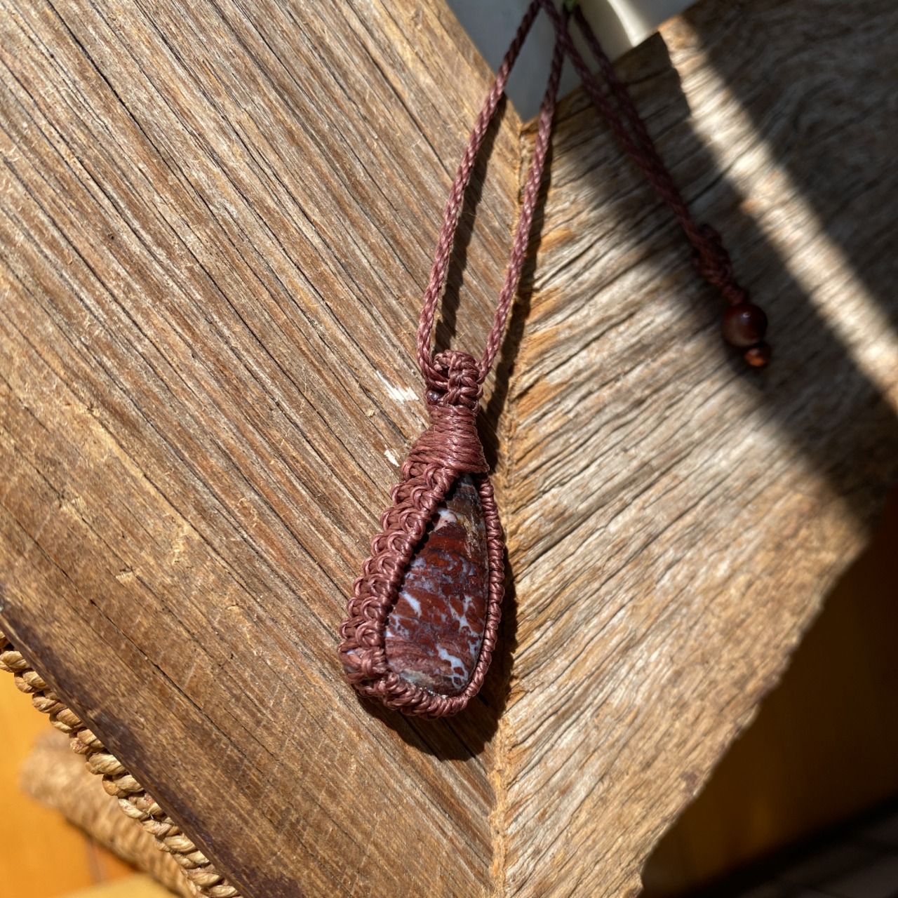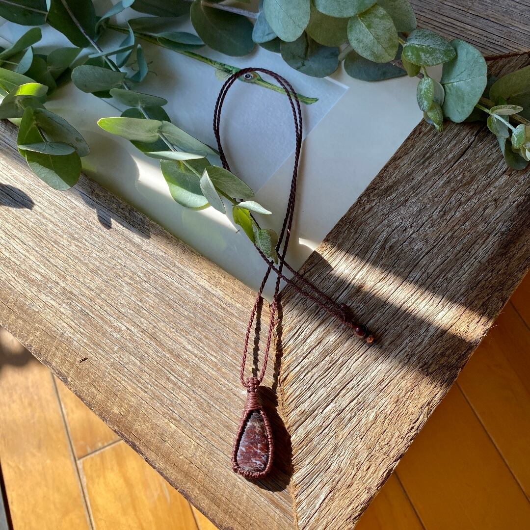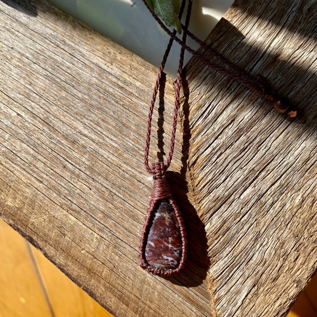 パワフル☆レッドシームアゲート 天然石マクラメネックレス/日々のお守りアクセサリー