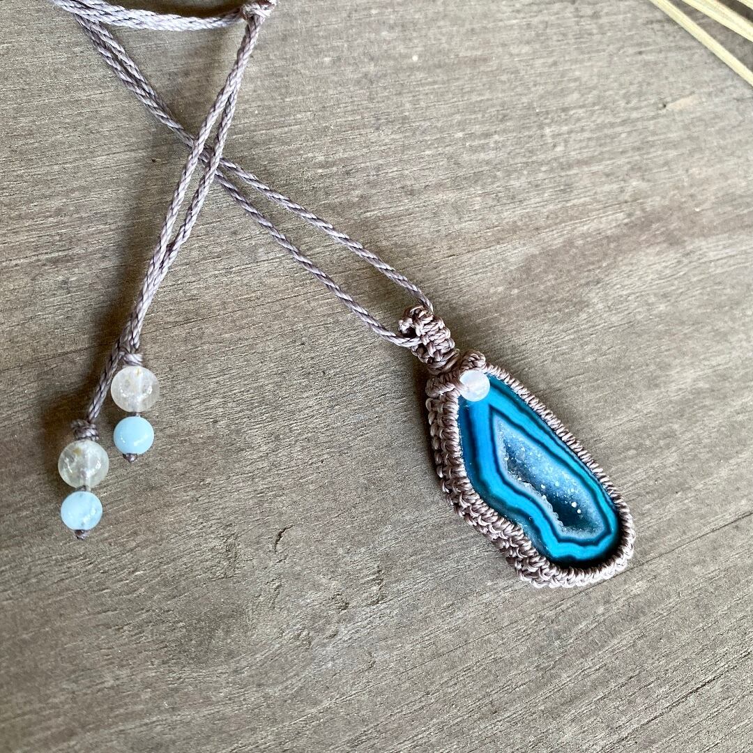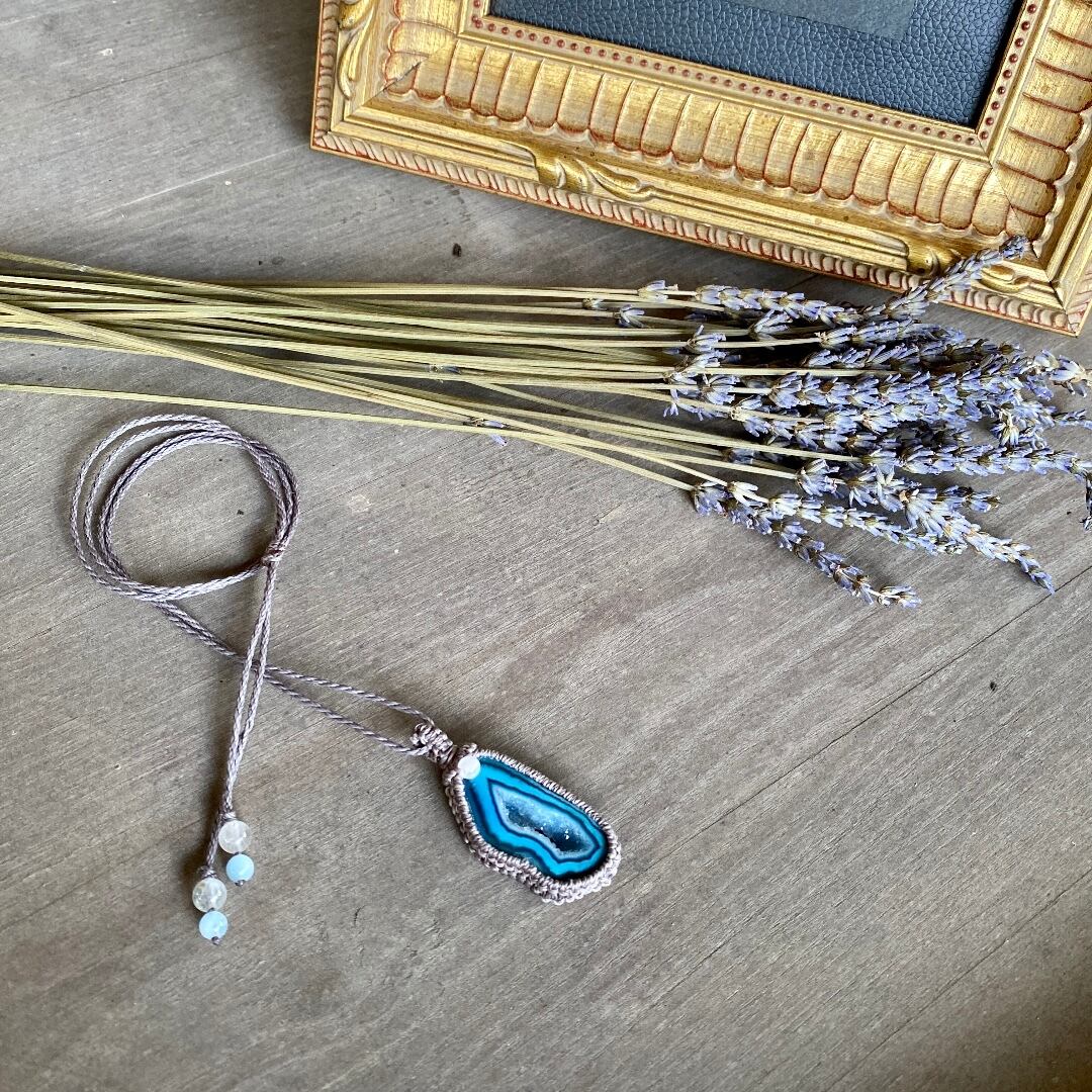 蒼の洞窟☆ドゥルージーアゲート 天然石マクラメネックレス