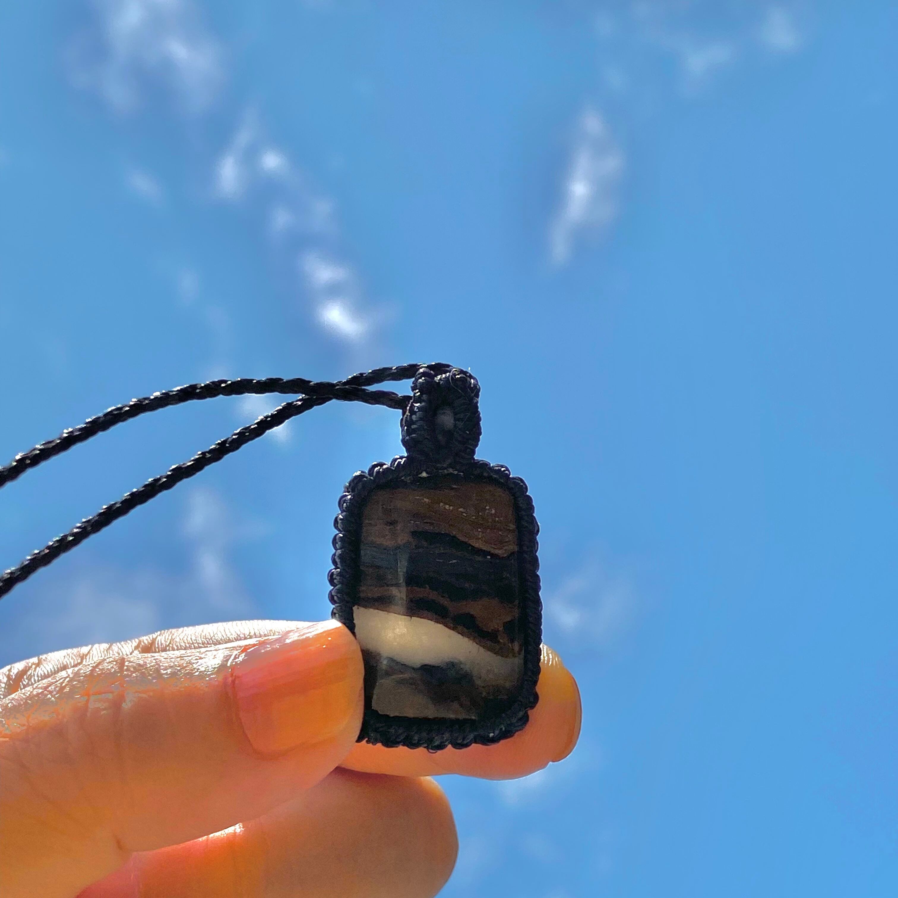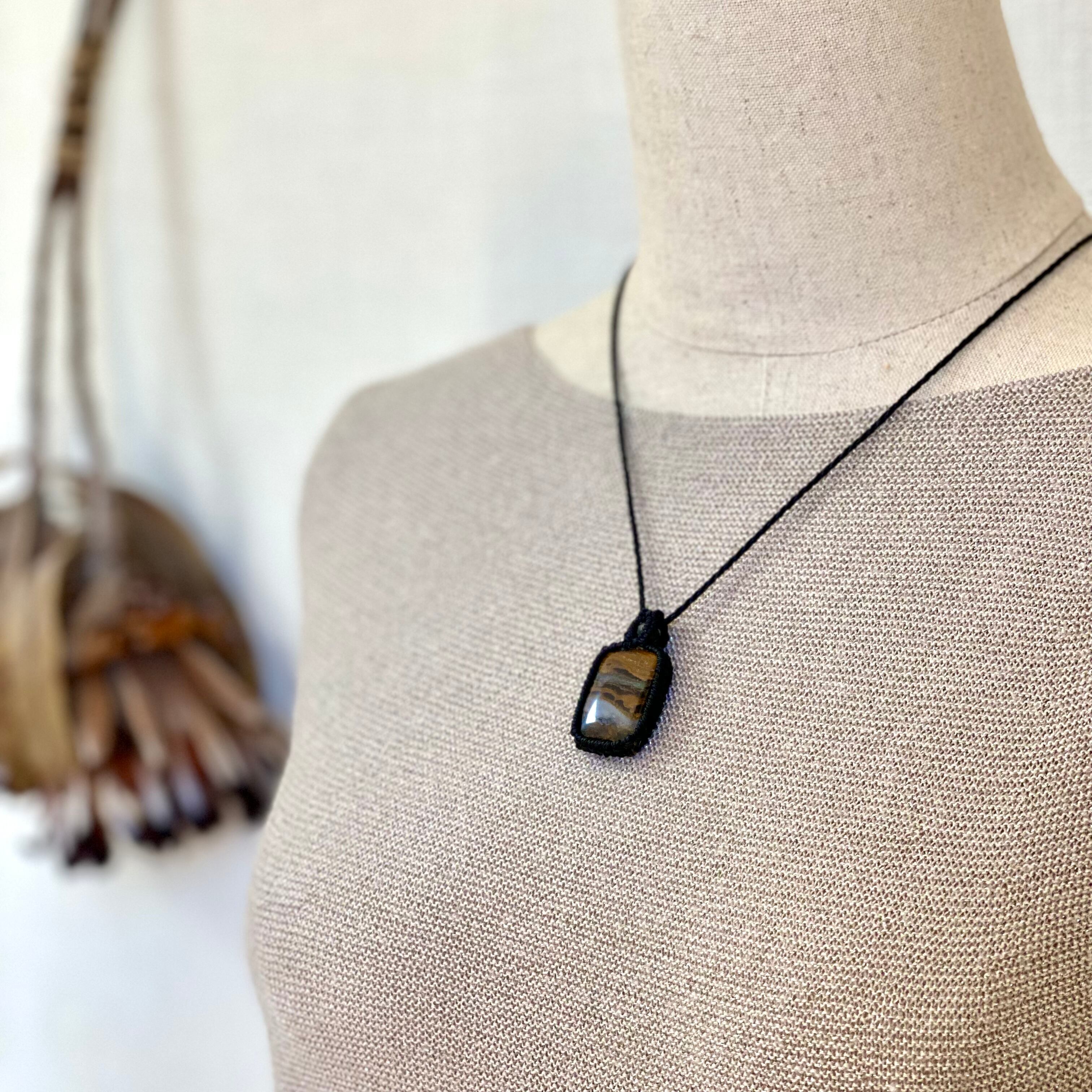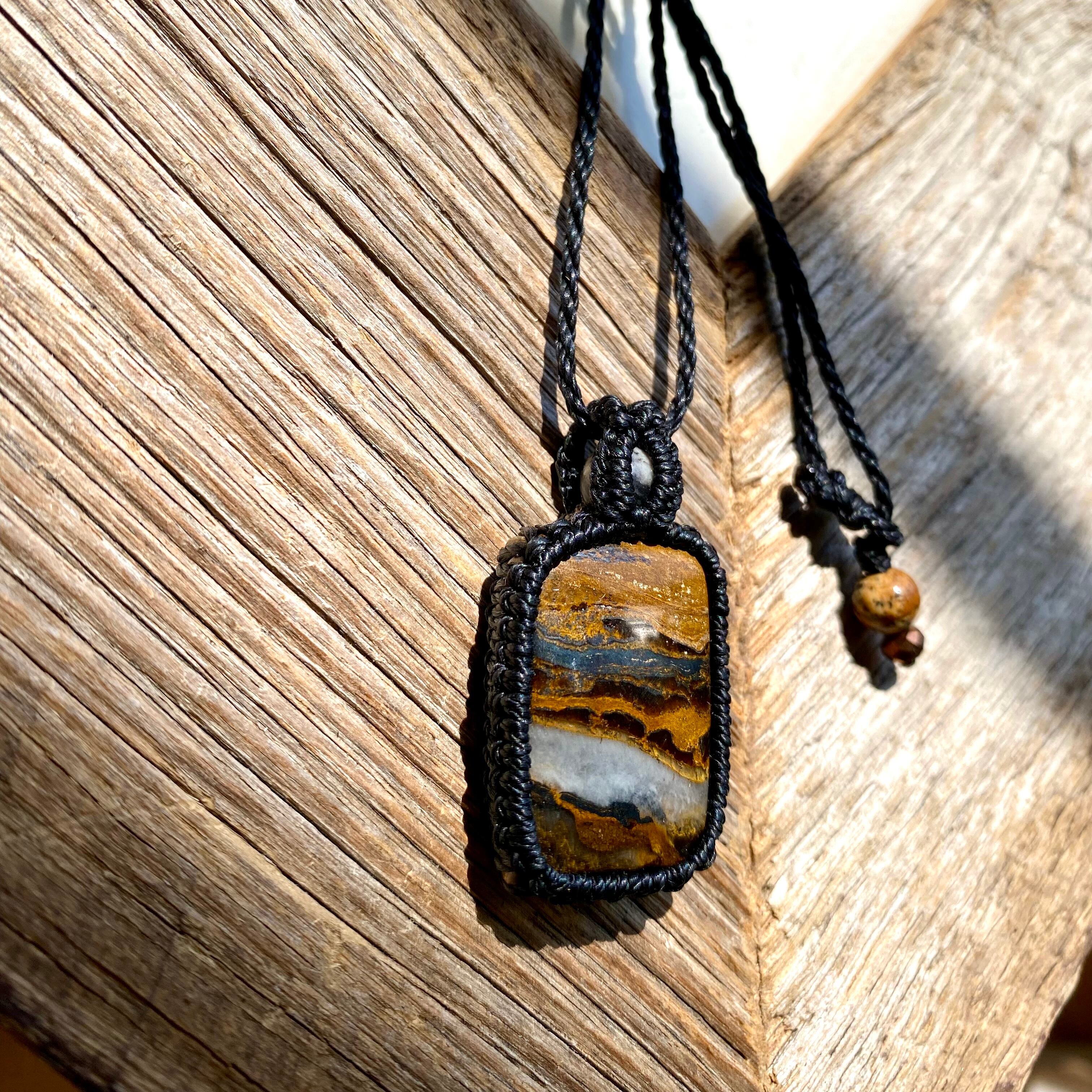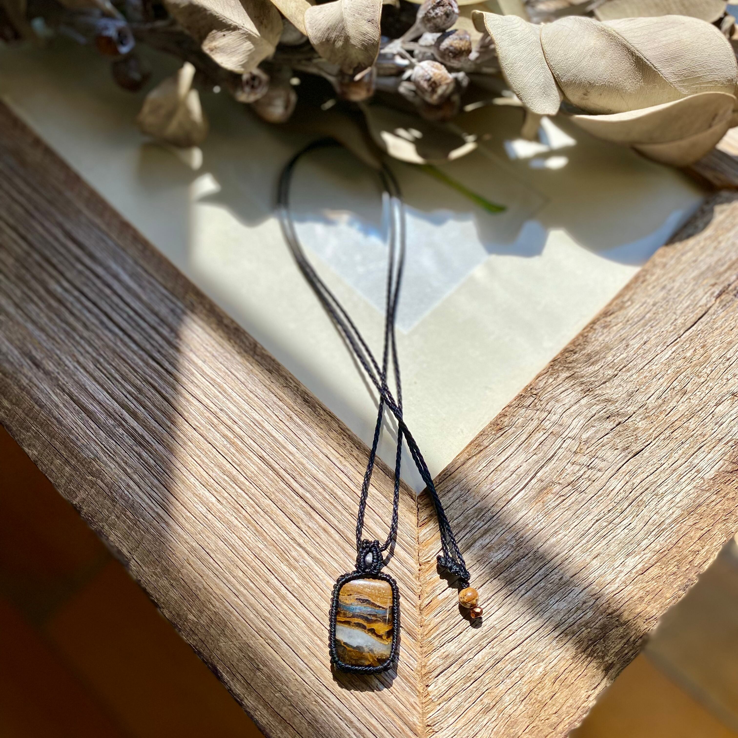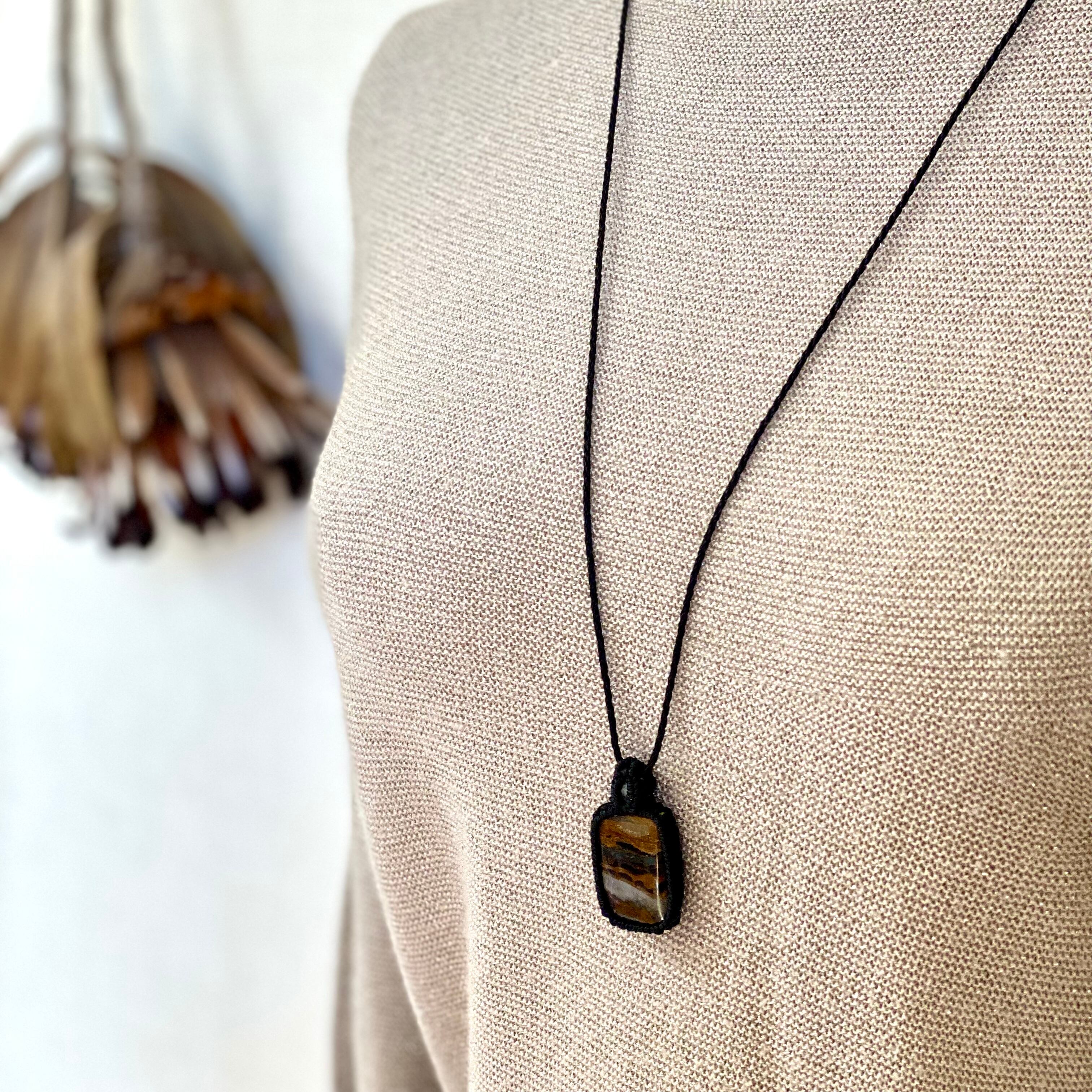 Wild☆アイアンタイガーアイ 天然石マクラメネックレス/日々のお守りアクセサリ