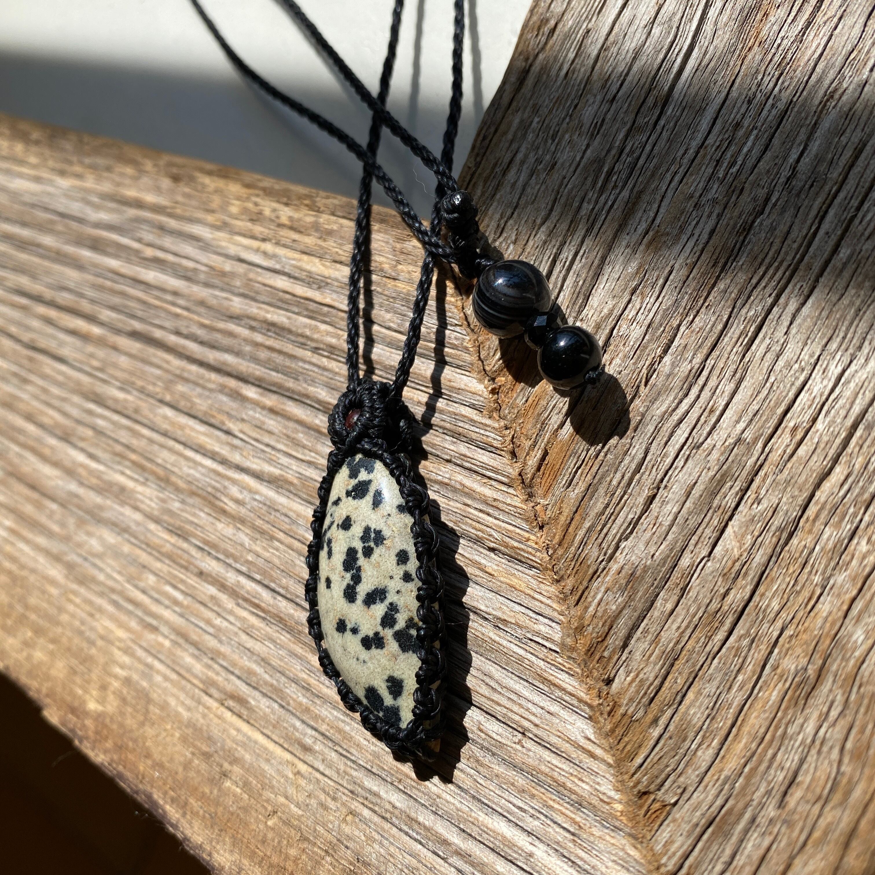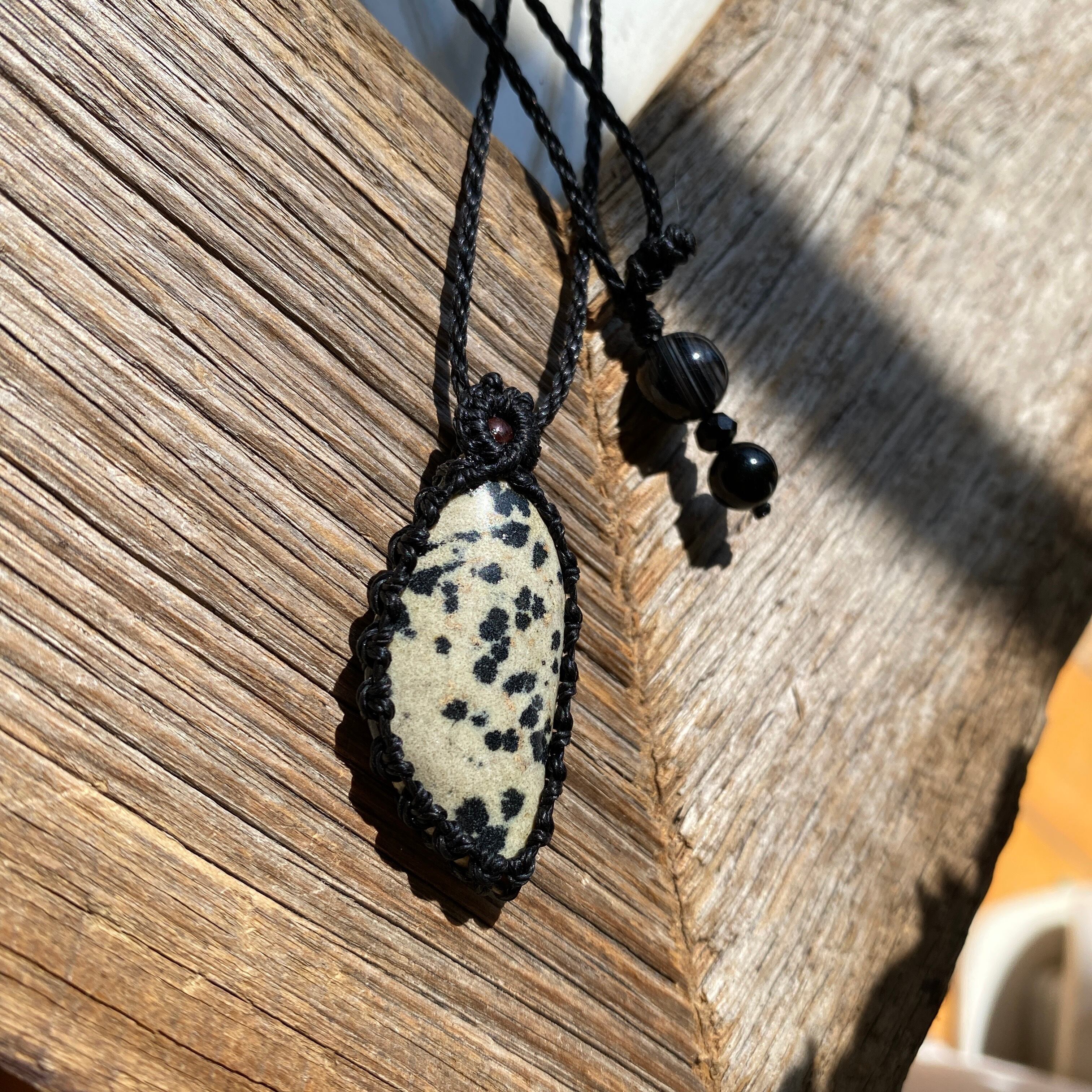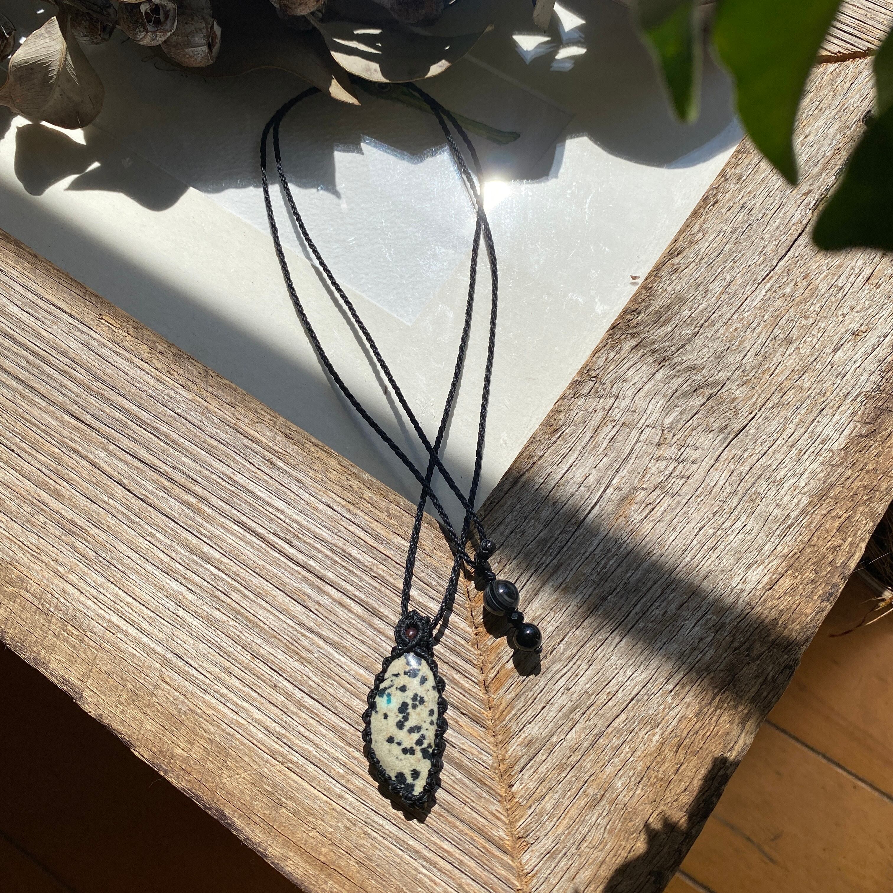 内観☆ダルメシアンジャスパー 天然石マクラメネックレス/日々のお守りジュエリー