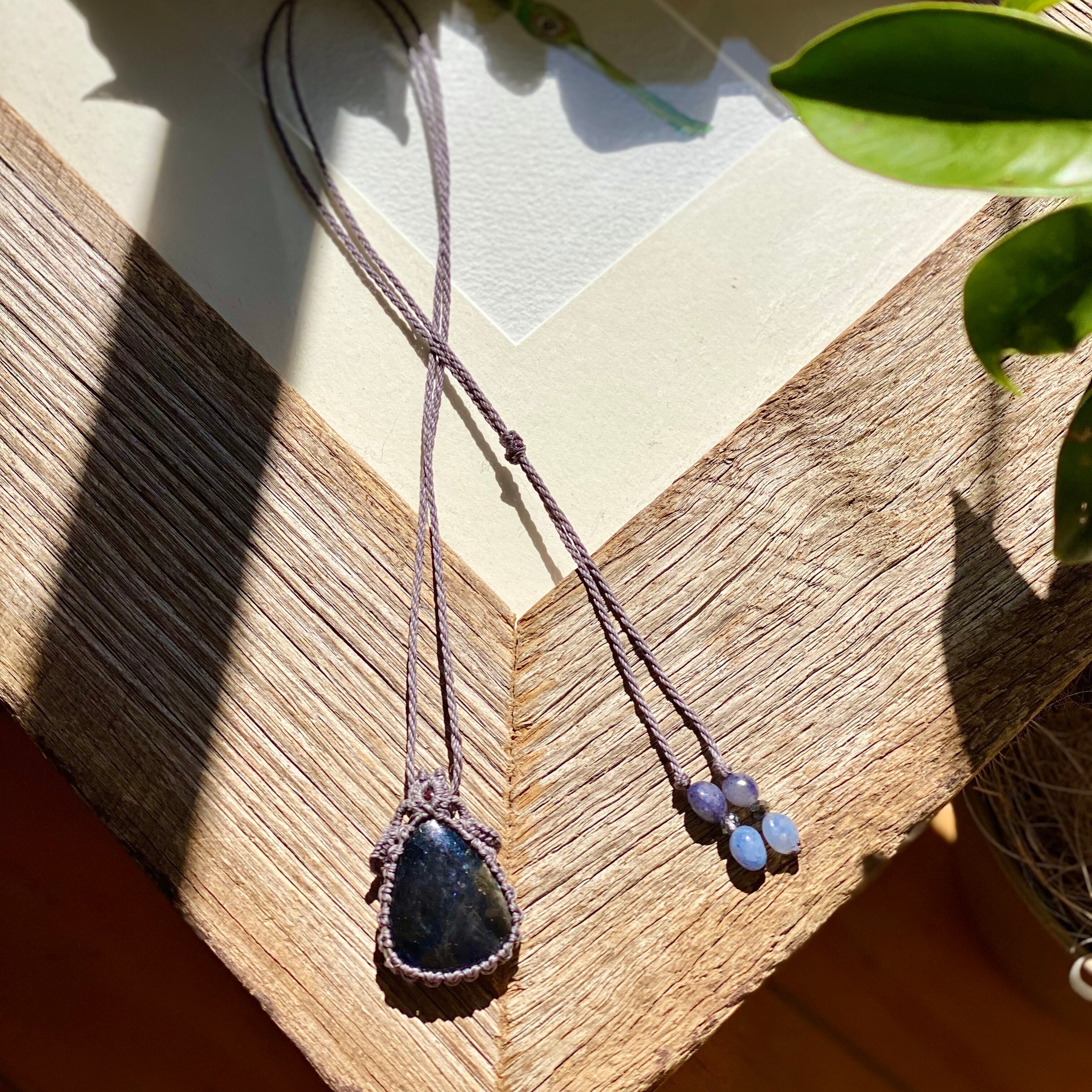 violet☆アイオライト 天然石マクラメネックレス/日々のお守りアクセサリー