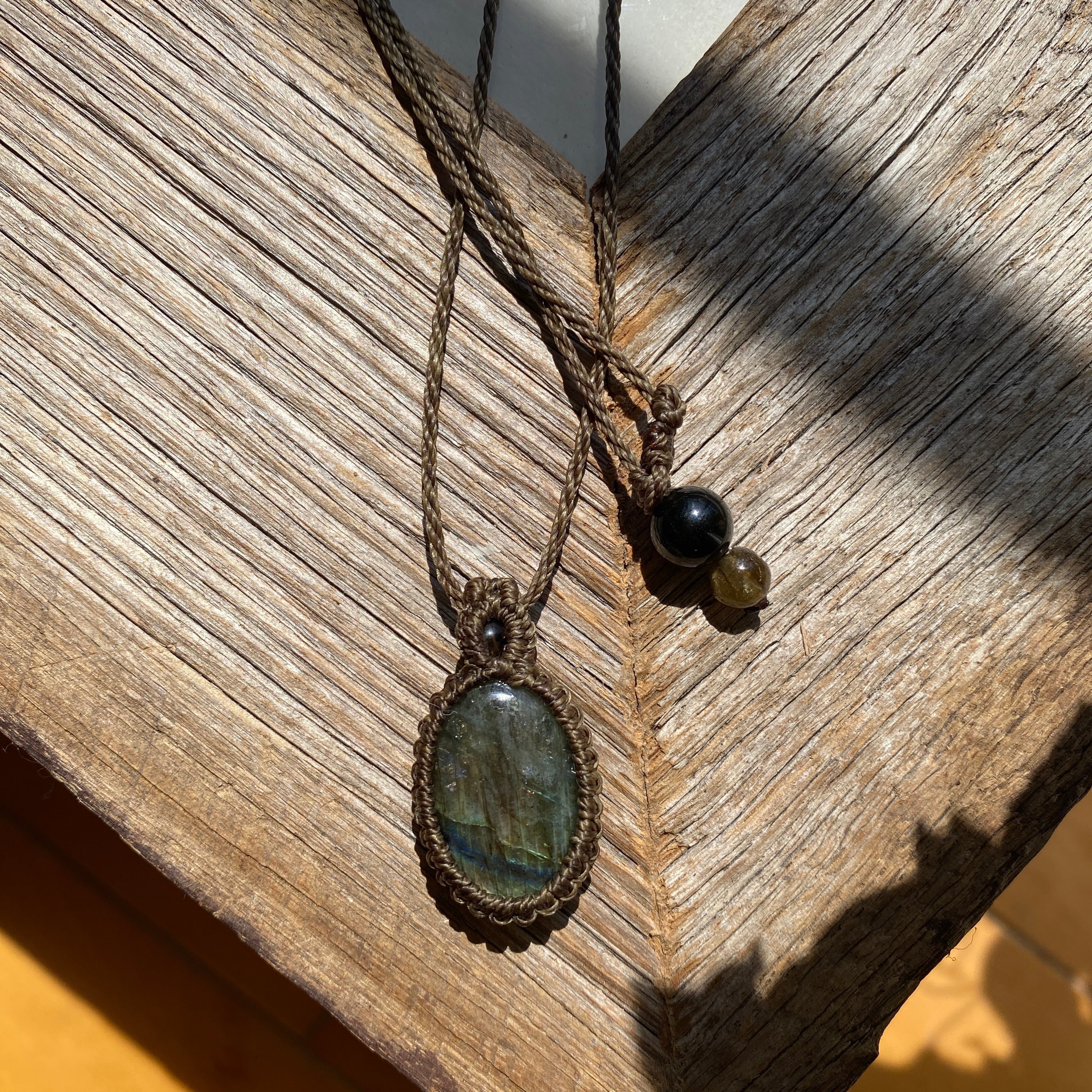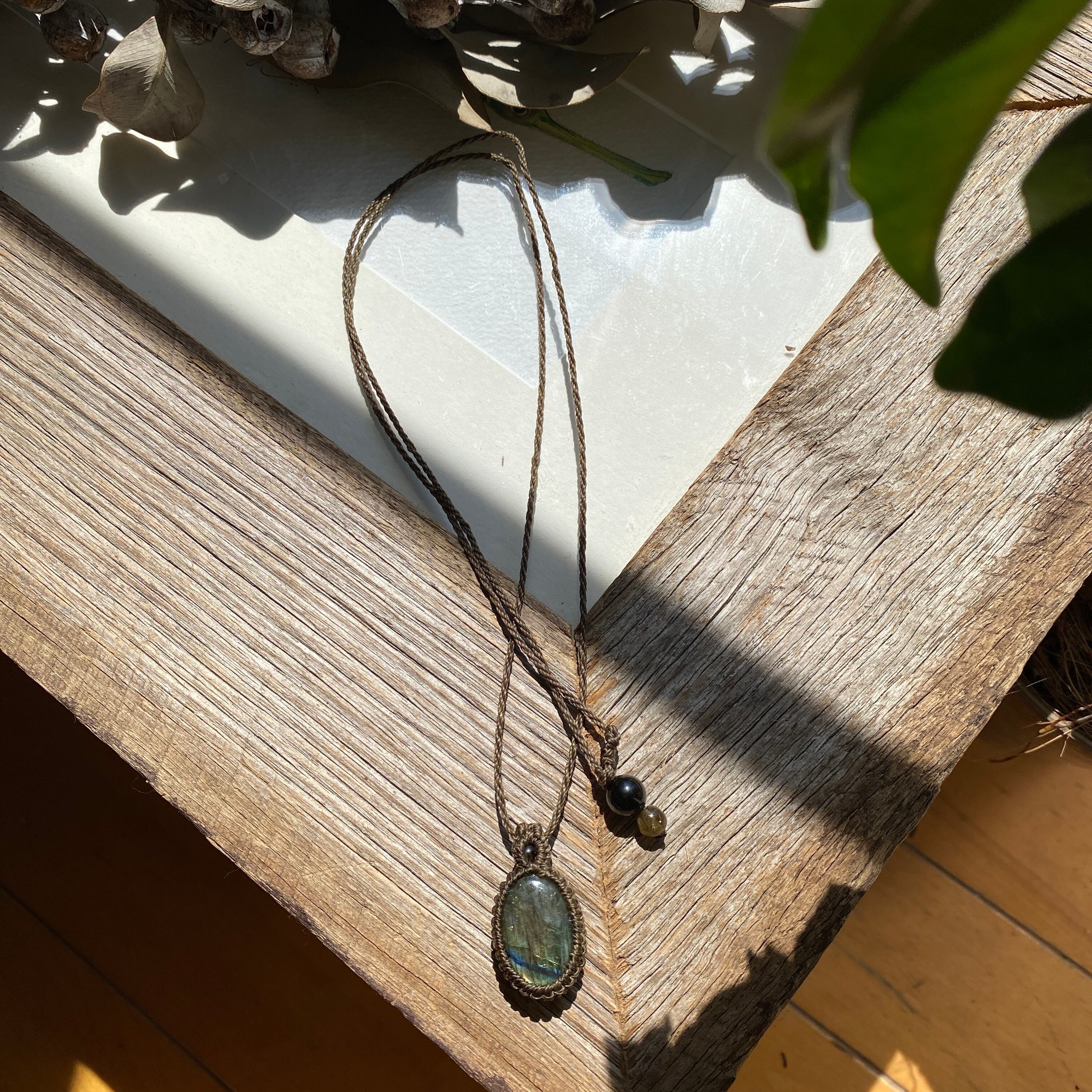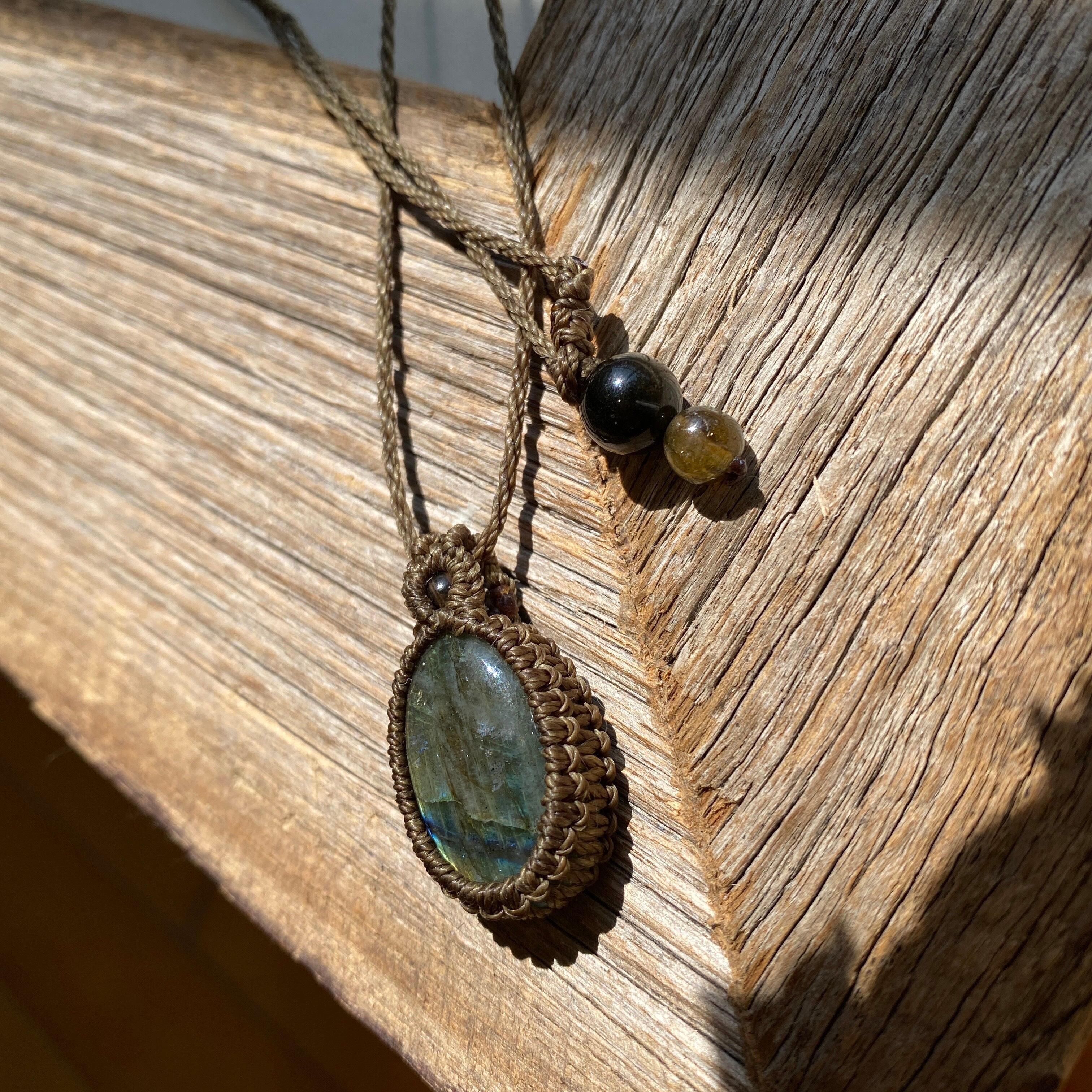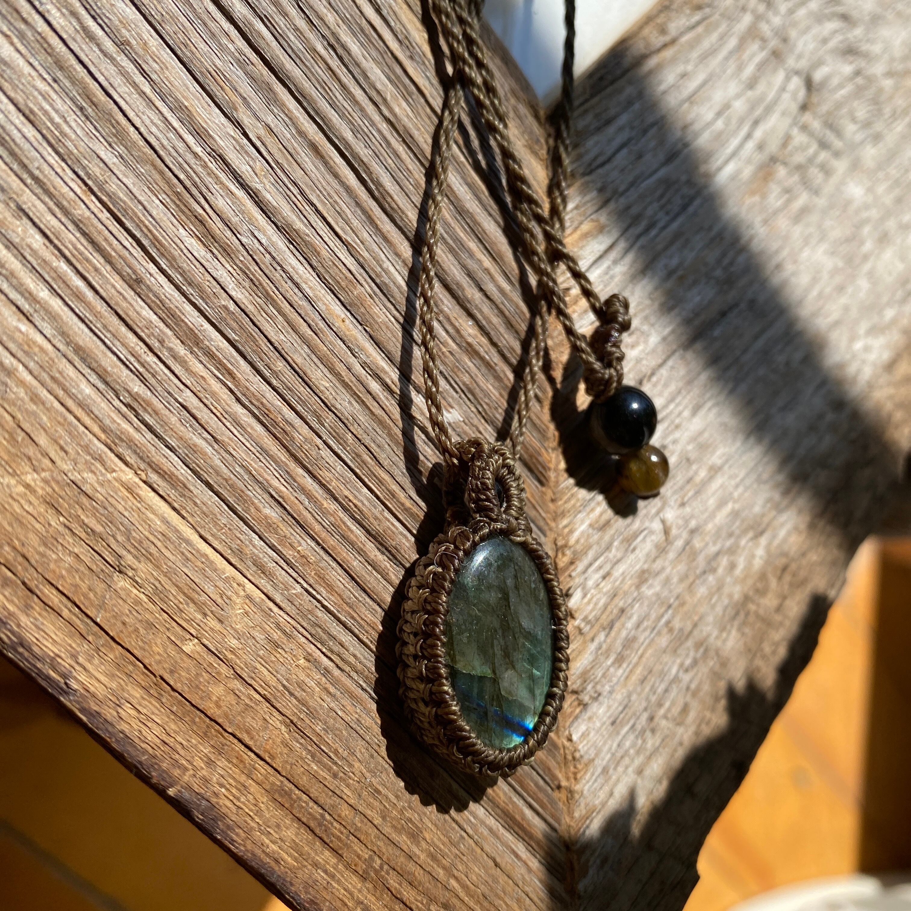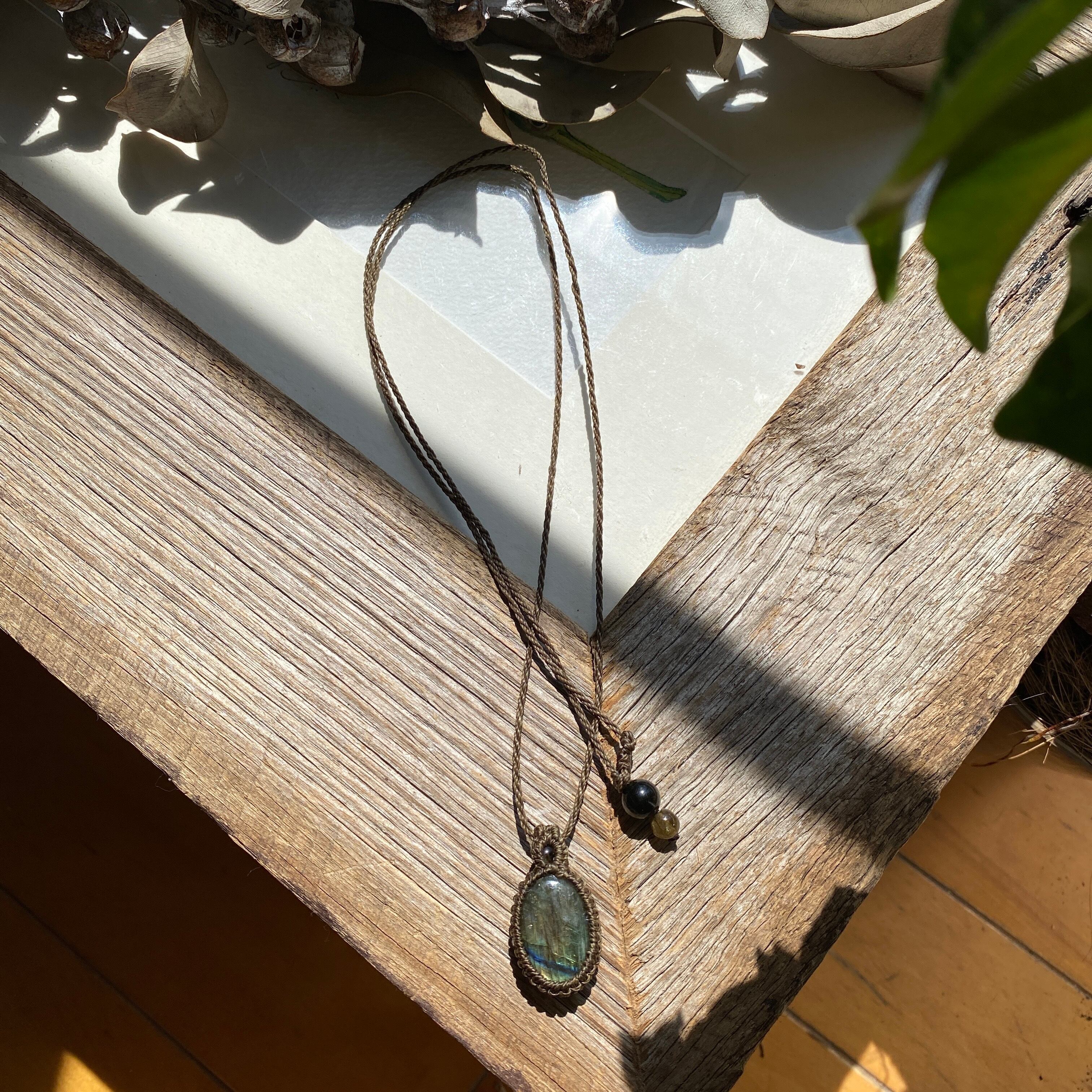spiritual☆ラブラドライト 天然石マクラメネックレス/日々のアクセサリー
