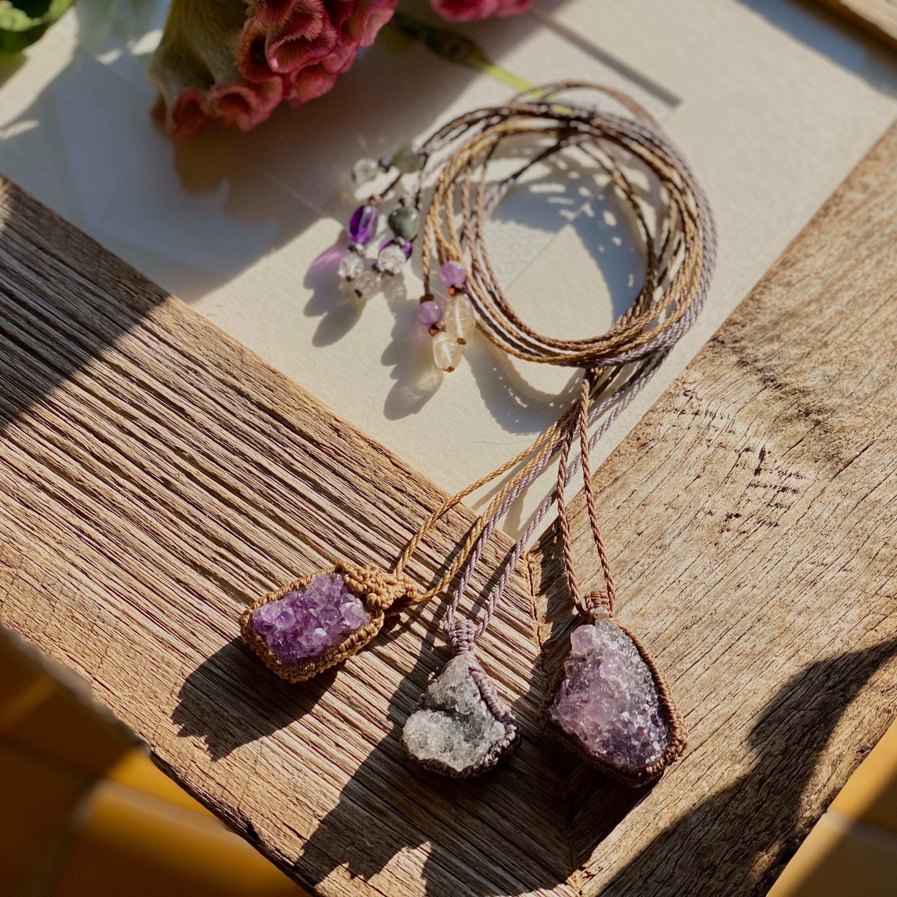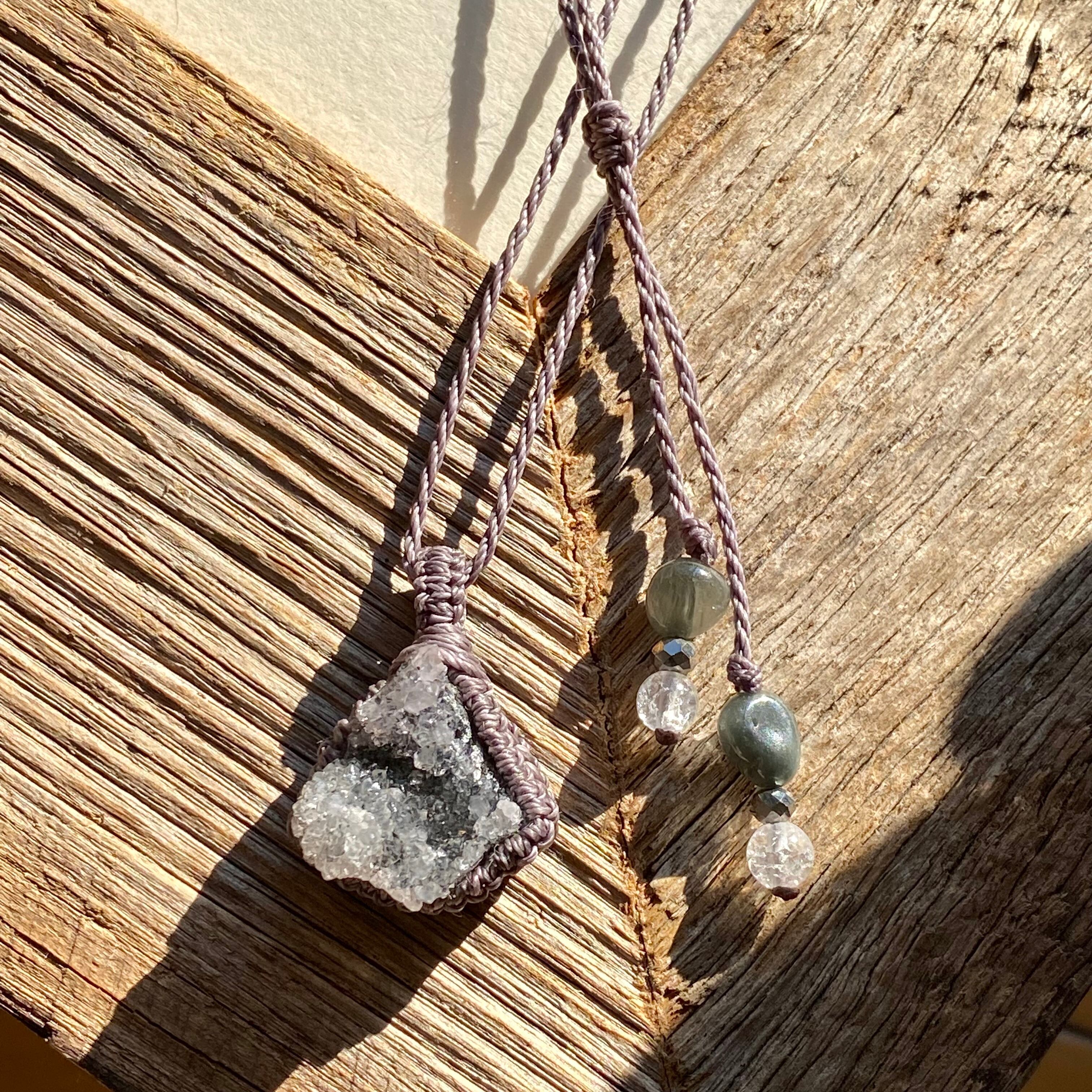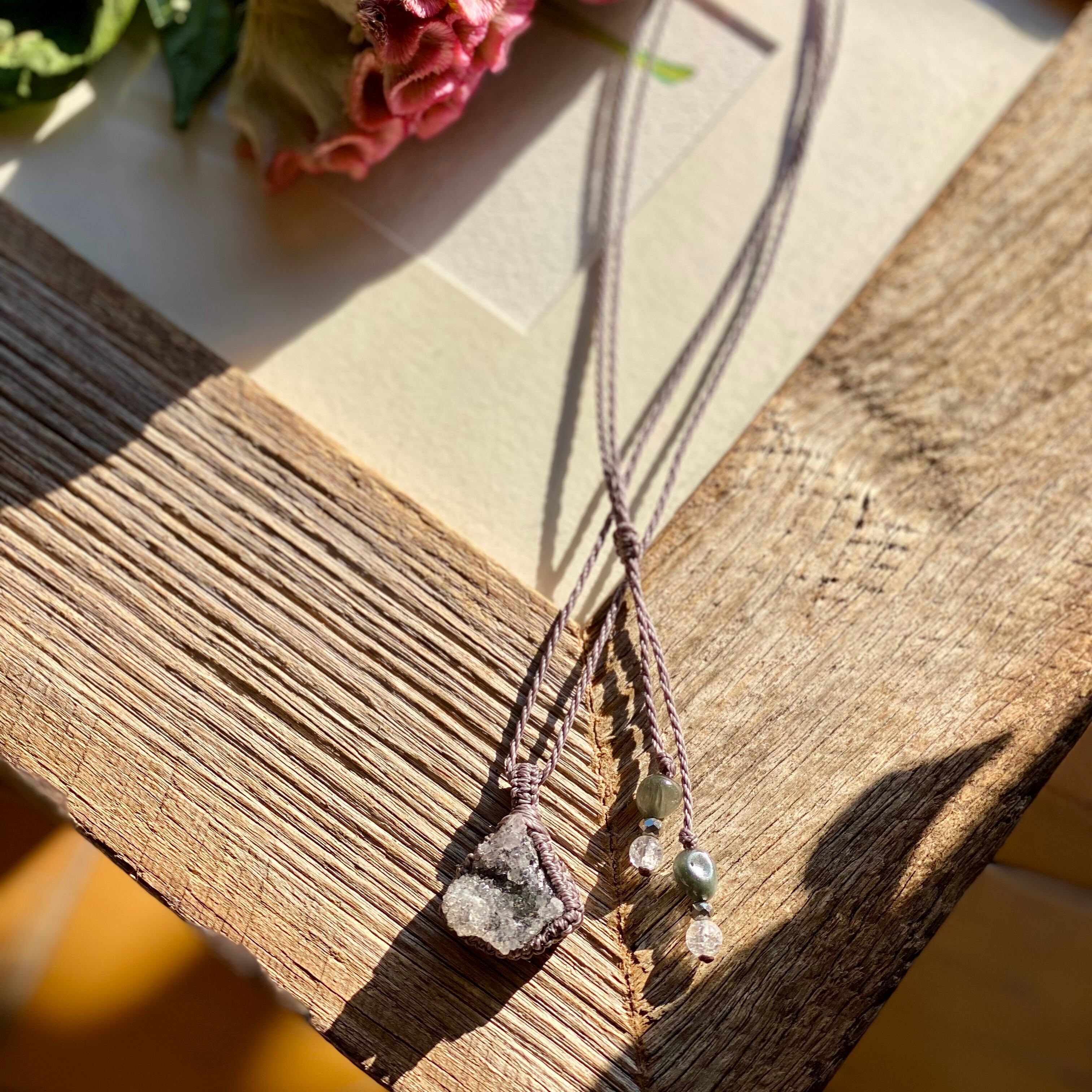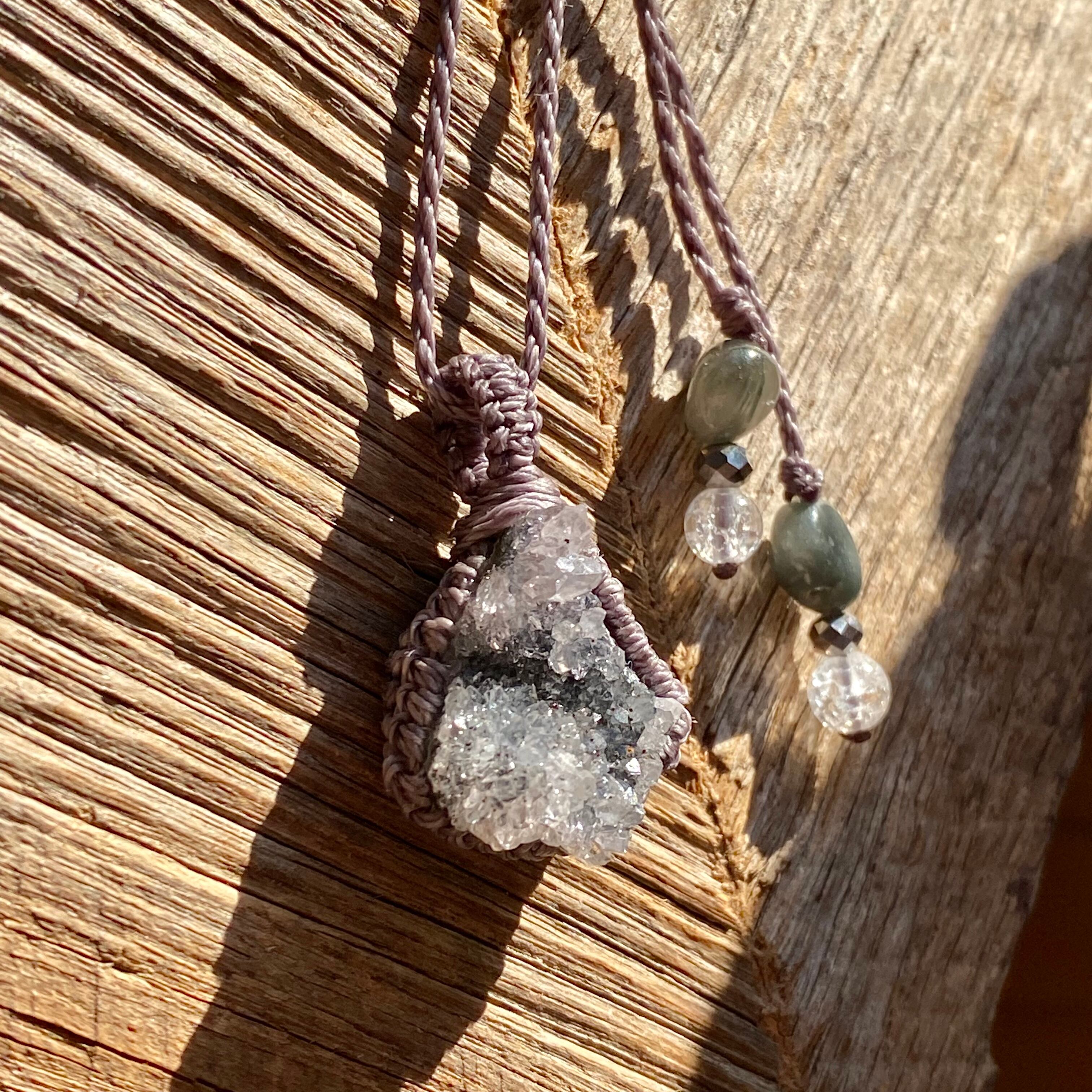 True Love☆アメジストクラスター 天然石マクラメネックレス/日々のお守りアクセサリー