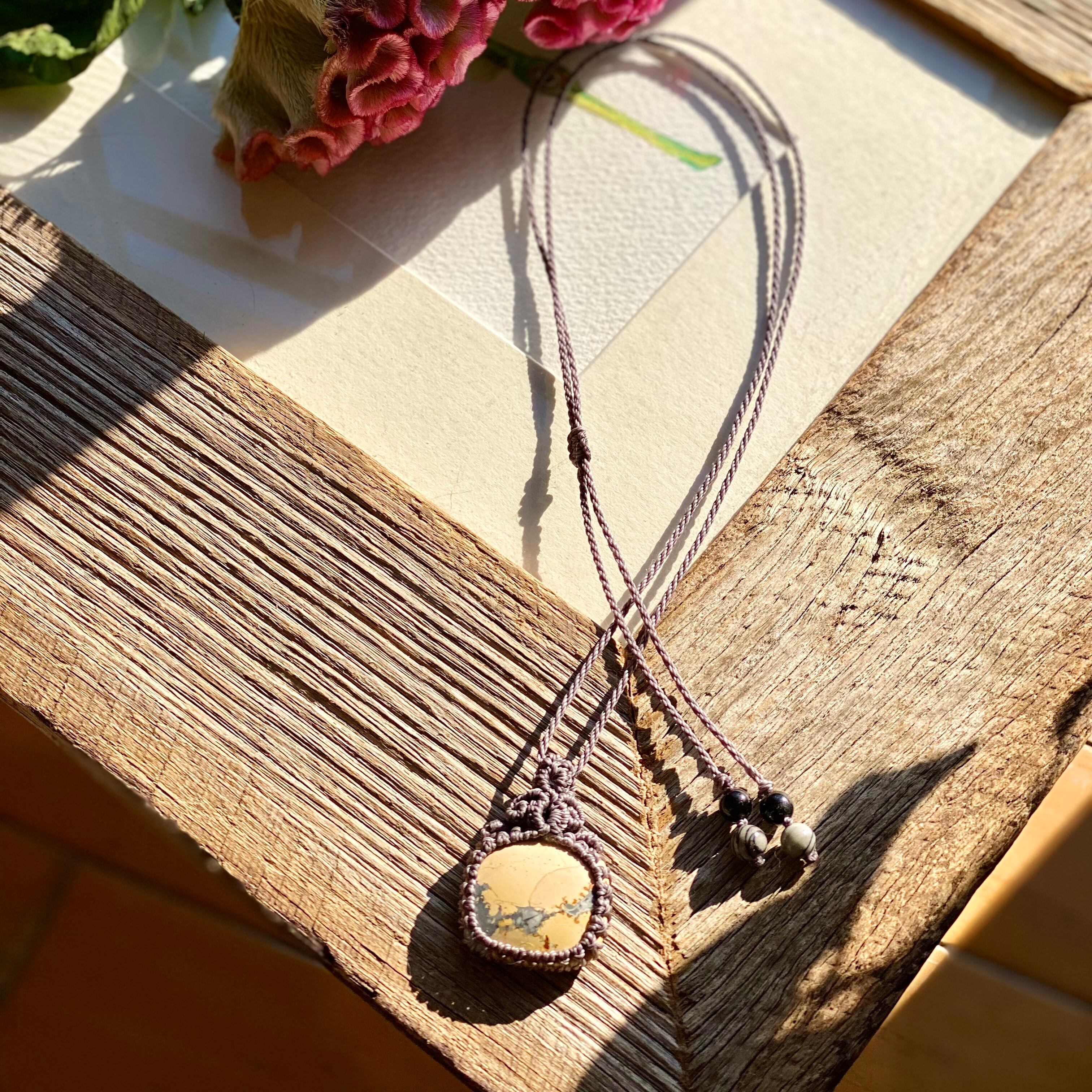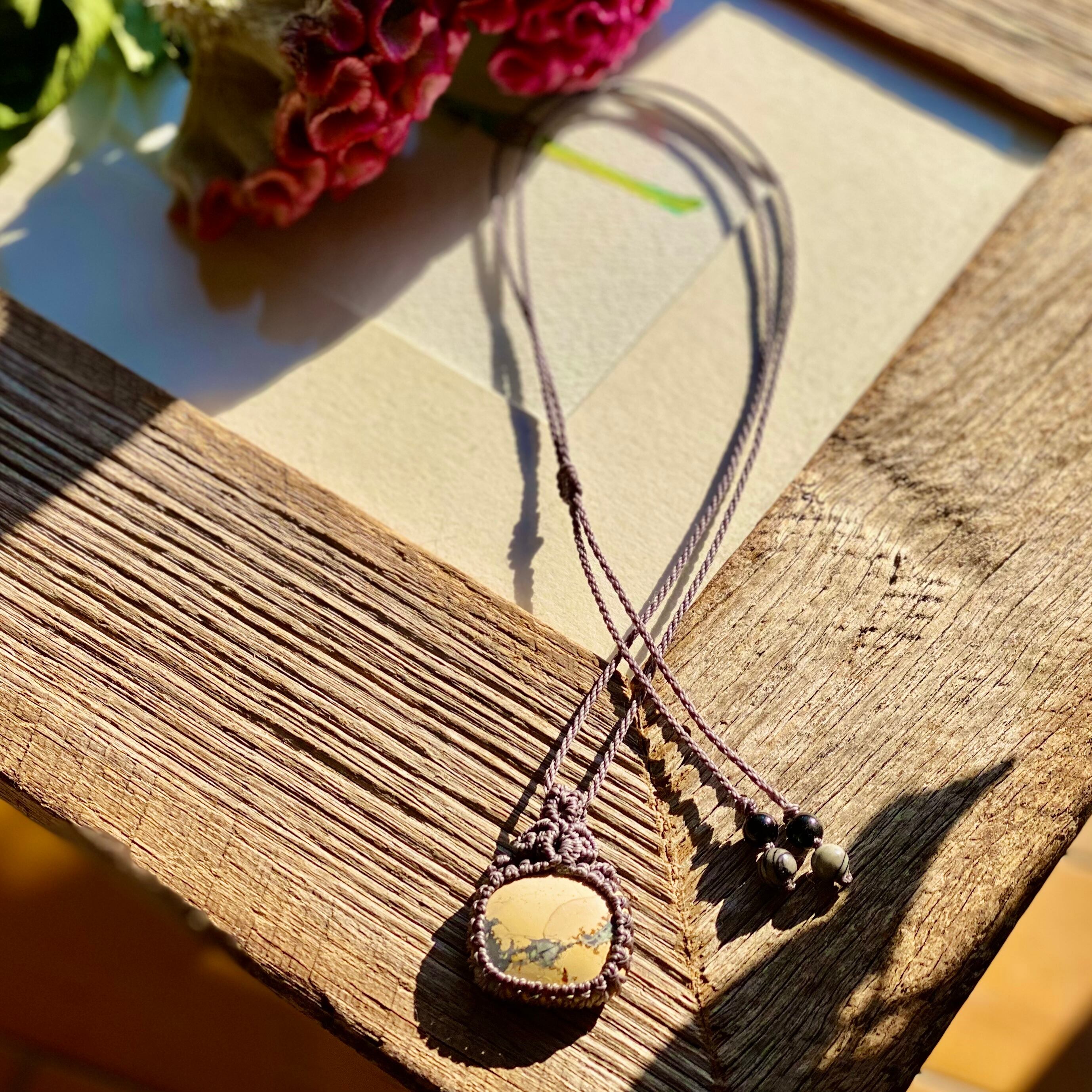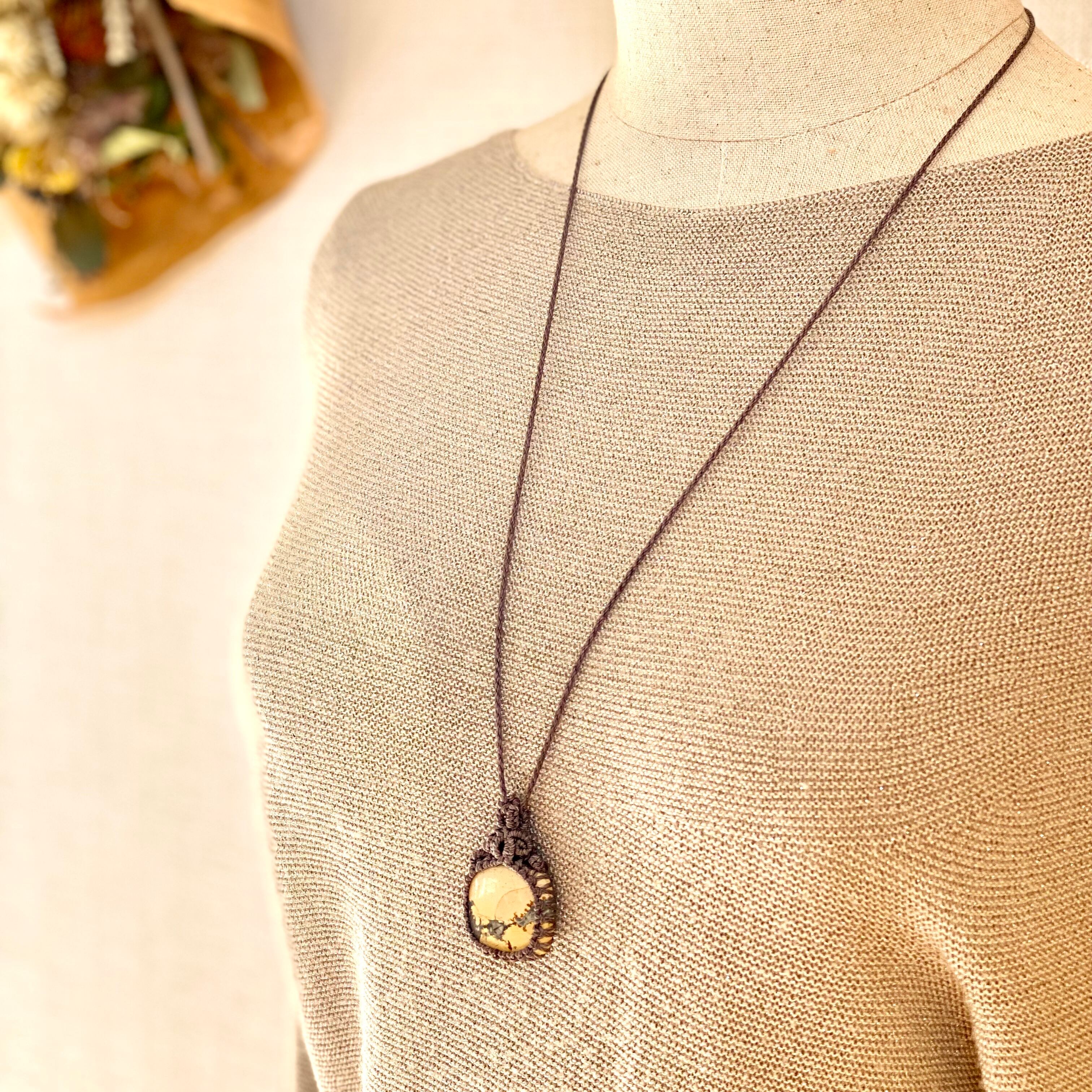 大地☆マリガーノジャスパー 天然石マクラメネックレス/日々のお守りアクセサリー