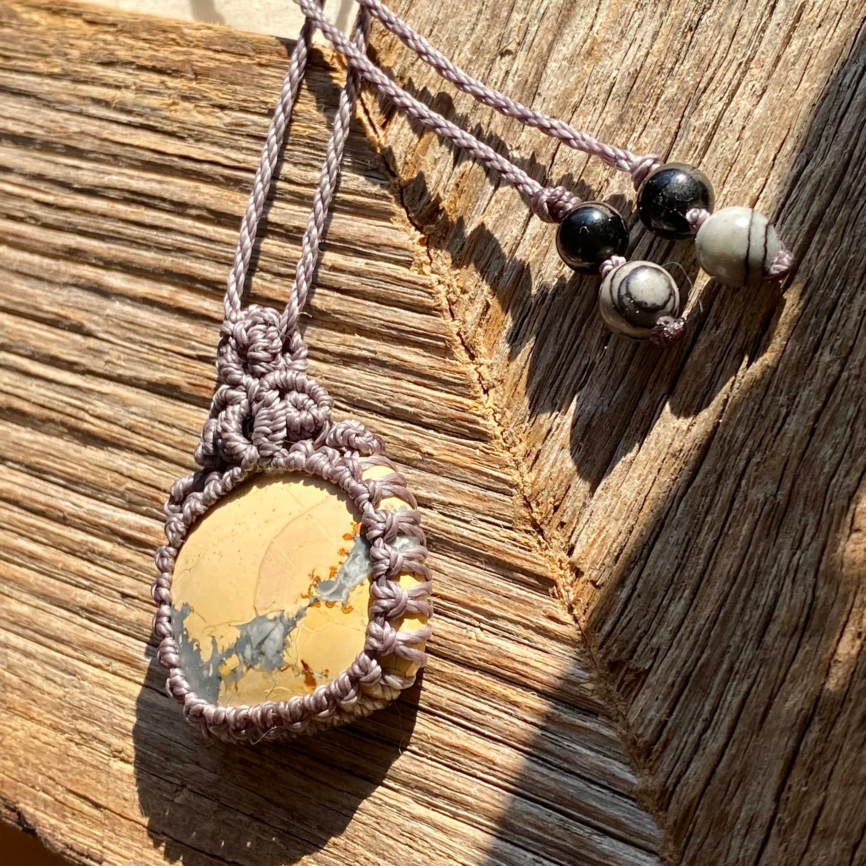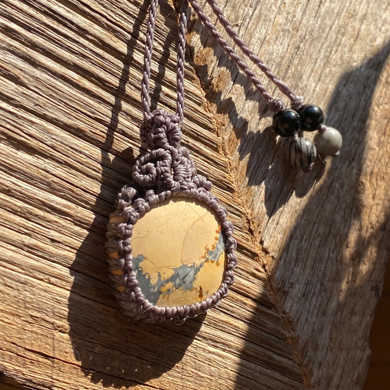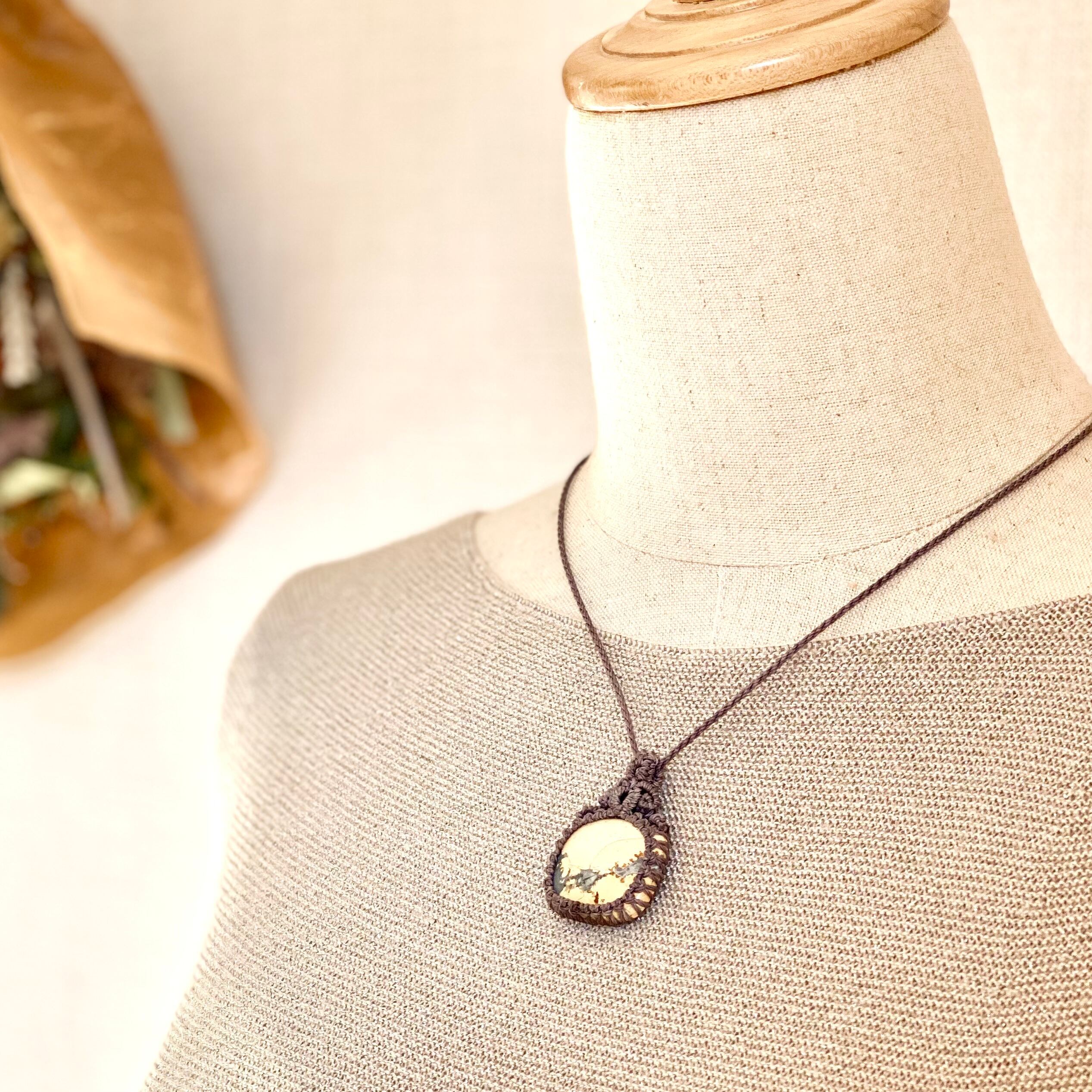 大地☆マリガーノジャスパー 天然石マクラメネックレス/日々のお守りアクセサリー