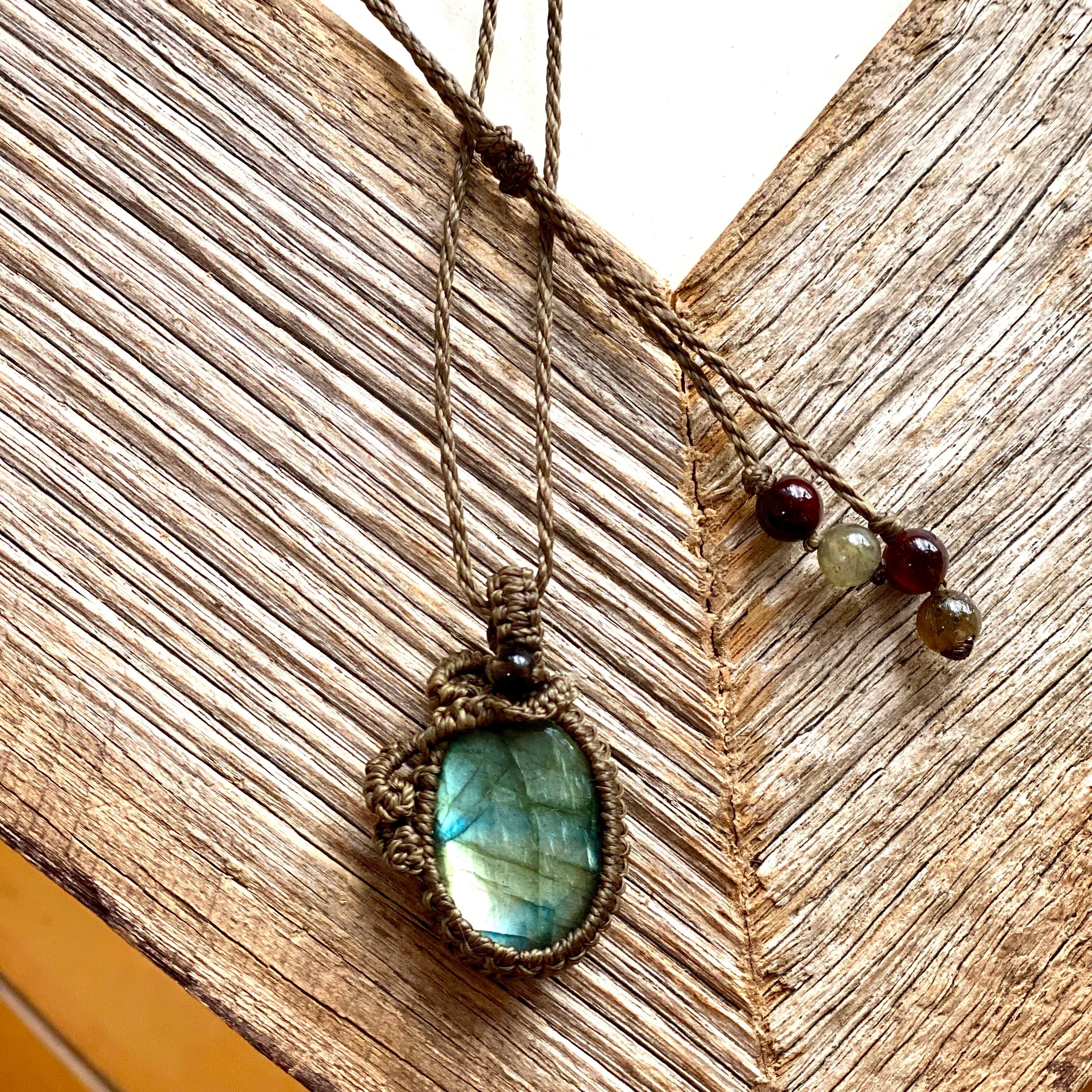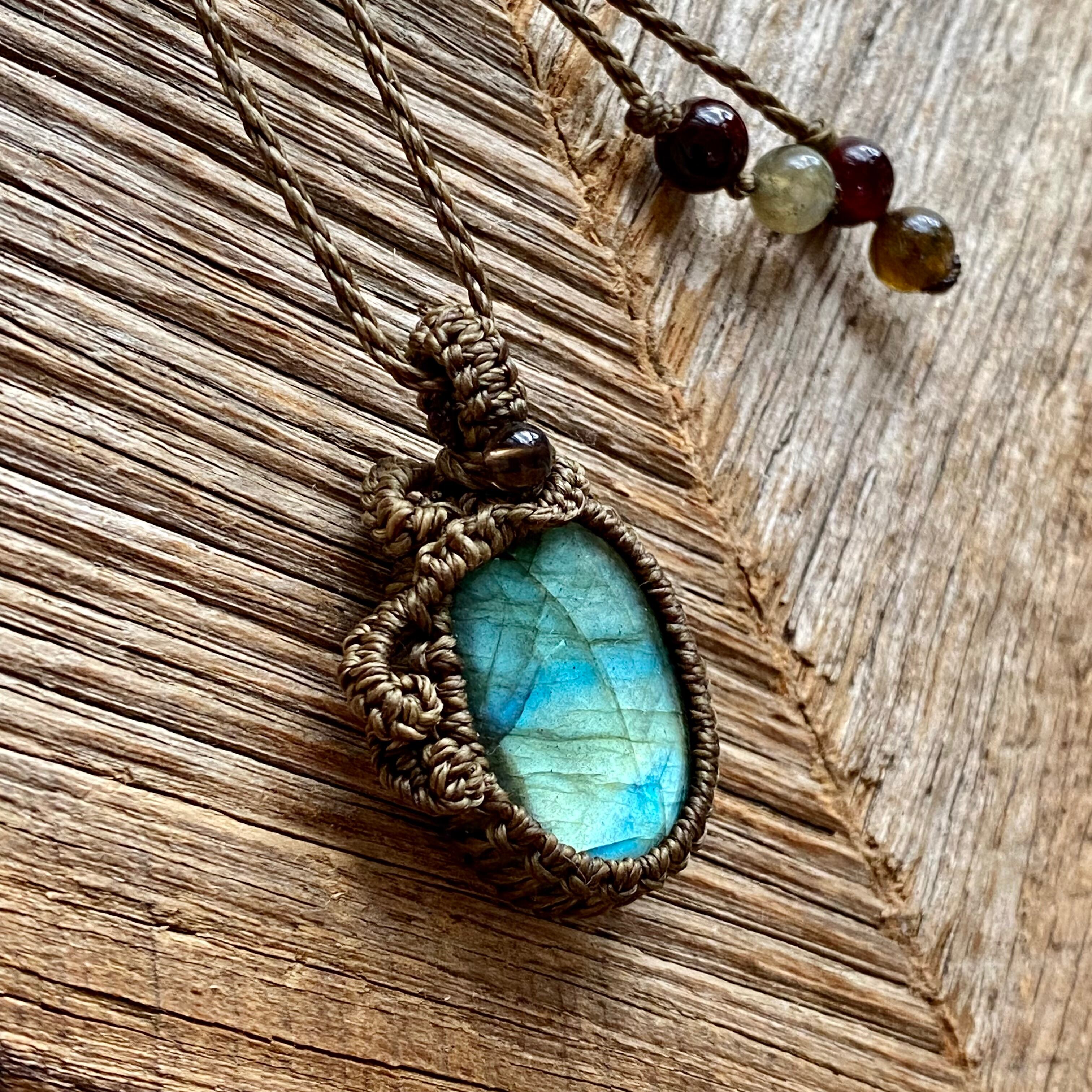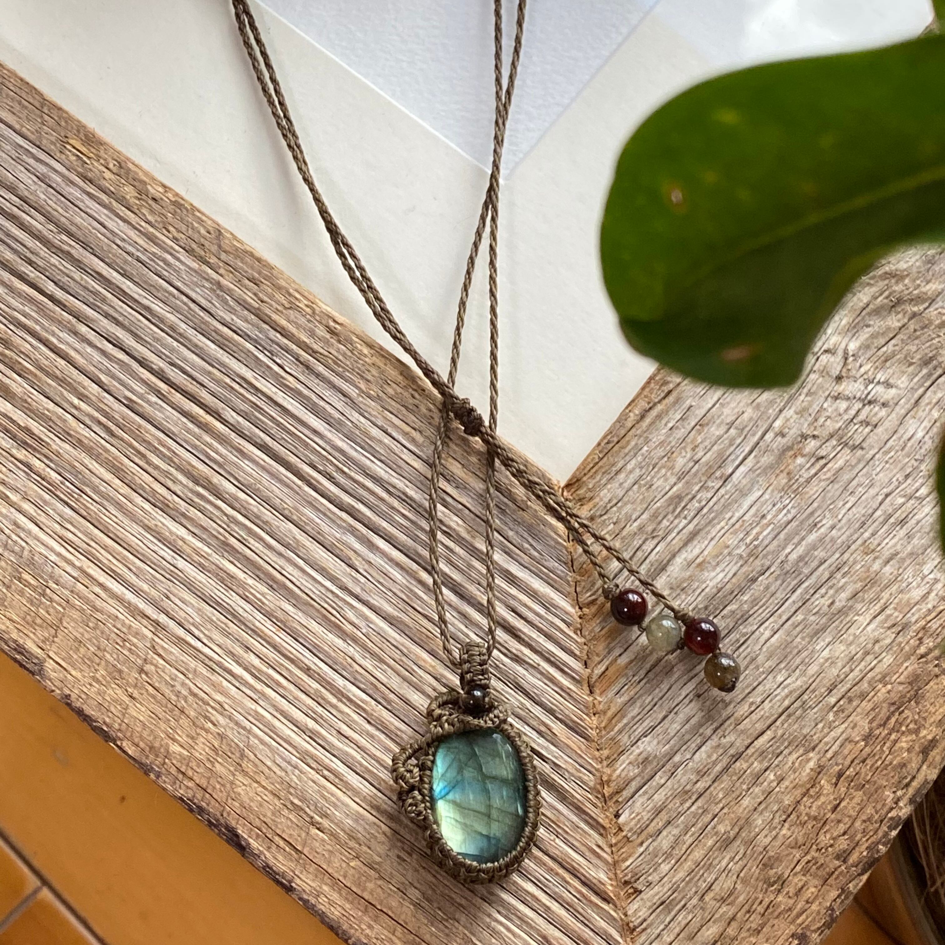 spiritual☆ラブラドライト 天然石マクラメネックレス/日々のアクセサリー