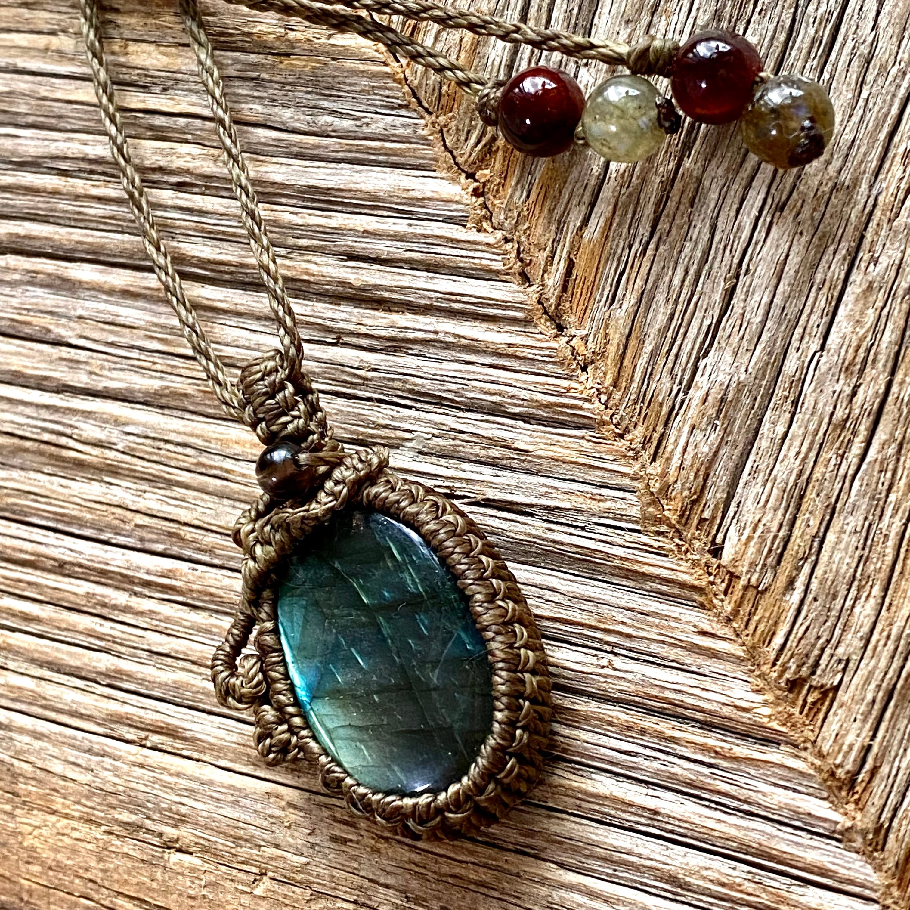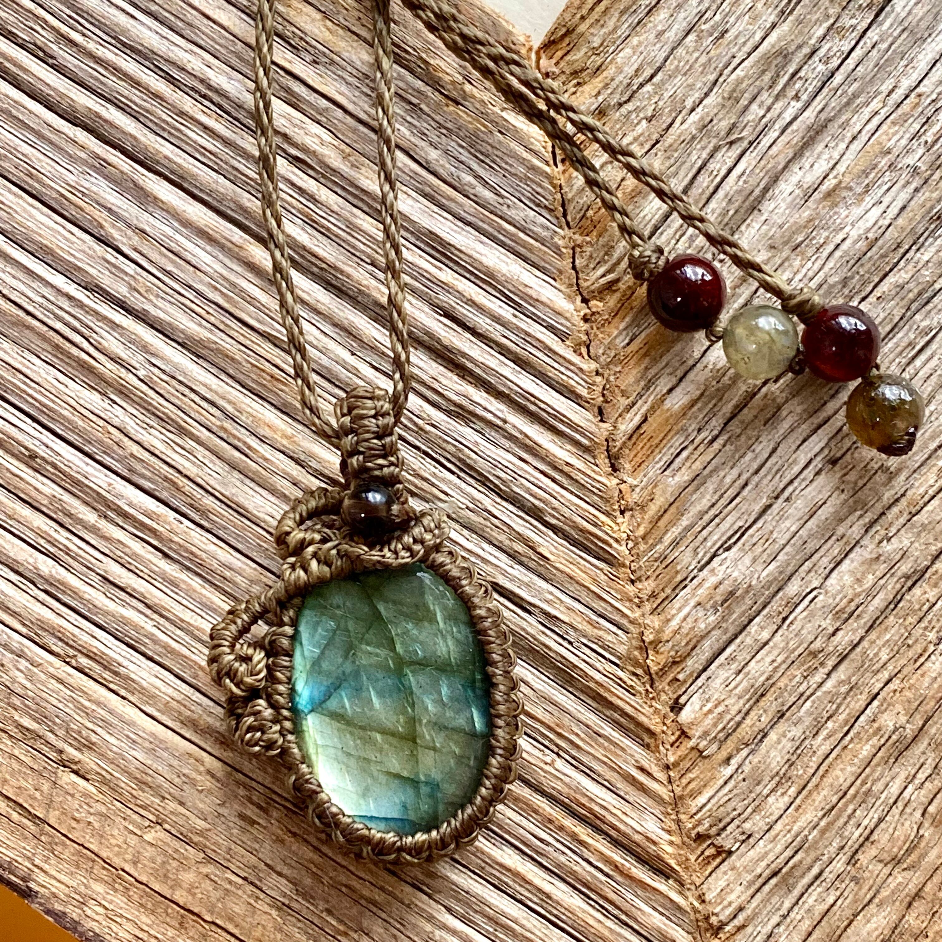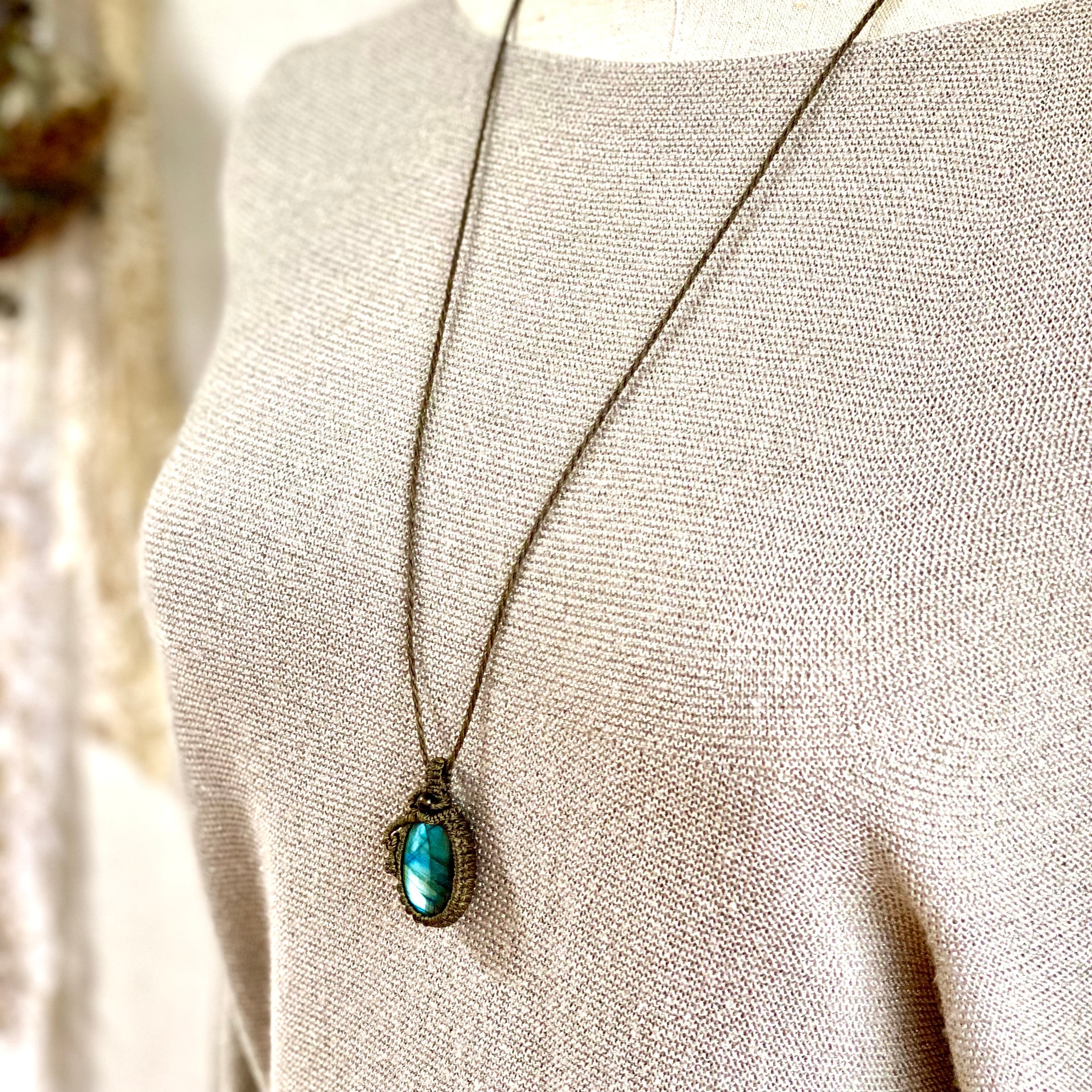 spiritual☆ラブラドライト 天然石マクラメネックレス/日々のアクセサリー