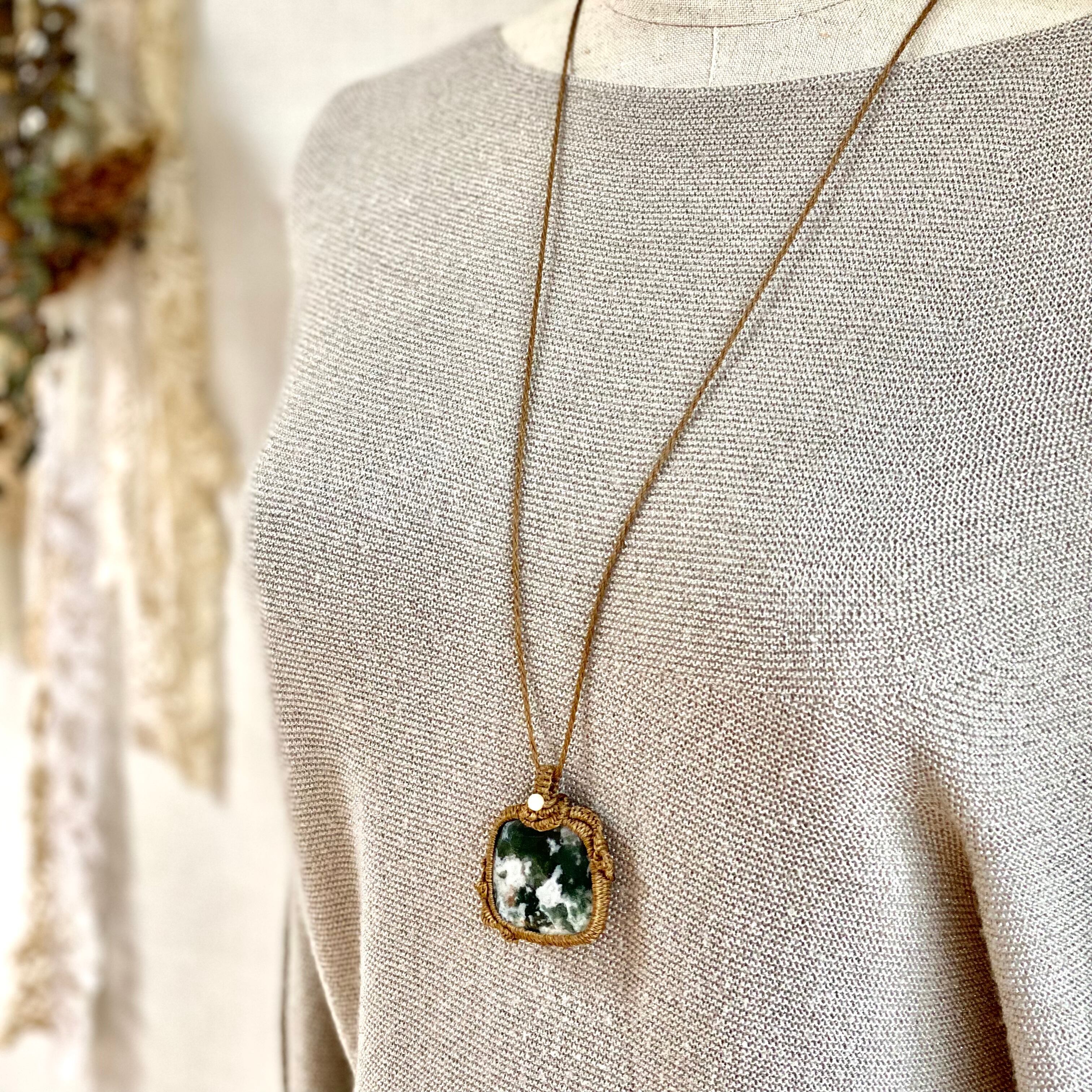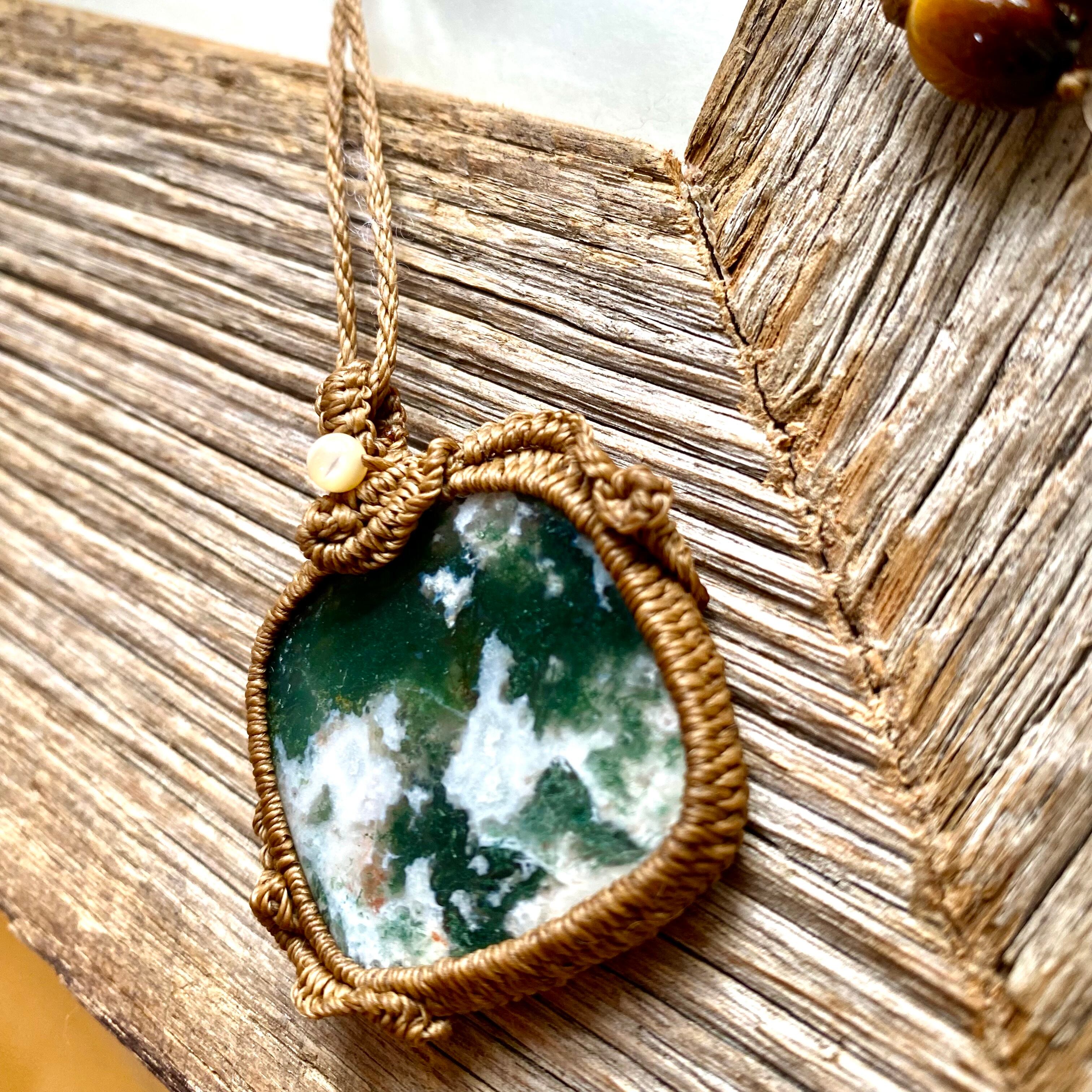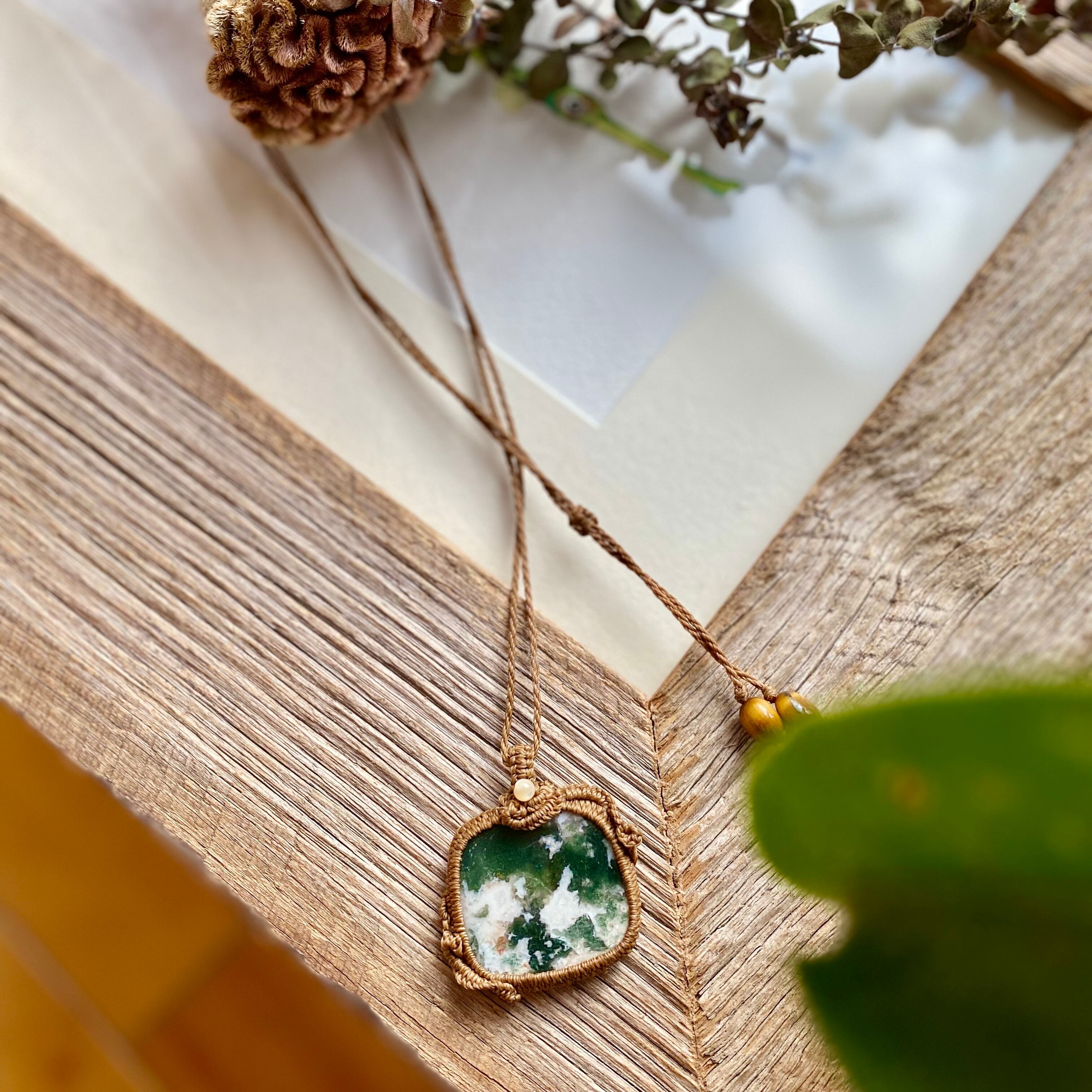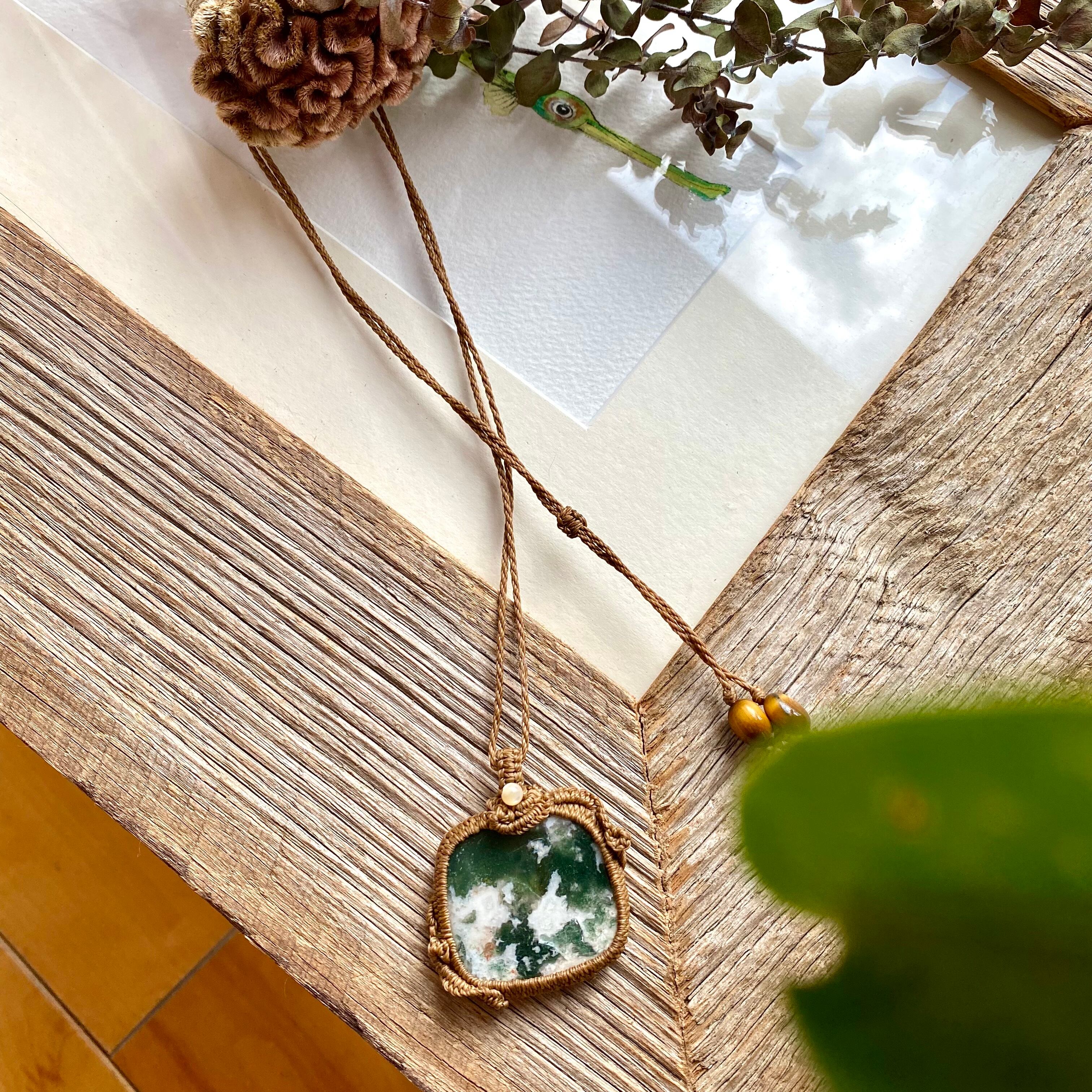 癒し☆モスアゲート 天然石マクラメネックレス/日々のお守りアクセサリー