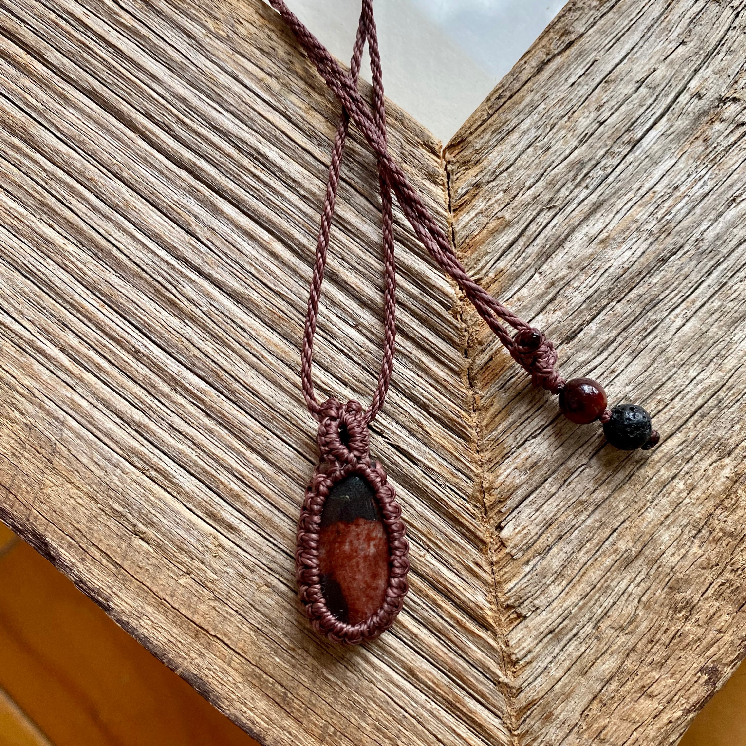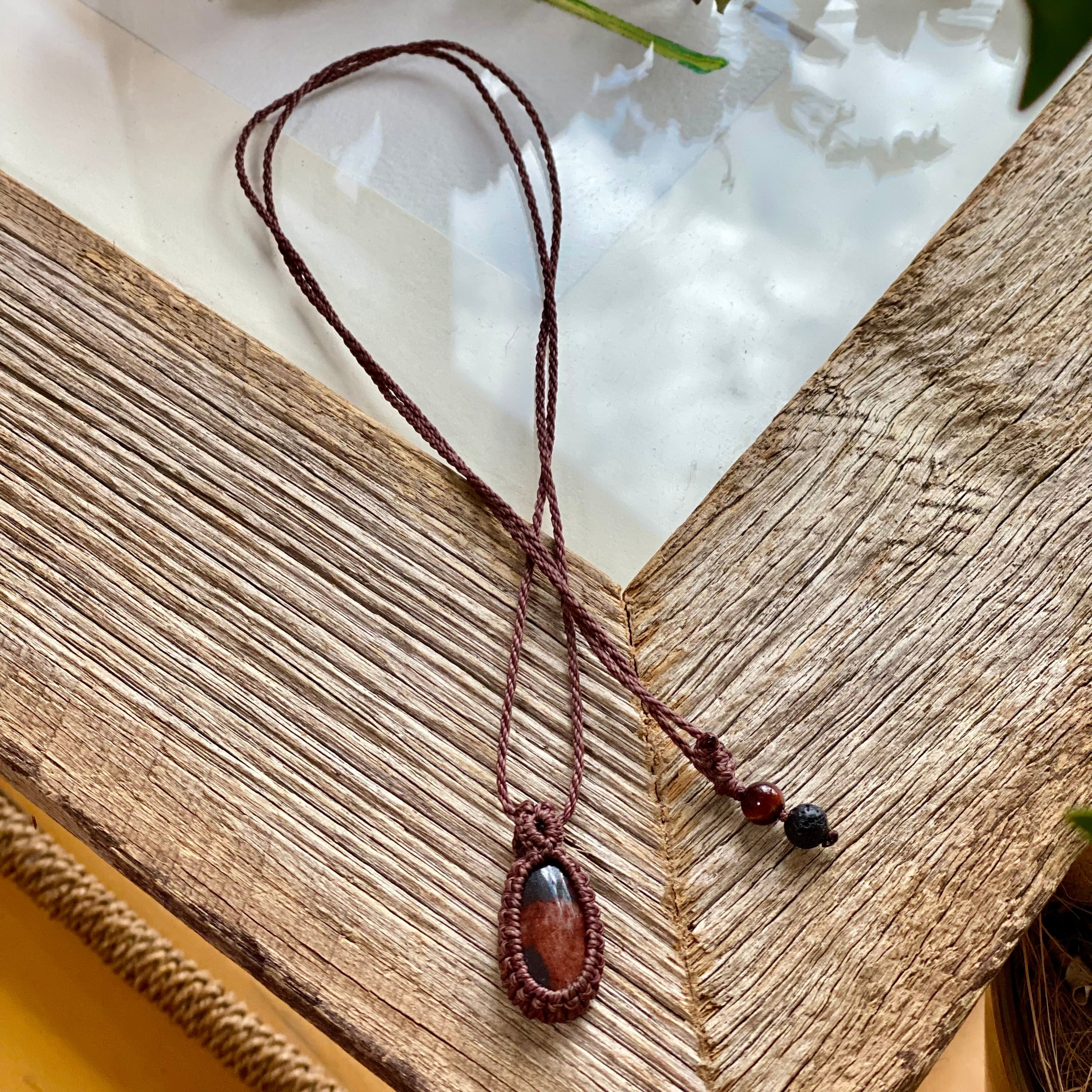 グラウディング☆デザートインペリアルジャスパー 天然石マクラメネックレス/日々のお守りアクセサリー