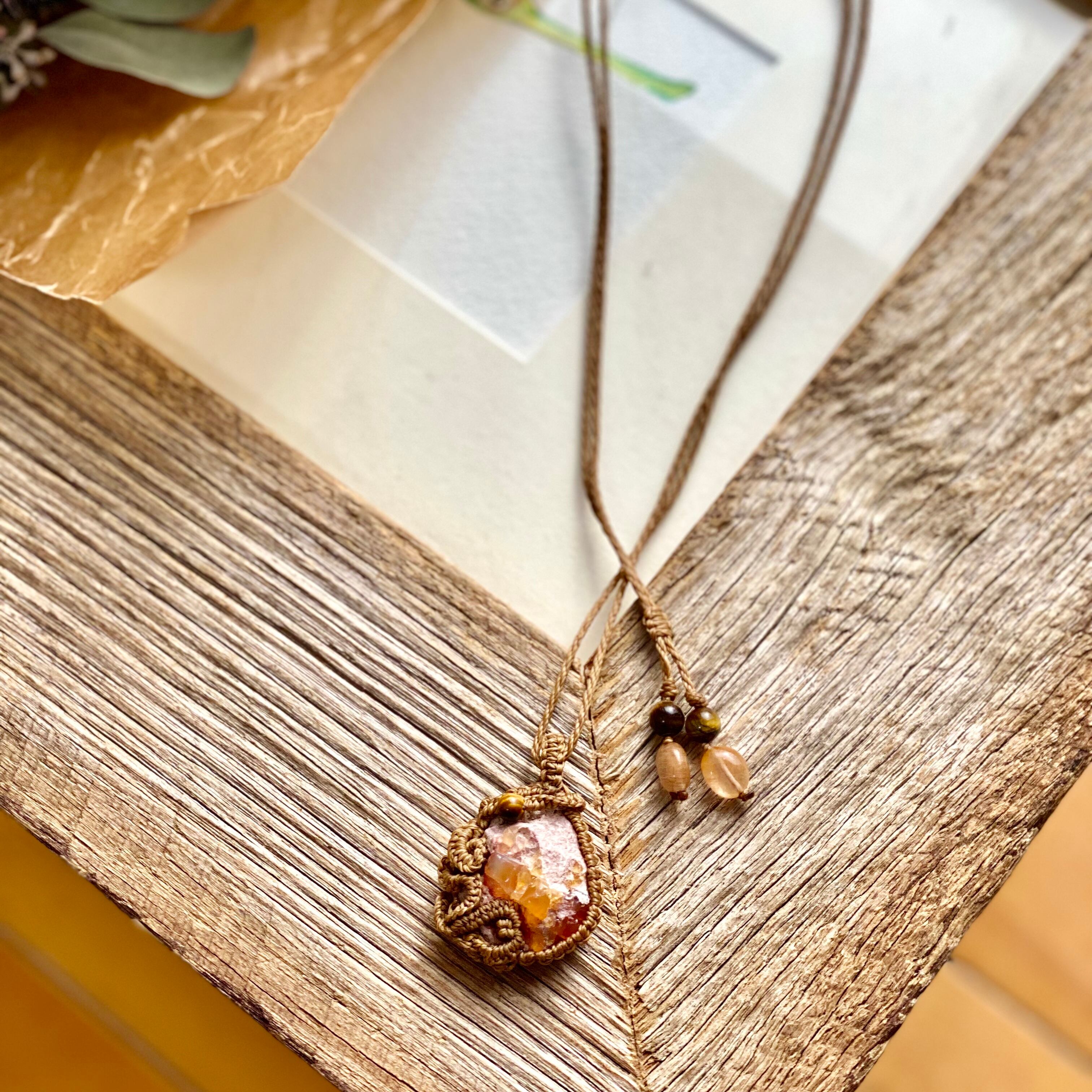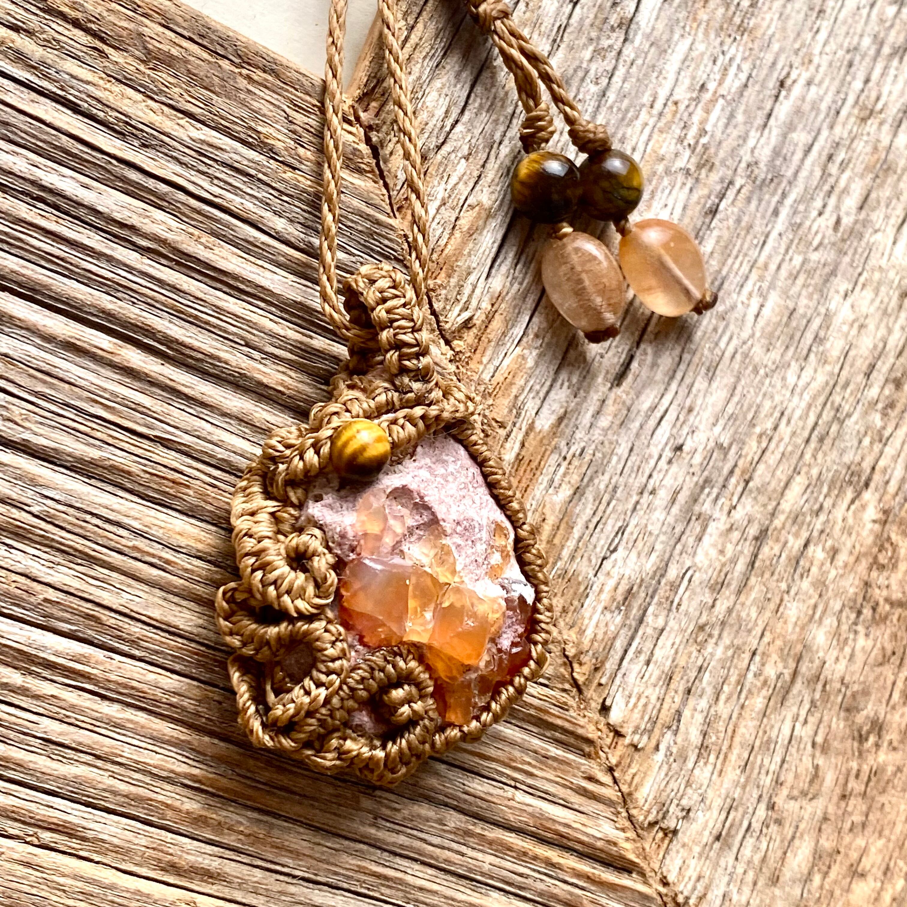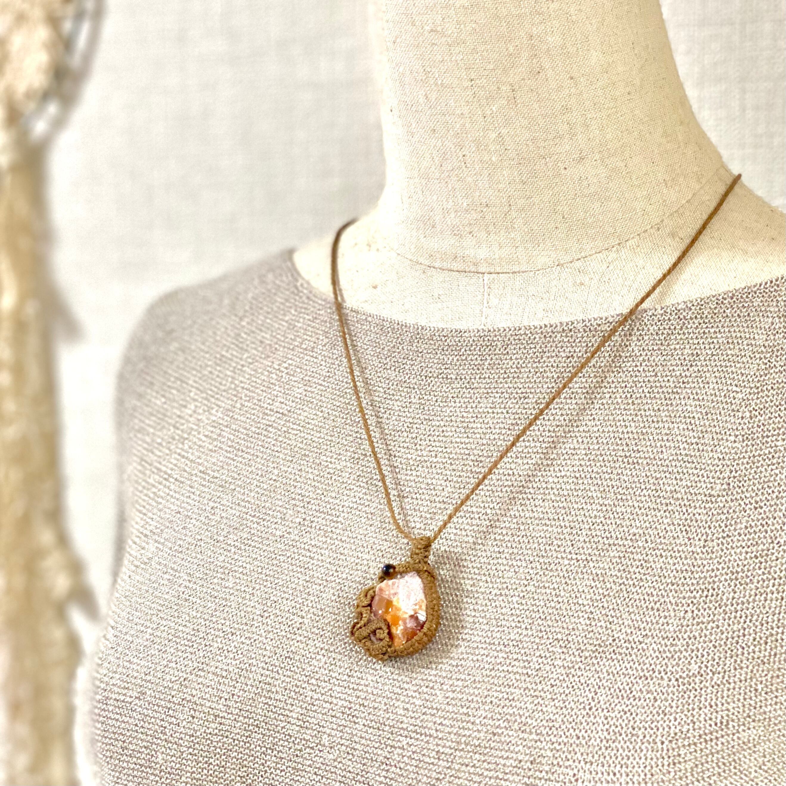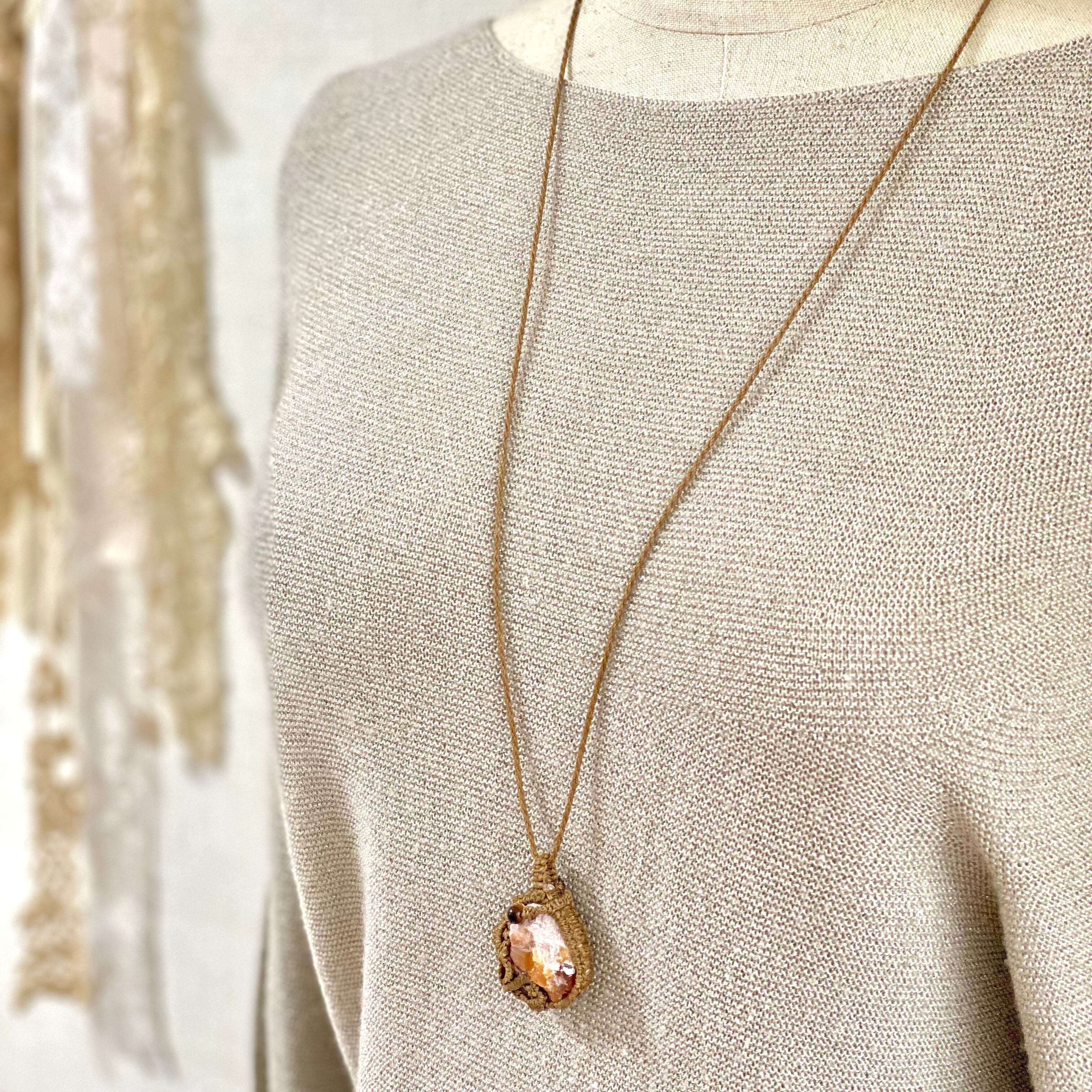 希望☆カンテラオパール天然石マクラメネックレス/日々のお守りアクセサリー