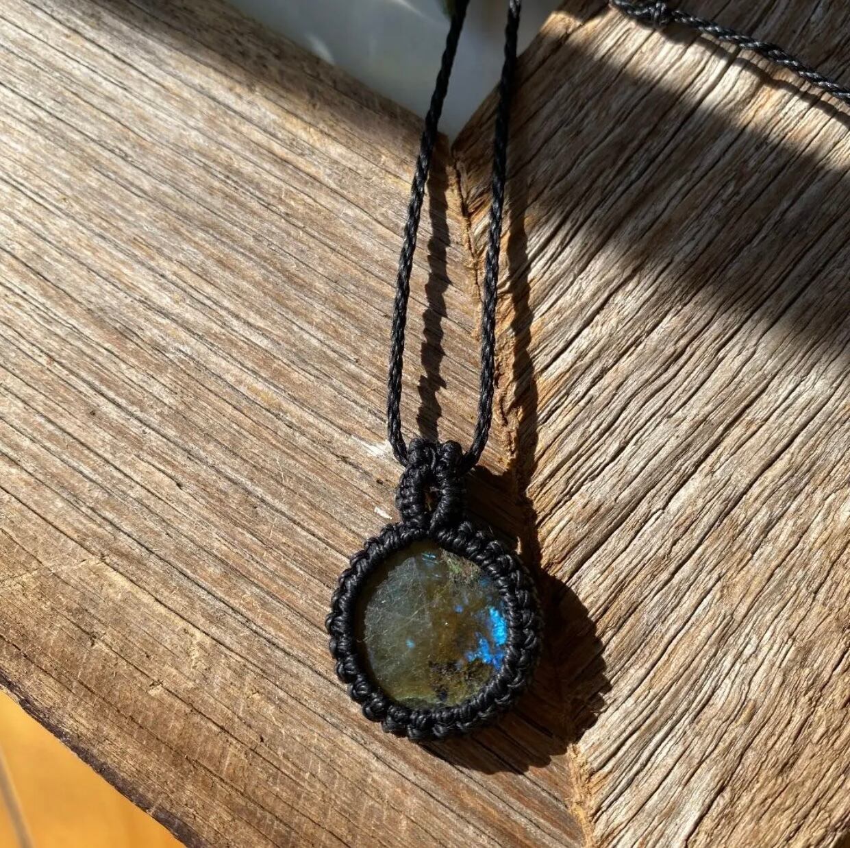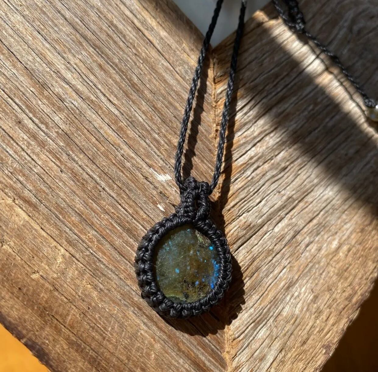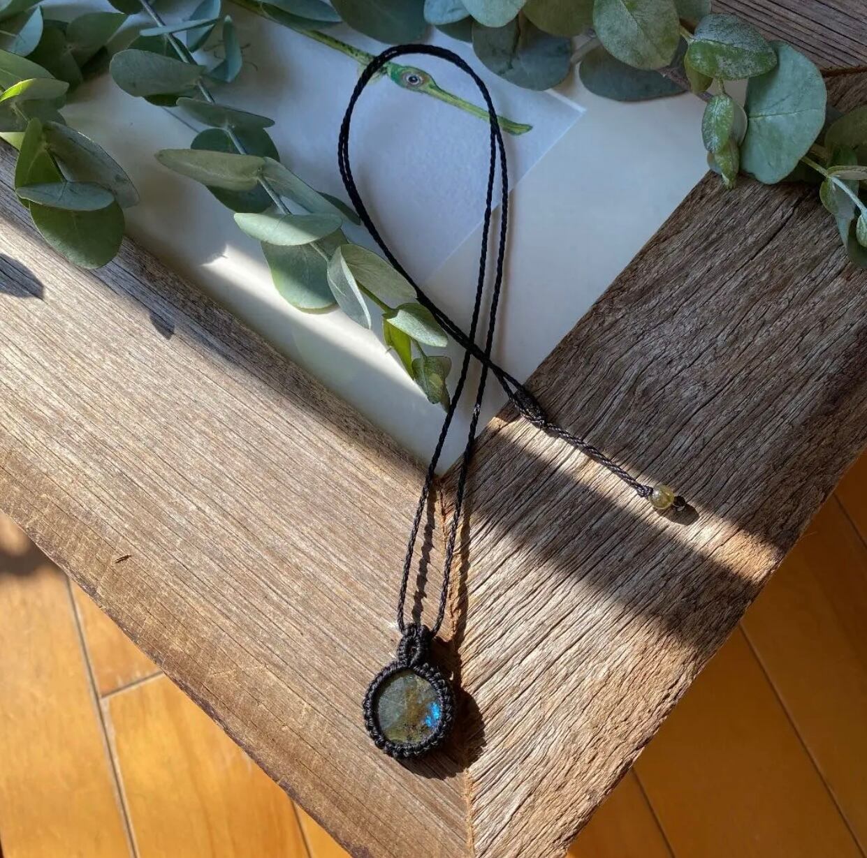 spiritual☆ラブラドライト 天然石マクラメネックレス/日々のお守りアクセサリー