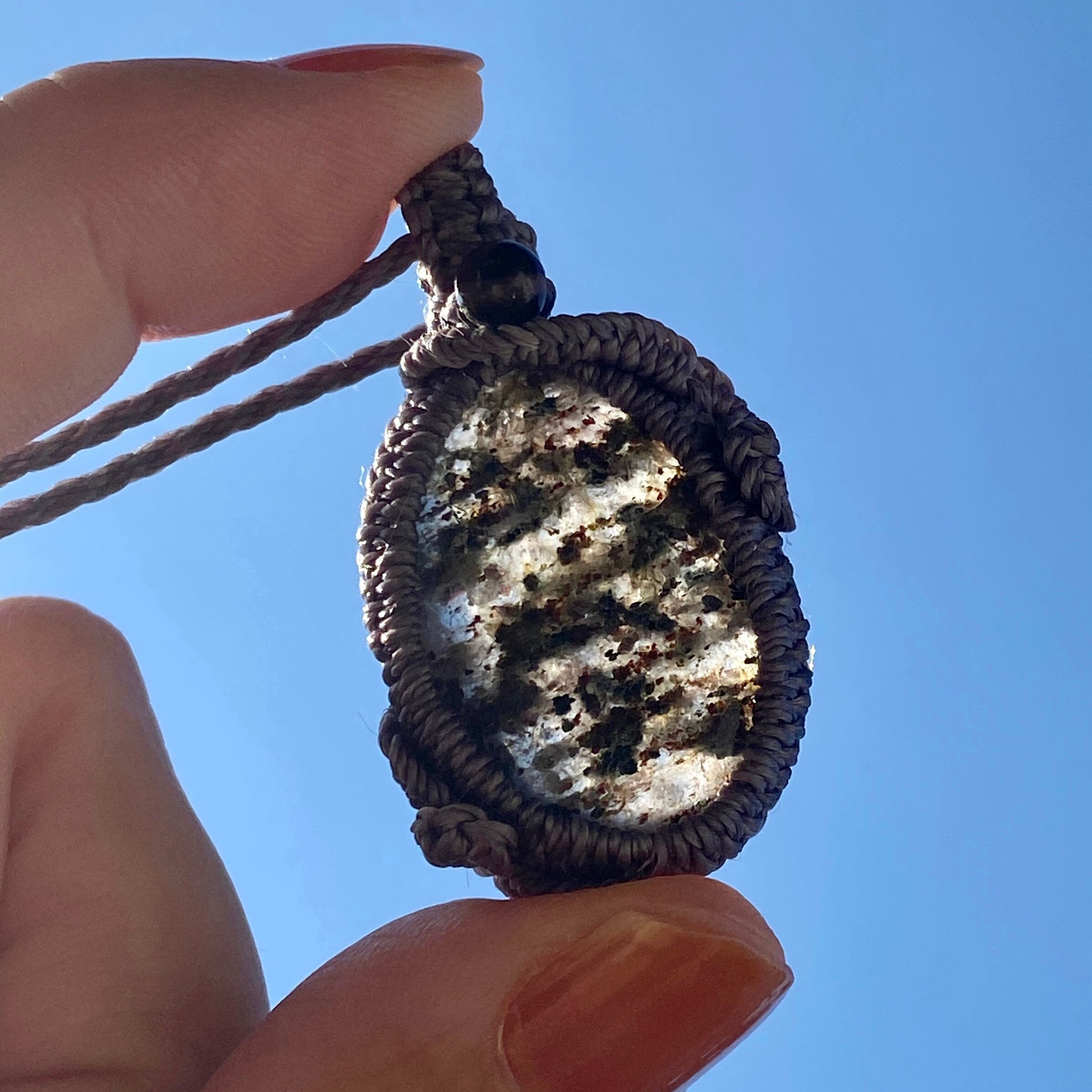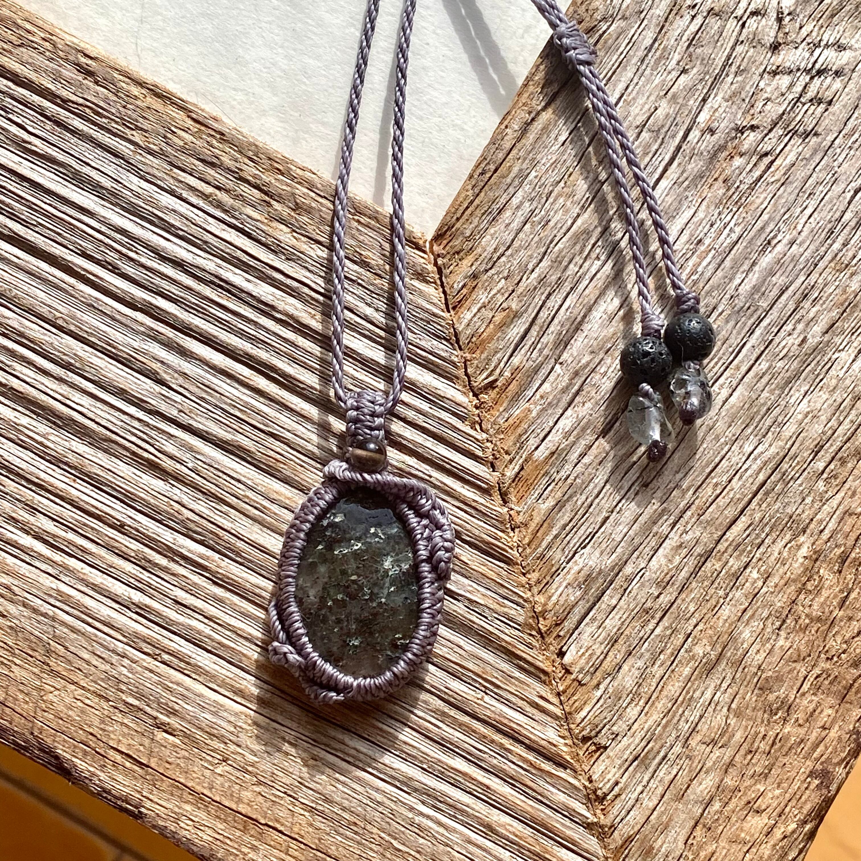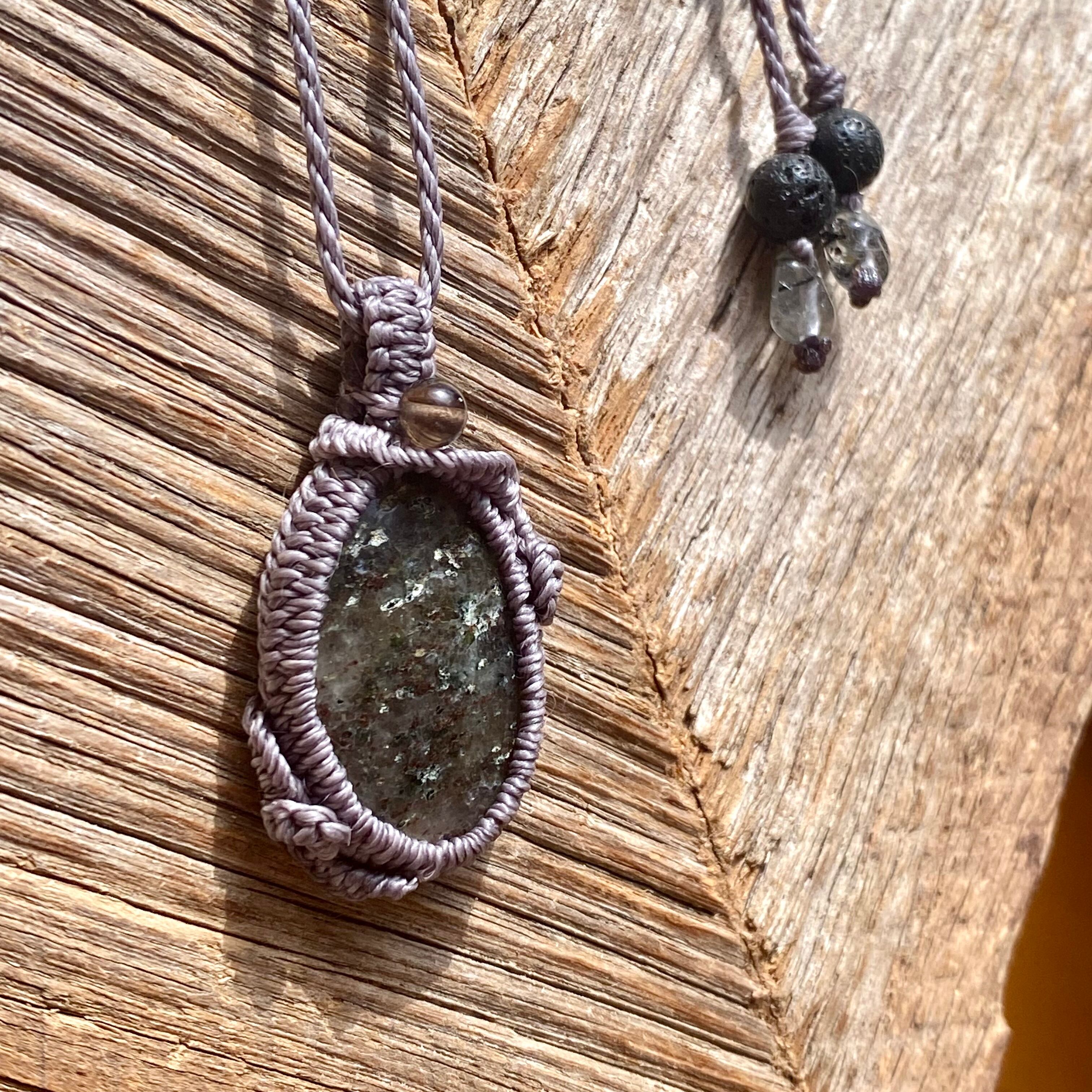 マルチ☆ブラックドットクリスタル 天然石マクラメネックレス/日々のお守りアクセサリー