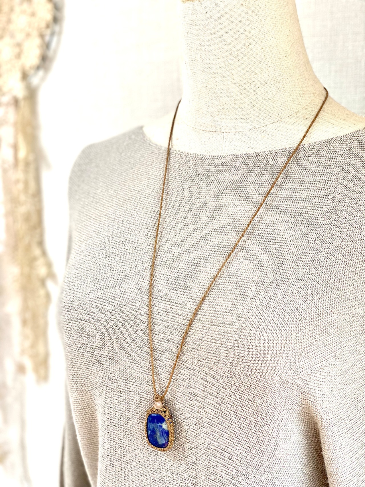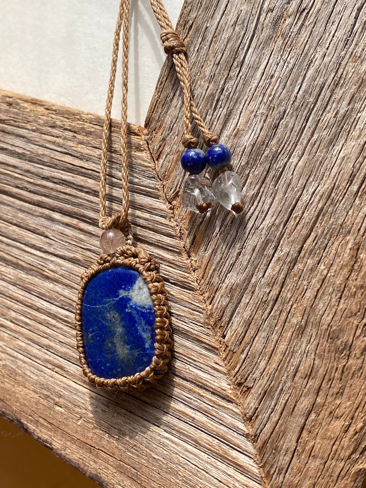 spiritual☆ラピスラズリ 天然石マクラメネックレス/日々のお守りアクセサリー