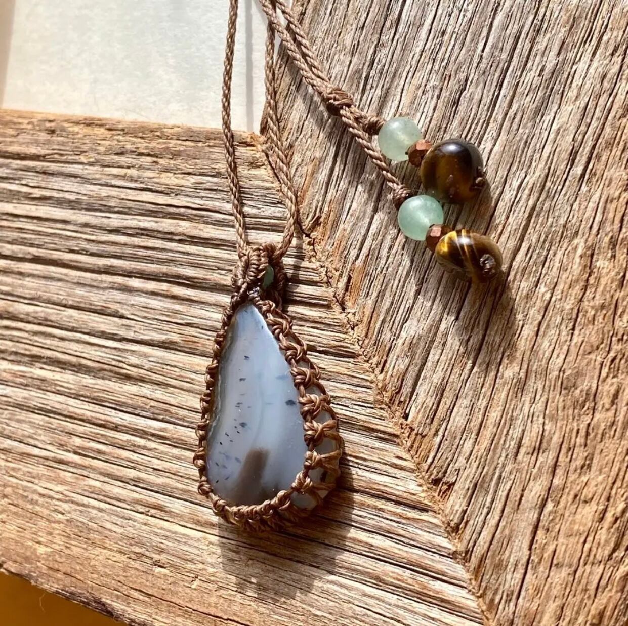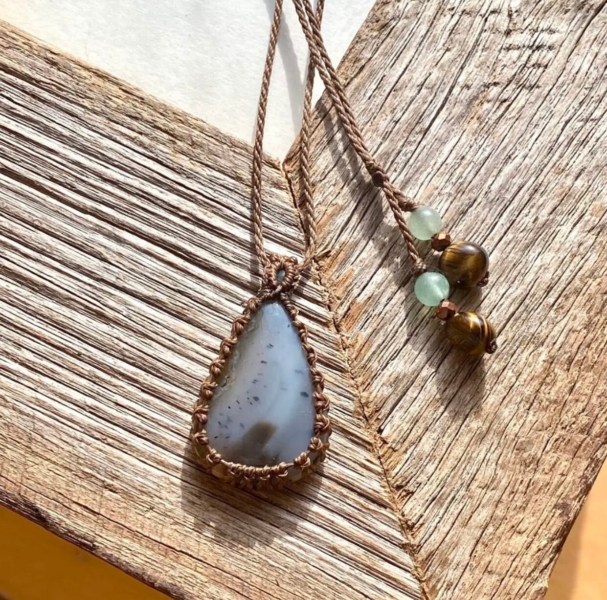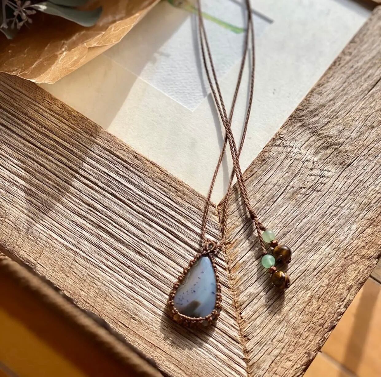 art☆モンタナアゲート 天然石マクラメネックレス/日々のお守りアクセサリー