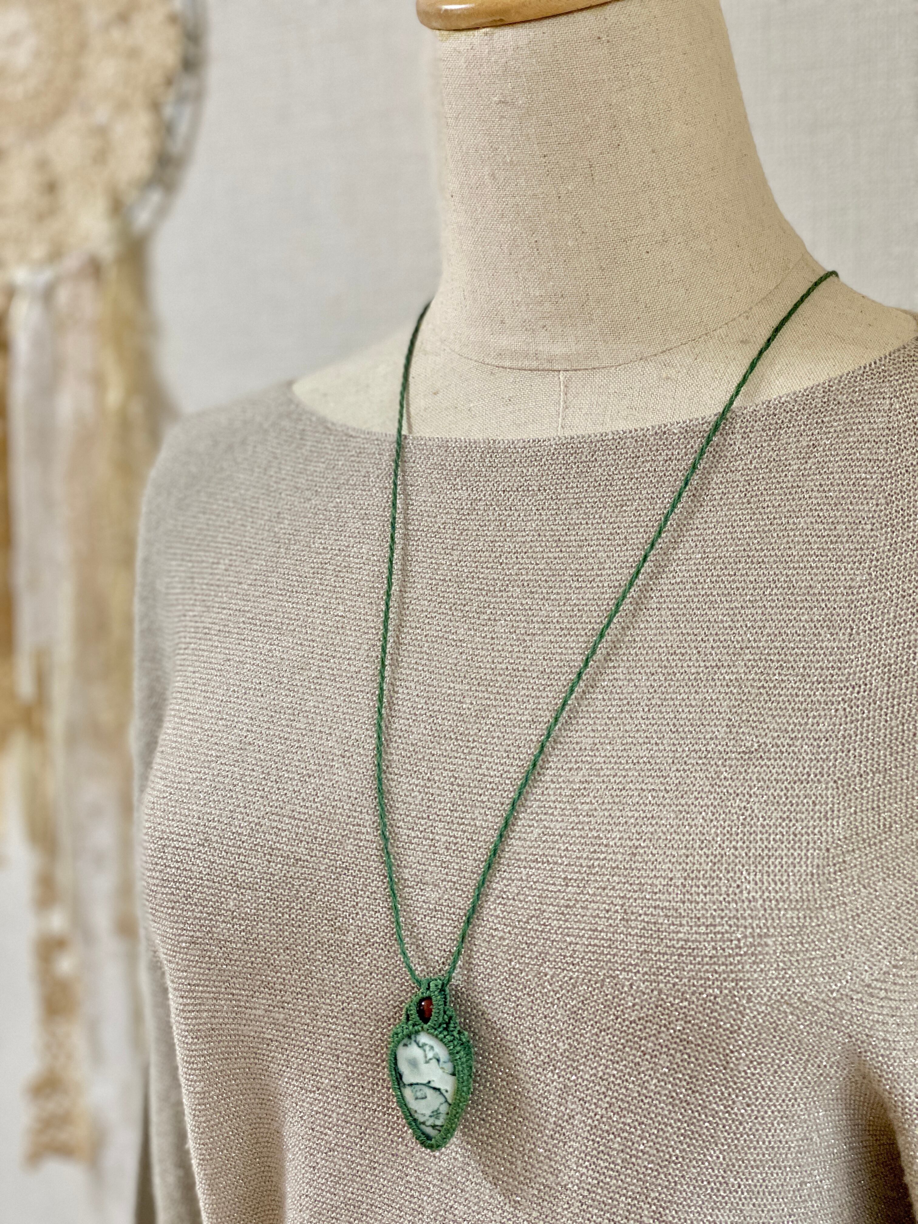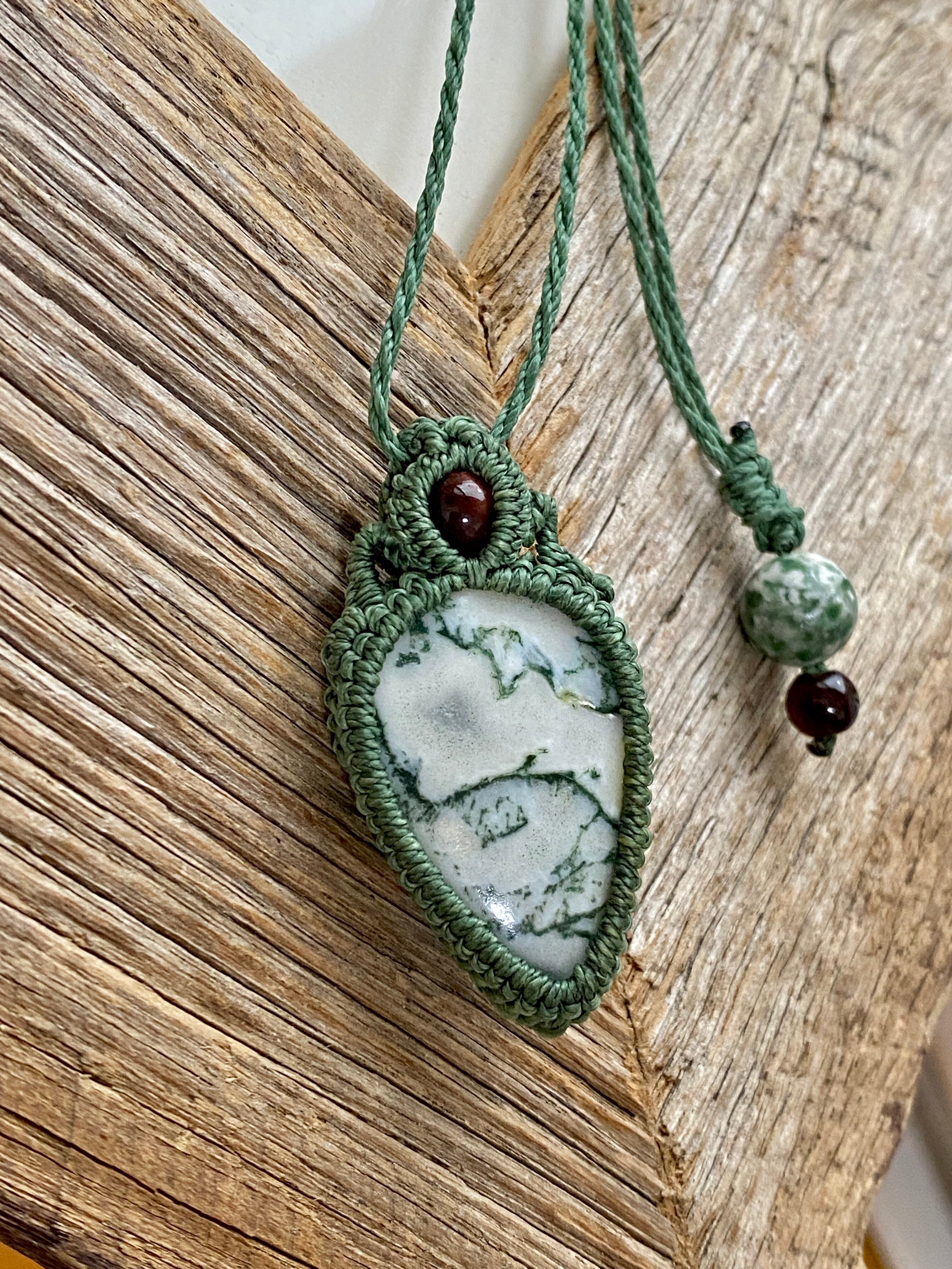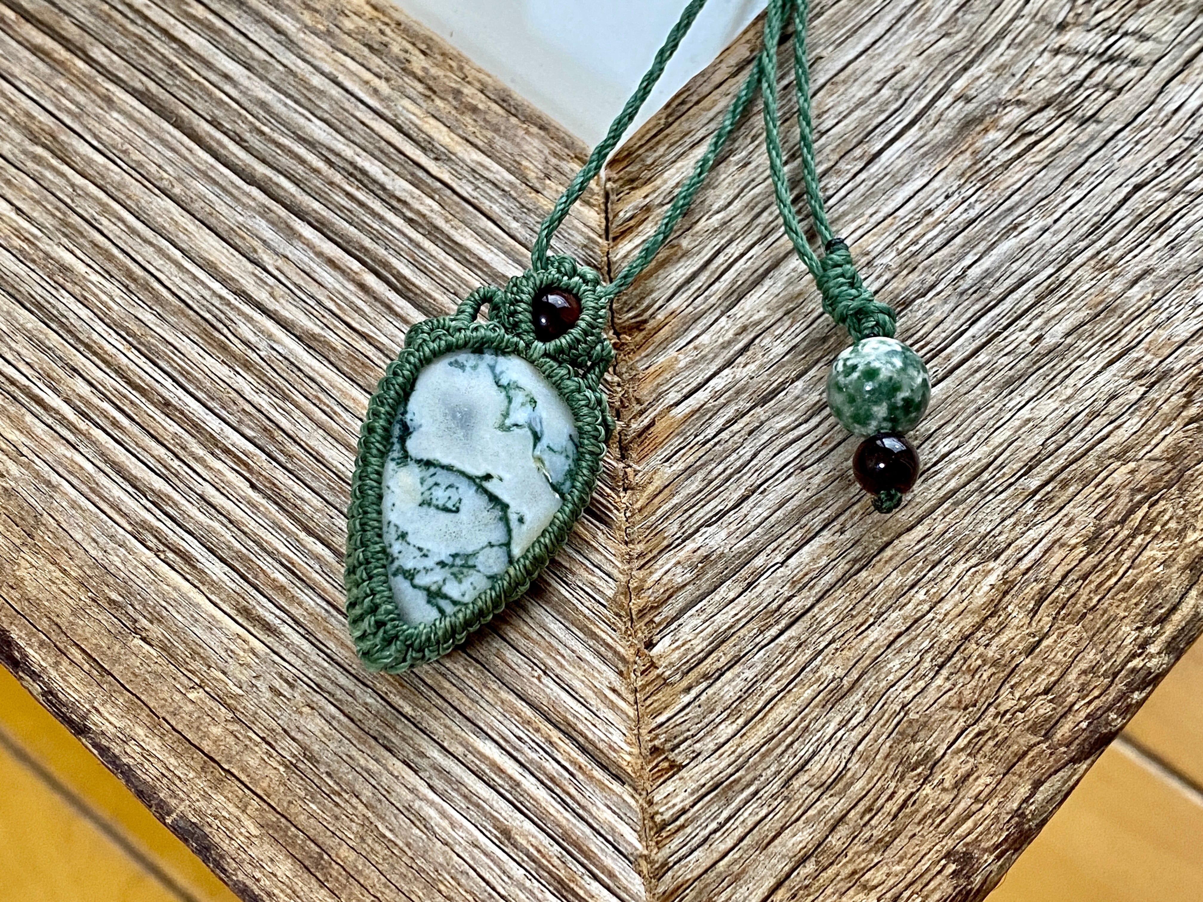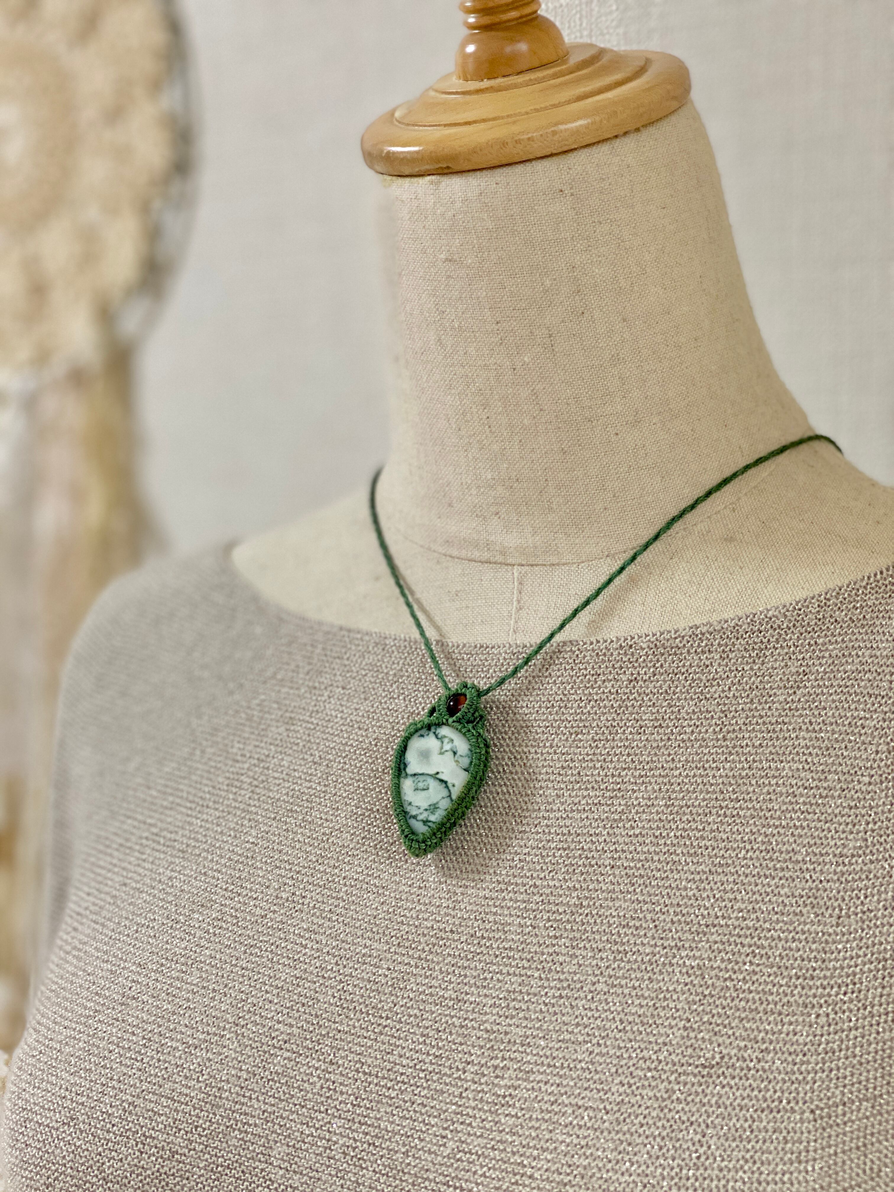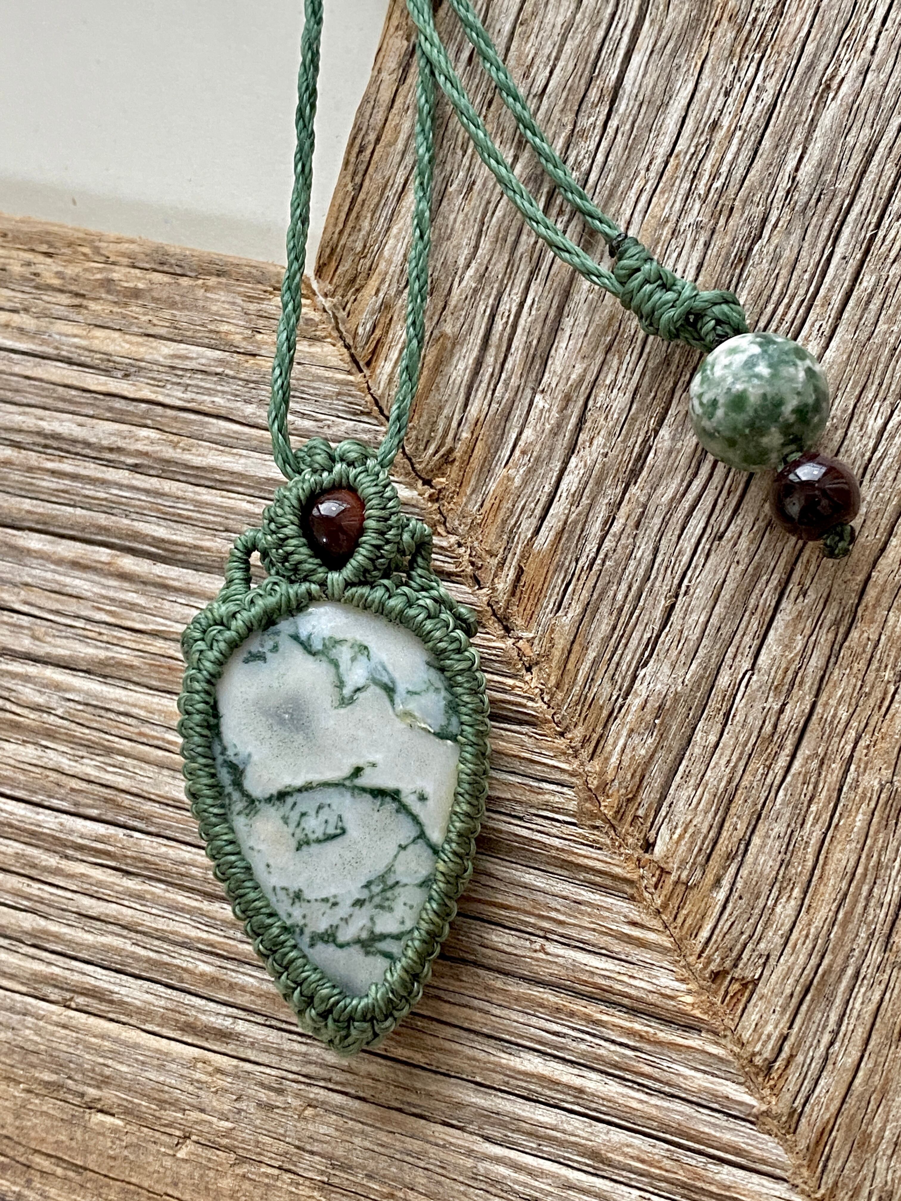 癒し☆モスオパール 天然石マクラメネックレス/日々のお守りアクセサリー