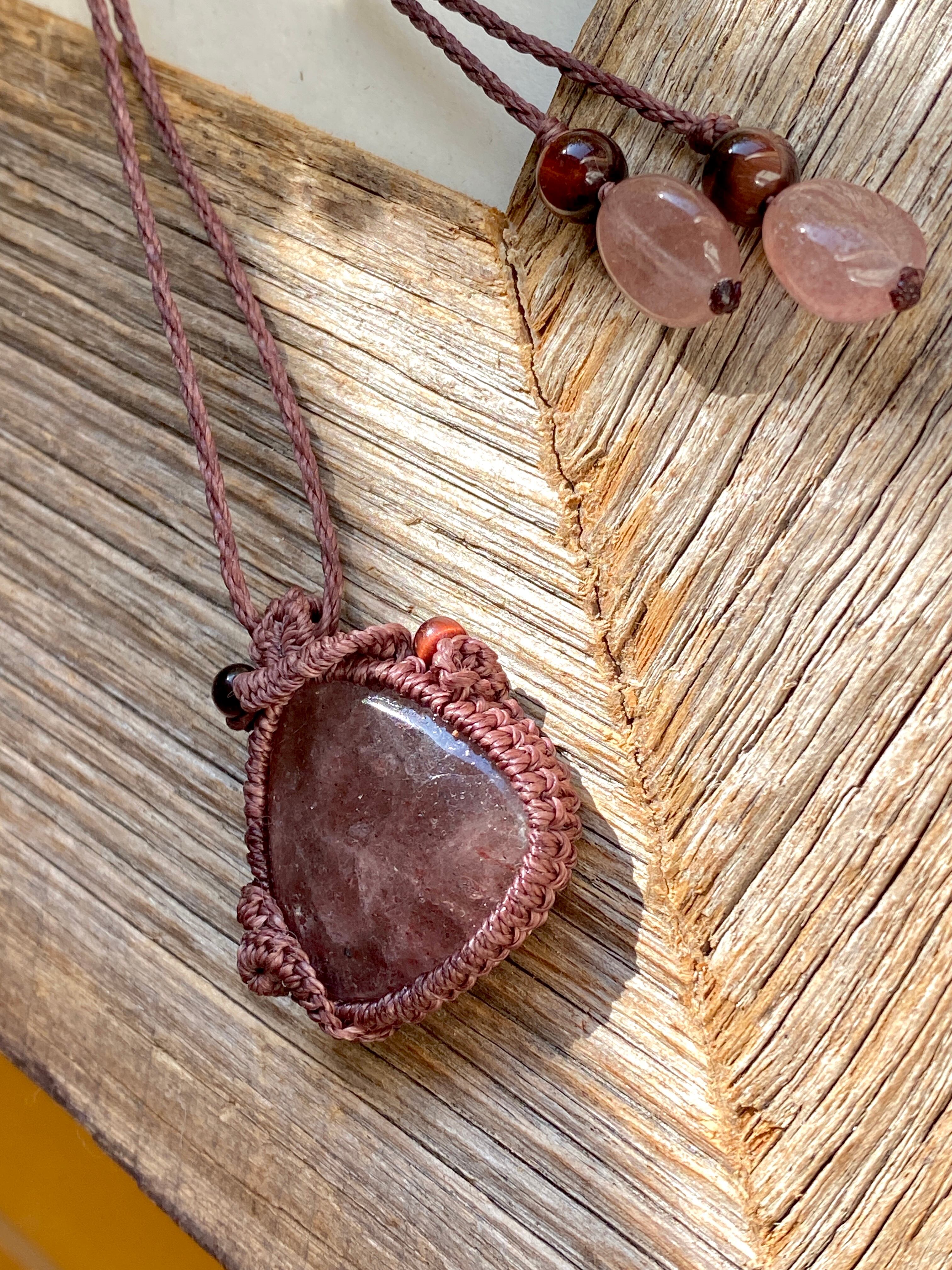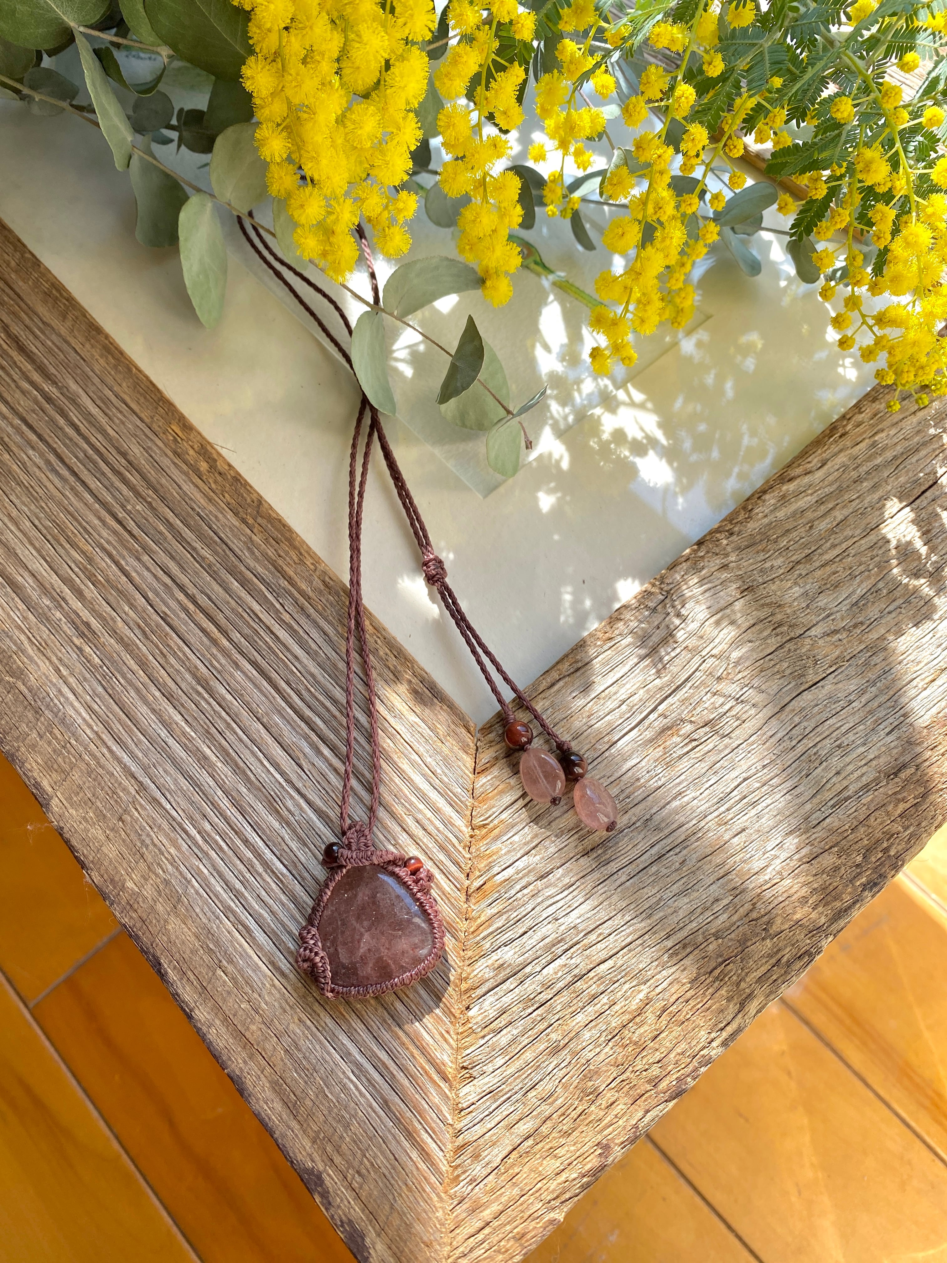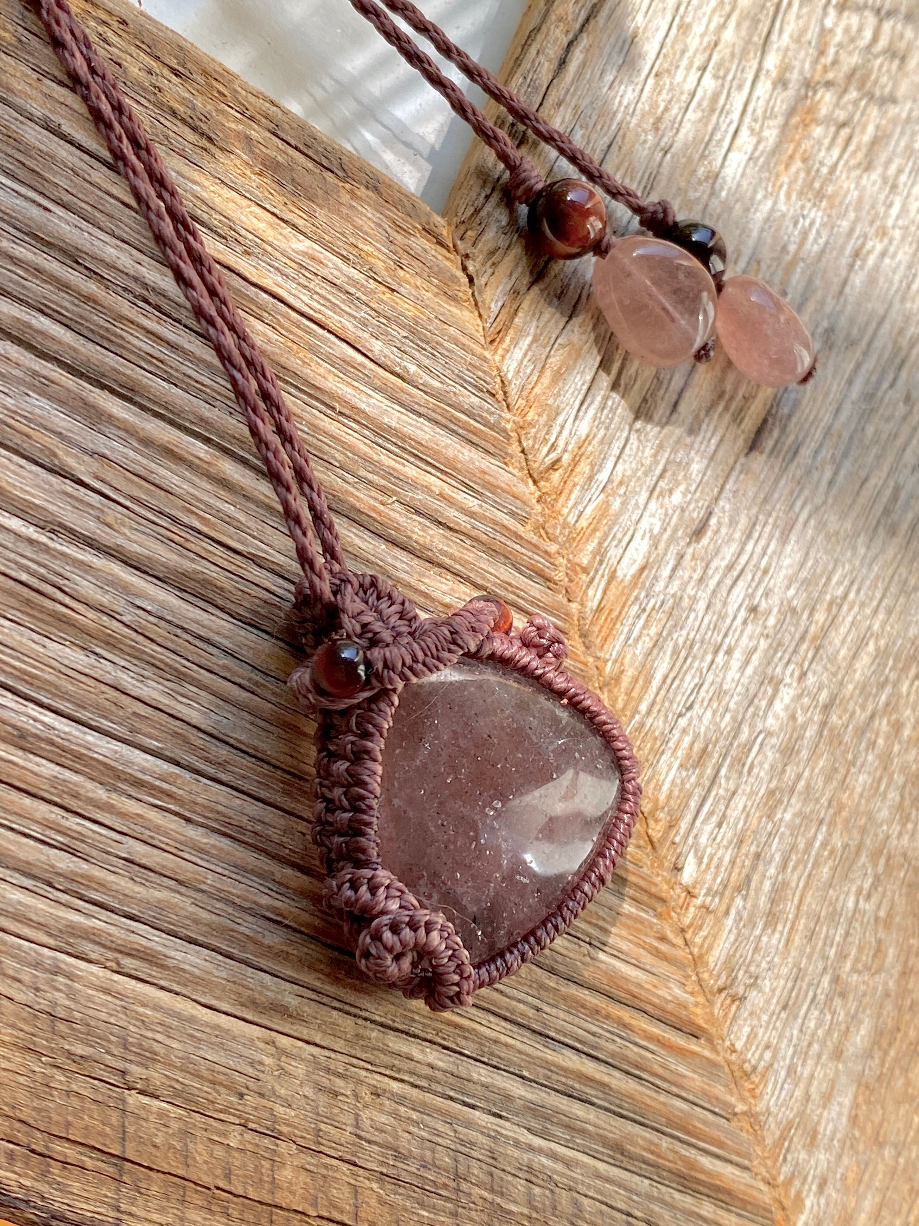 Love☆ストロベリークォーツ 天然石マクラメネックレス/日々のお守りアクセサリー