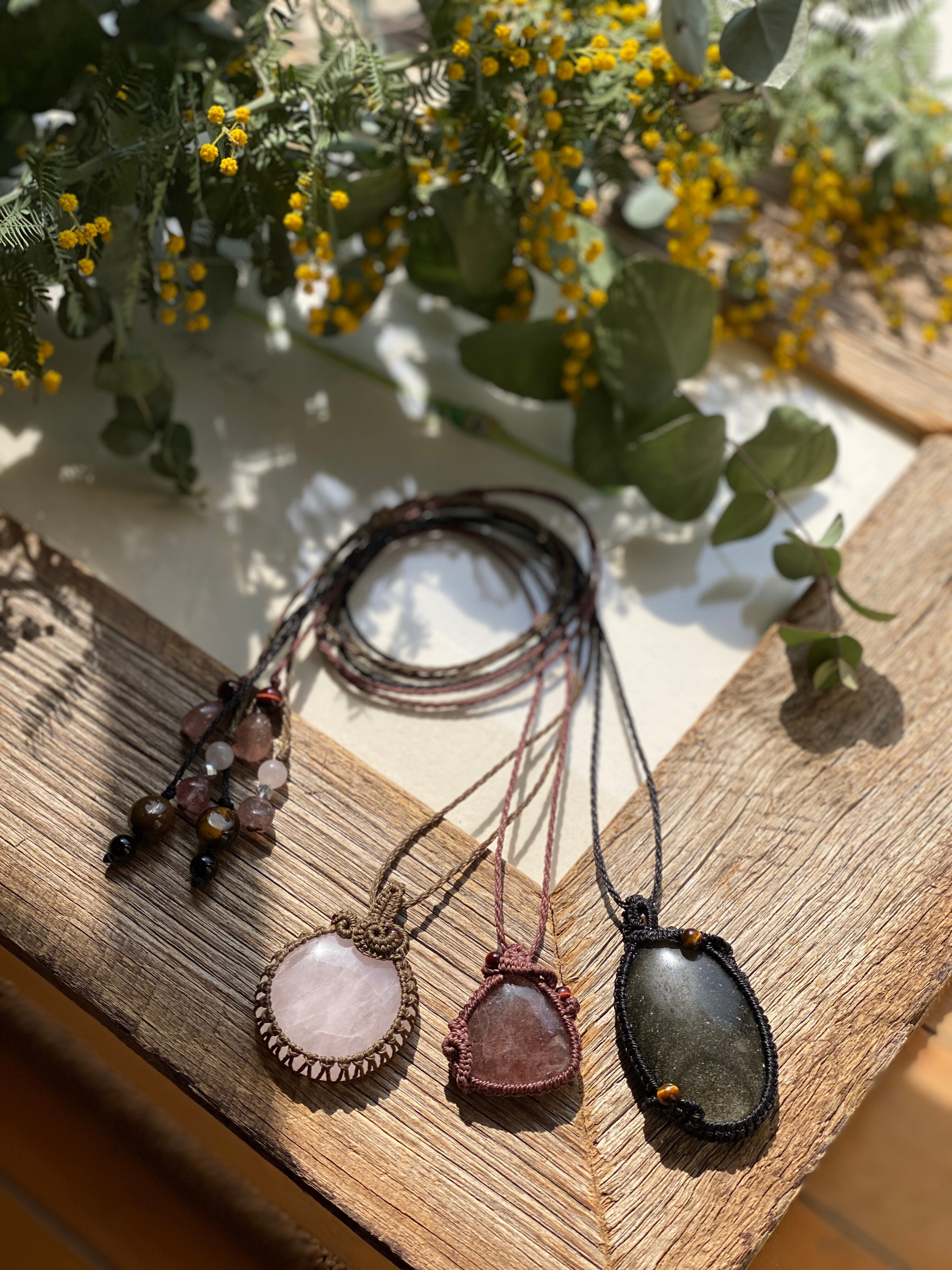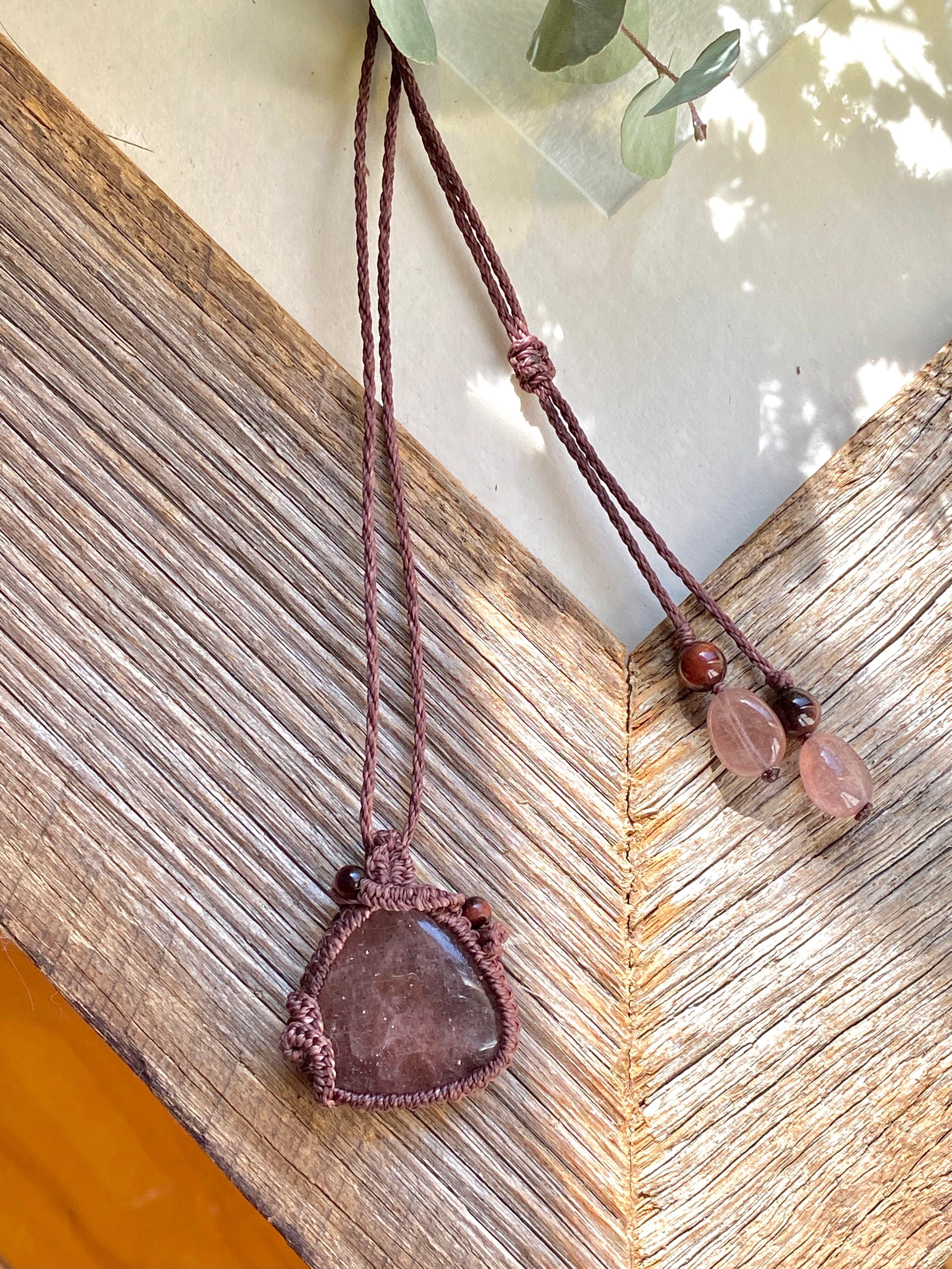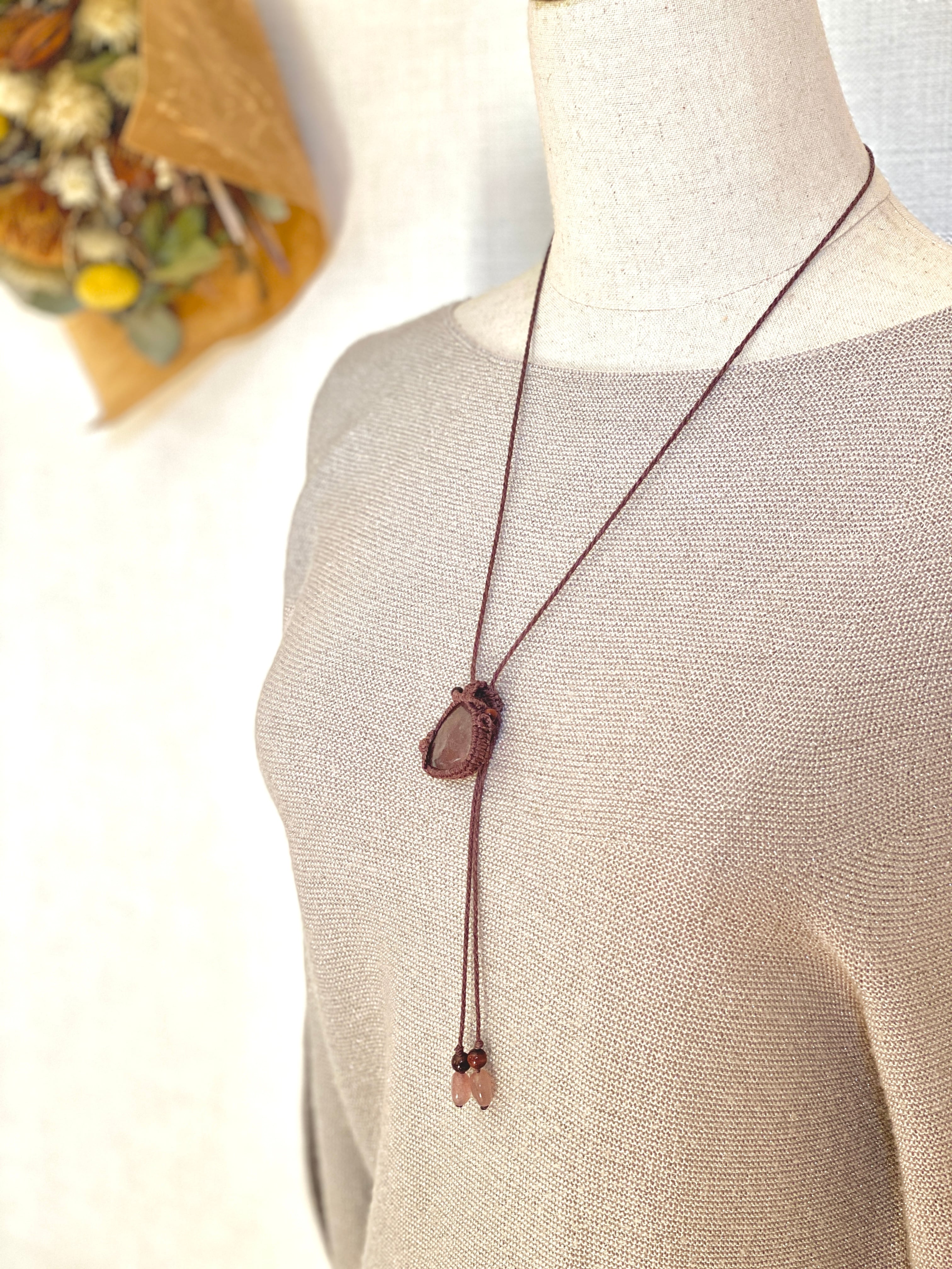Love☆ストロベリークォーツ 天然石マクラメネックレス/日々のお守りアクセサリー