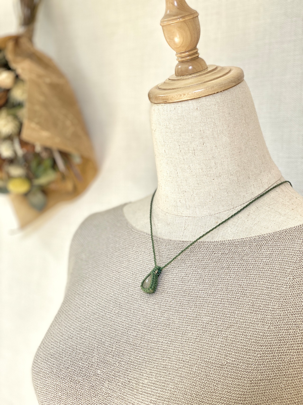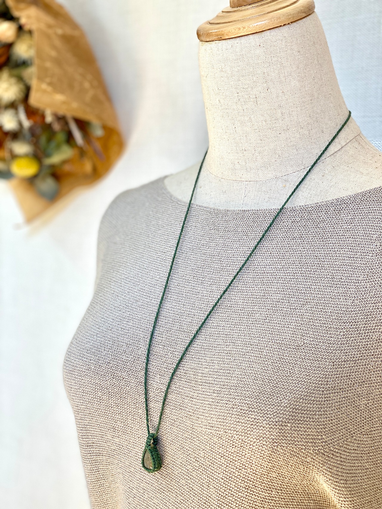 マクラメ編みはワックスコード(ポリエステル)を使用しますので金属アレルギーの方でも安心して使えます。